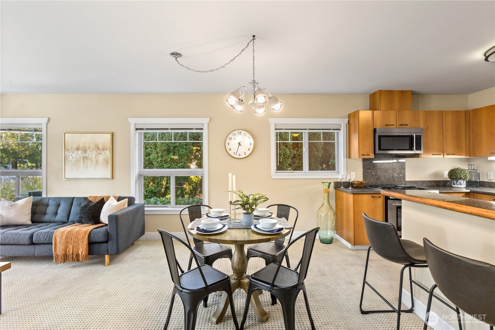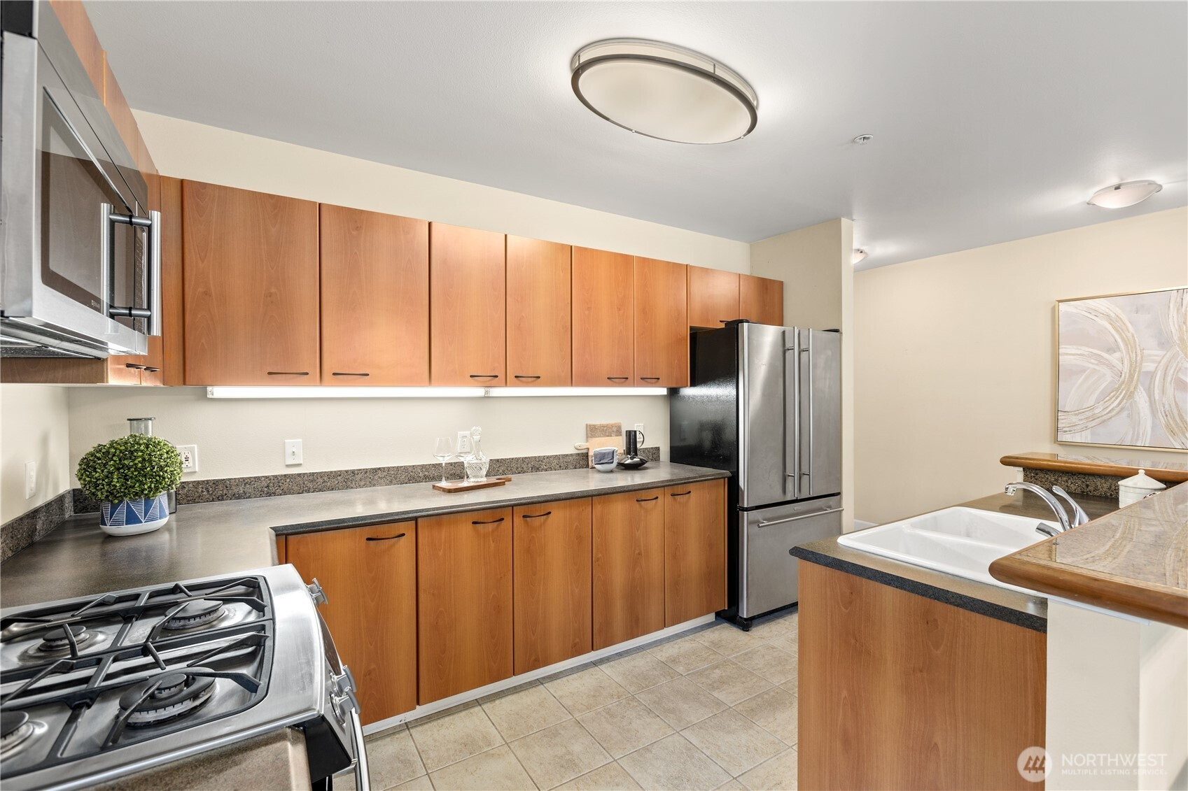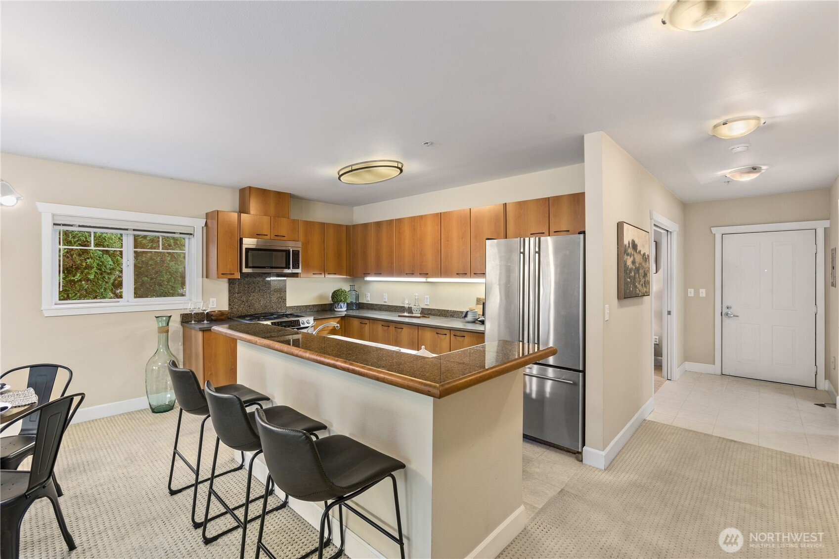 Beautifully updated 2-bed, 2-bath corner condo just minutes from the serene Des Moines waterfront! This bright first-level unit features a spacious open-concept great room with radiant heated floors, cozy gas fireplace, and sliding doors to a private balcony. The kitchen offers stainless steel appliances, gas range, and bar seating. Retreat to the primary suite with balcony access, walk-in closet, and large en-suite bath. RECENT MAJOR BLDG/CONDO UPGRADES INCLUDE NEWER ROOF, SIDING AND EXTERIOR PAINT. With no assessments, low HOA dues, and a prime location near shops, dining, and waterfront trails, this home offers comfort, convenience, and incredible value!