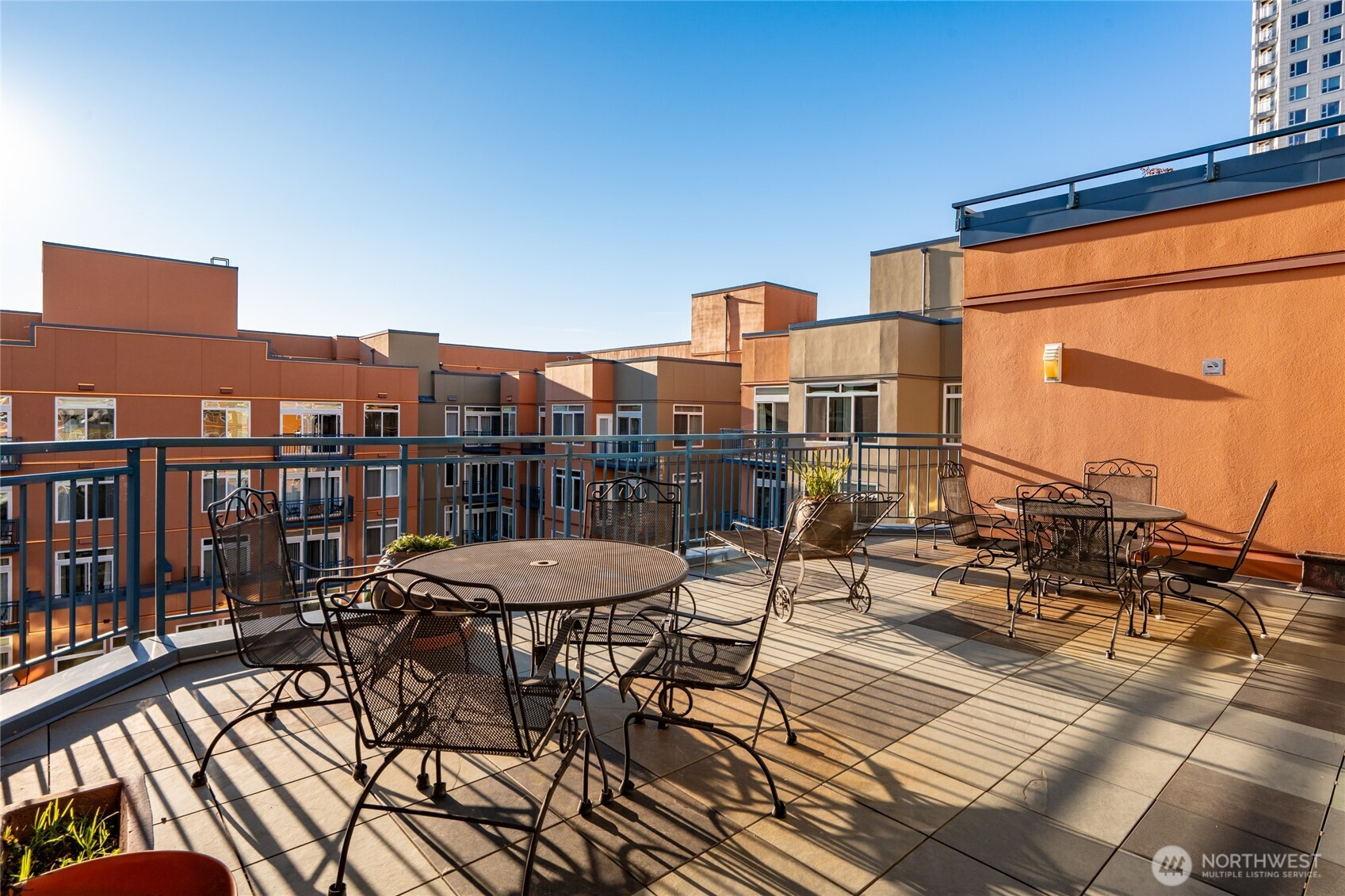 Incredible light & views of the downtown skyline await from this fabulous south-facing unit at Belltown Court! Fresh paint & new LVP floors glow in warm sunlight streaming thru large bay windows, framing ever-changing urban vistas. Efficient floor plan lives larger than its sqft, offering comfortable flow. Enjoy takeout from Belltown’s endless list of restaurants or cook at home in the open kitchen, featuring quartz counters, ample storage & stylish open shelves. Spacious bdrm can fit a king-sized bed, w/ access to the balcony so you can greet the morning sun, savor Puget Sound views, or wind down to twinkling city lights at night. In-unit W/D, secure garage parking & an extra storage unit included. Belltown Court boasts an impressive list of amenities: an indoor pool & hot tub, sauna, huge fitness center, a picturesque courtyard, lounge, secure lobby entry w/ a concierge & a rooftop deck w/ panoramic views of Elliott Bay & the Olympic Mtns. One of the few buildings in Seattle that allows short-term rentals (w/ no rental cap). Everything within blocks: dining, Pike Place Market, waterfront parks/trails, shops, Climate Pledge Arena, light rail & more. From this unbeatable location, the pulse of the city is truly at your doorstep!