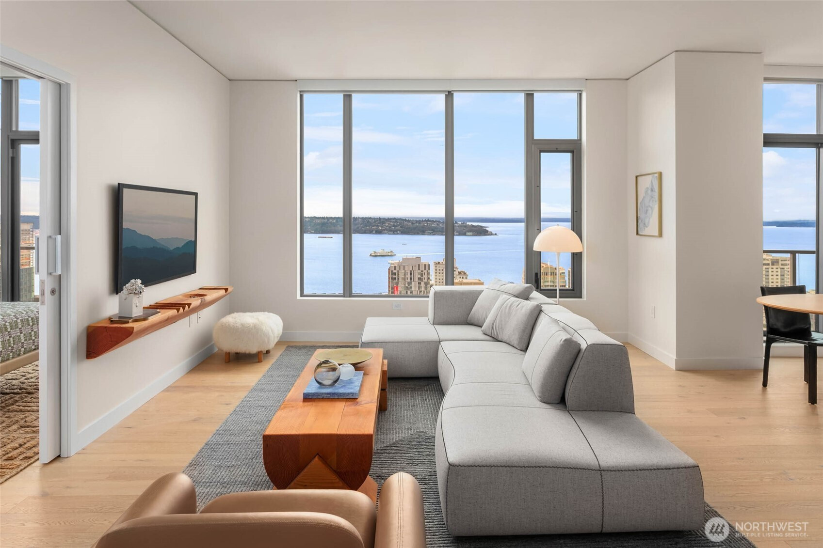 Spire Condominiums, at the apex of Belltown, South Lake Union, and Denny Triangle, offers iconic Space Needle and water views unlike any other new condo building in Seattle. This coveted location allows easy access to retailers, restaurant/bars, technology centers, arts, outdoor recreation and entertainment. Rising high at 41 stories of incredible living spaces including this large 1 Bed/1 Bath with downtown Seattle views + kitchen with Bosch appliances, island, bedroom fits king bed, parking. Amenities include concierge, top floor fitness center, pet run, 40th floor clubroom, dining, terraces, co-working space, conference room, theater, movement studio + more. Buyer must register broker on first visit. Ask about Winter Rate Incentive!