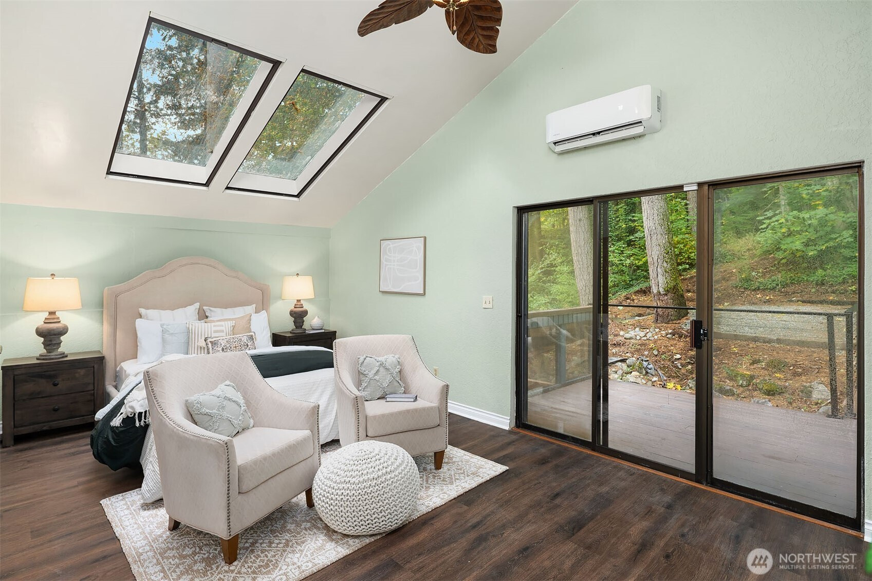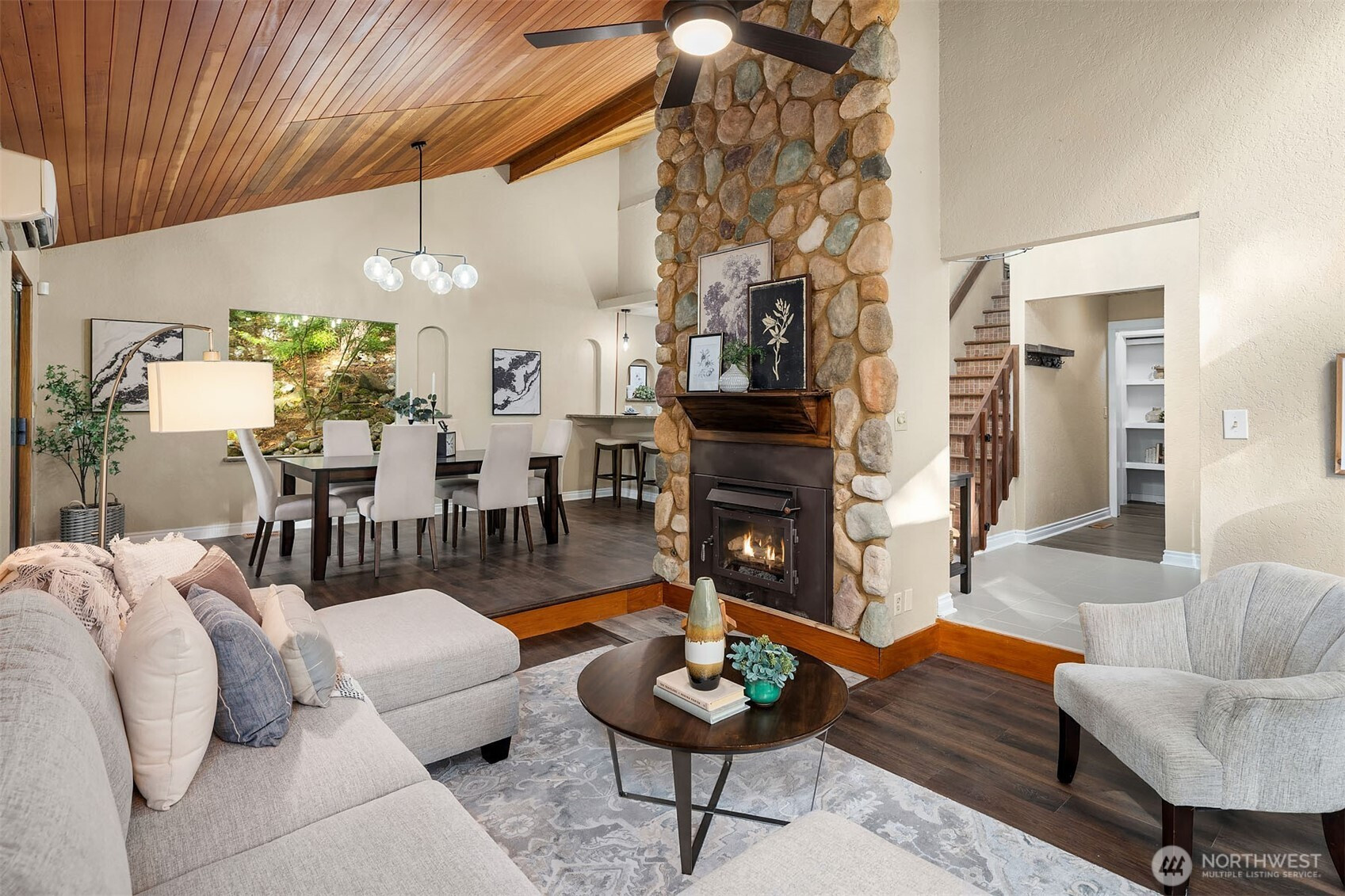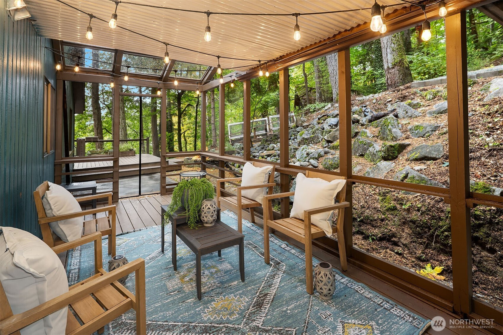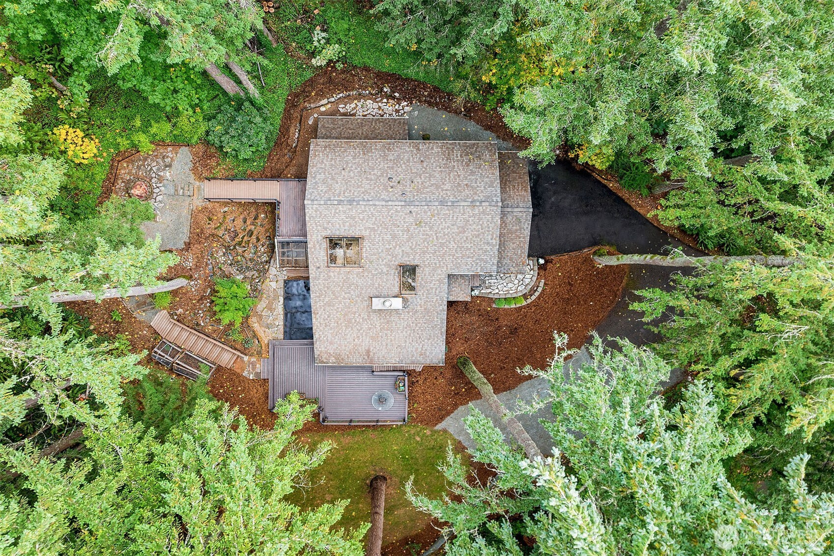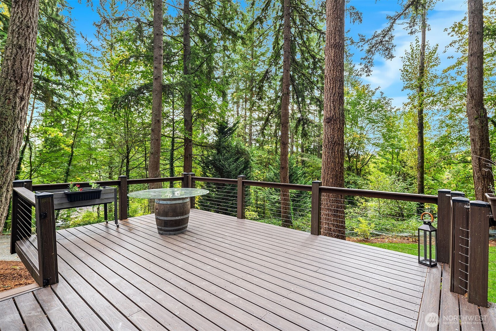 Inviting Northwest contemporary home in desirable Mirrormont. Wooded and wonderful with an expansive deck and screened porch to enjoy nature year-round. Recently updated with a new roof in 2024 and fresh interior paint in 2025, the home features a gourmet kitchen with high-end appliances, including a Wolf 6-burner range and Thermador double ovens. Spacious dining room with deck access. A charming river rock gas fireplace warms the living room with expansive windows looking out to the stunning evergreens. The primary suite offers vaulted ceiling, updated double-vanity 3/4 bath, and walk-in closet. Enjoys direct access to the upper deck and sky bridge to the upper yard with a fireplace. Highly regarded Issaquah Schools.