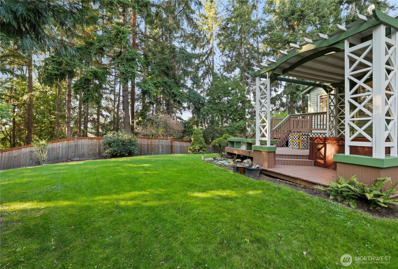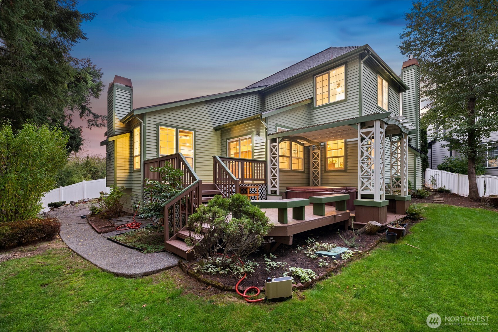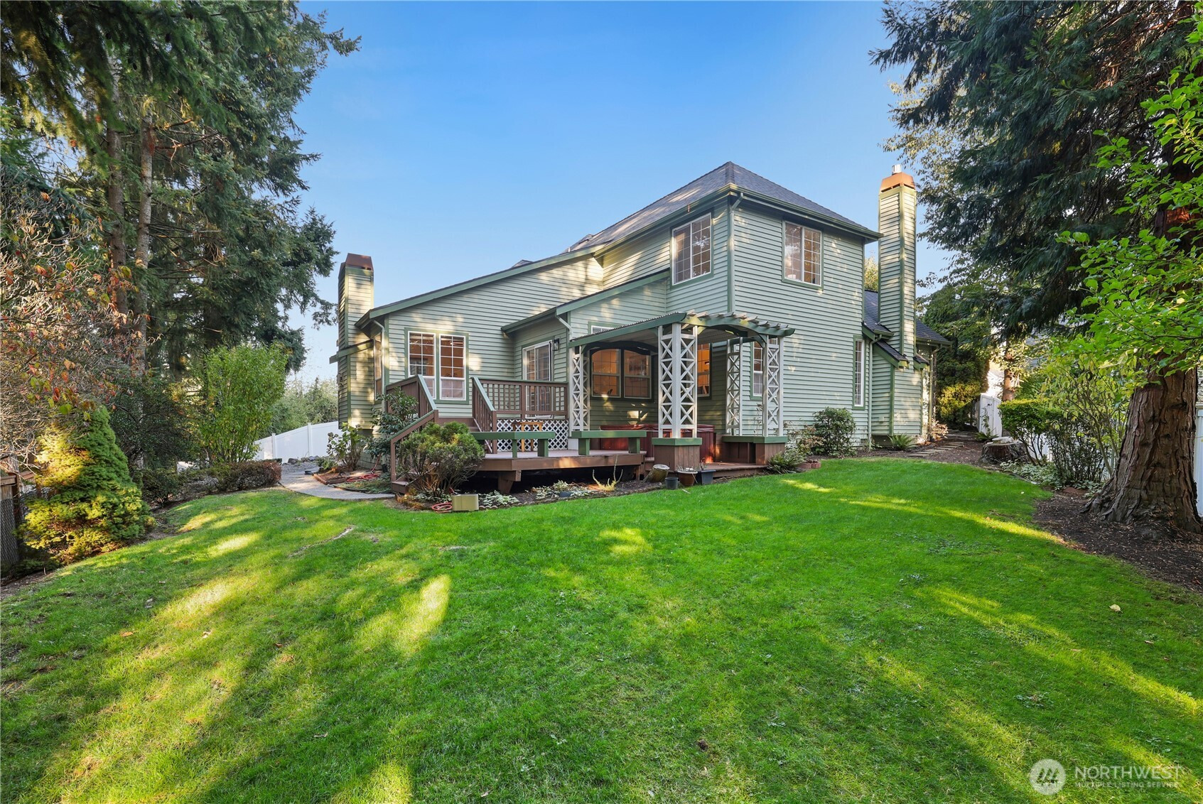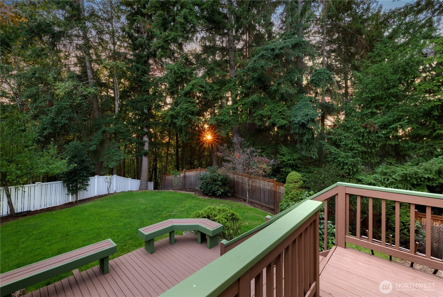 Quality-built 4BD/3BA home in desirable Honey Creek on a quiet cul-de-sac with a private, park-like setting. Features a welcoming entry, formal living/dining, spacious family room perfect for entertaining, and main-level den plus a bedroom with full bath—ideal for guests or extended living. Kitchen with quartz counters and newer appliances, including induction cooktop. The large fenced backyard backs up to green space to make for a private outdoor retreat. Recent updates: new roof, interior paint, furnace, AC, water heater, sealed ducting, and fully remodeled primary and guest baths. 3-car garage, extra parking. Great location near Coal Creek, trails, golf, shopping, dining, and easy access to I-405, I-90, Bellevue, and Seattle.