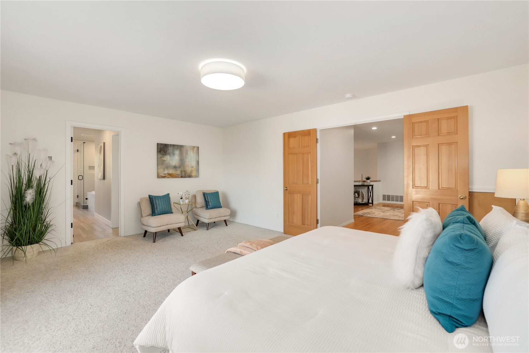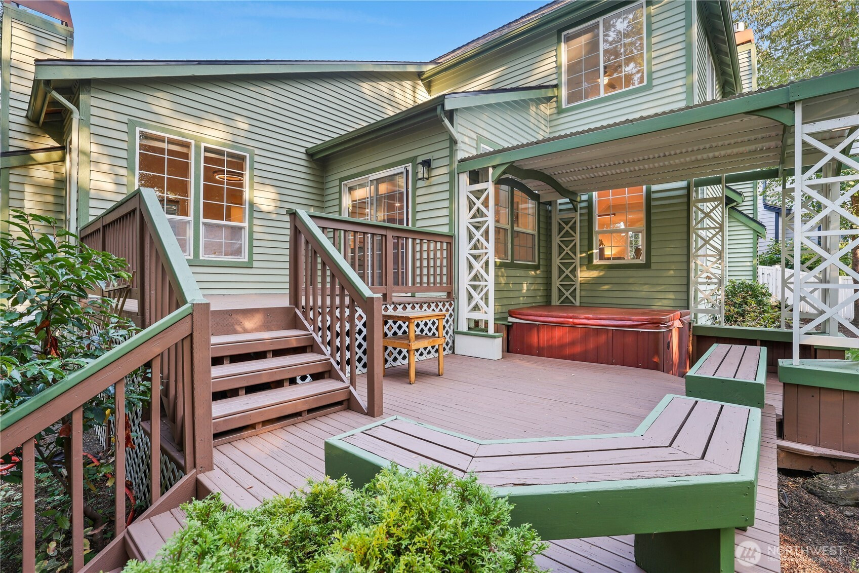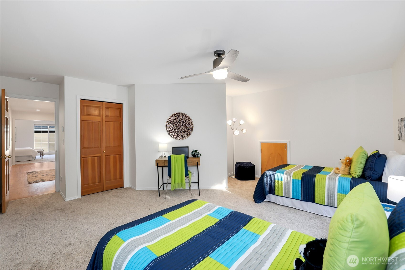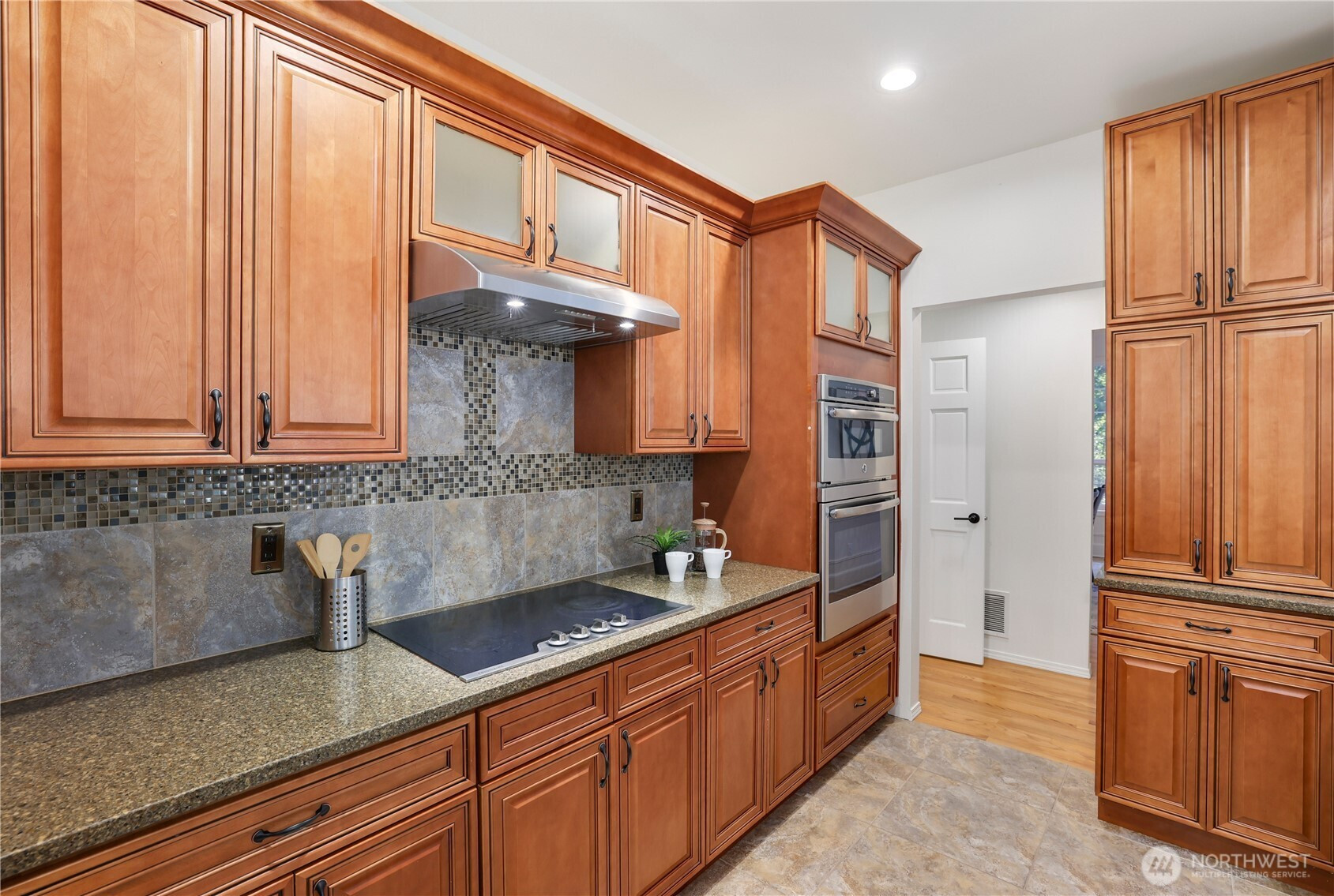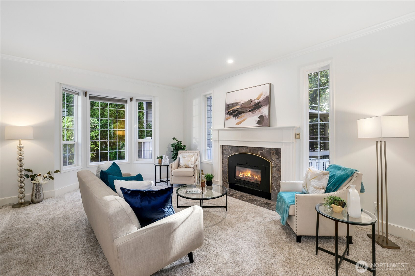 Quality-built 4BD/3BA home in desirable Honey Creek on a quiet cul-de-sac with a private, park-like setting. Features a welcoming entry, formal living/dining, spacious family room perfect for entertaining, and main-level den plus a bedroom with full bath—ideal for guests or extended living. Kitchen with quartz counters and newer appliances, including induction cooktop. The large fenced backyard backs up to green space to make for a private outdoor retreat. Recent updates: new roof, interior paint, furnace, AC, water heater, sealed ducting, and fully remodeled primary and guest baths. 3-car garage, extra parking. Great location near Coal Creek, trails, golf, shopping, dining, and easy access to I-405, I-90, Bellevue, and Seattle.