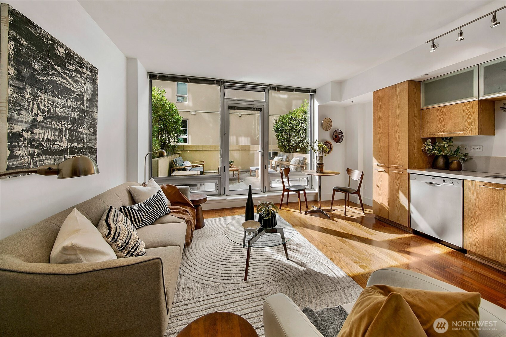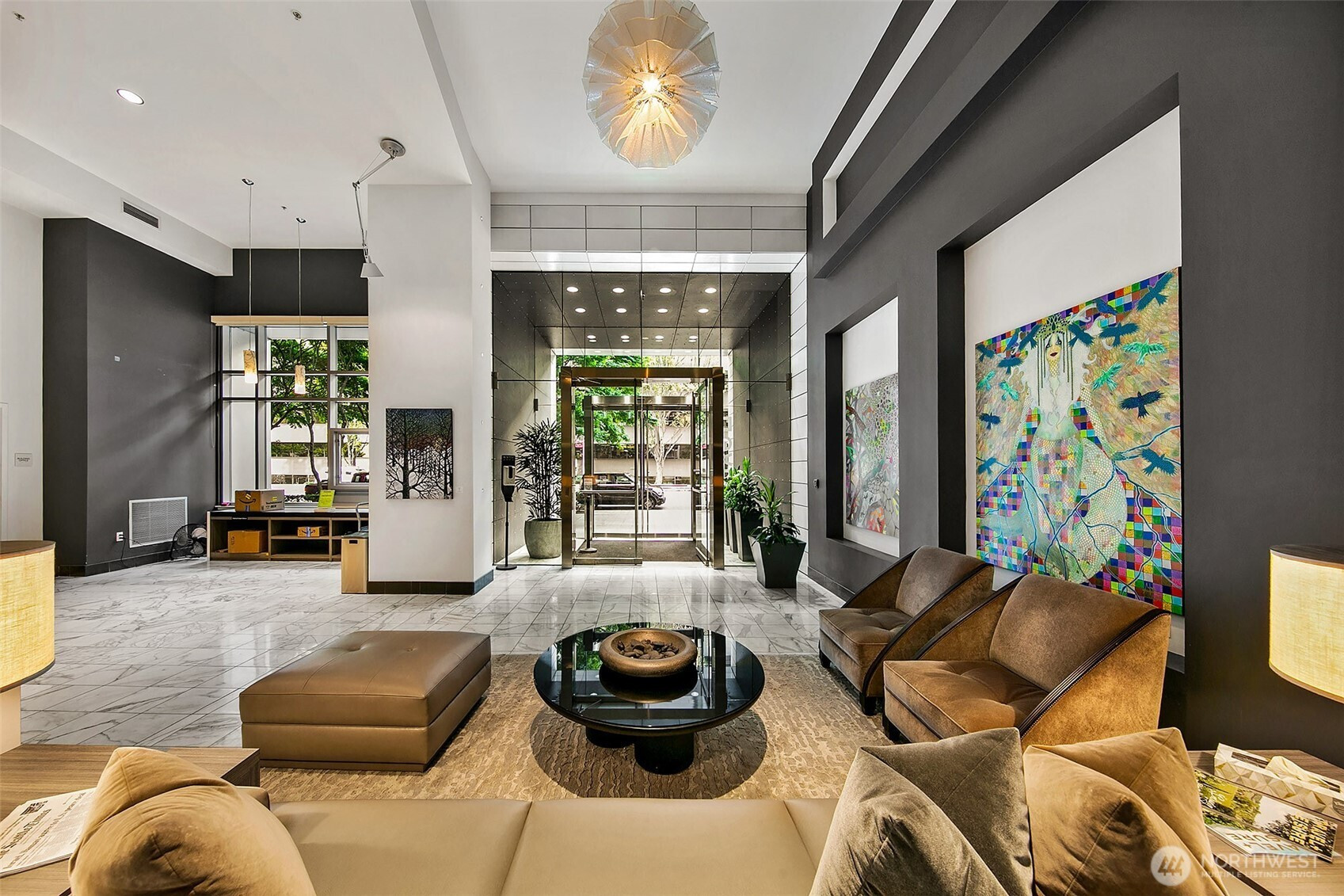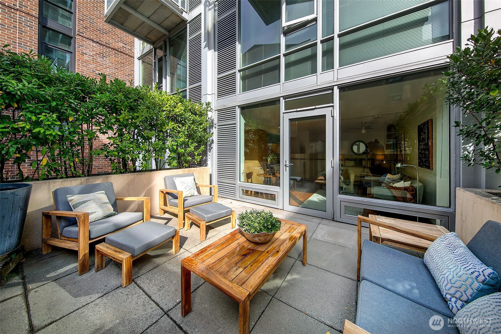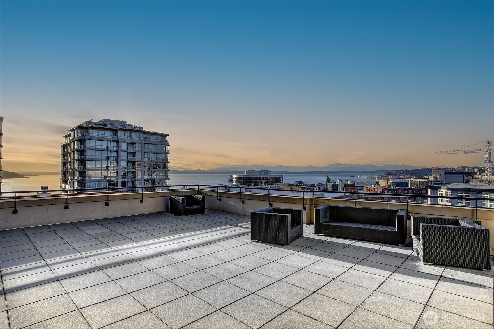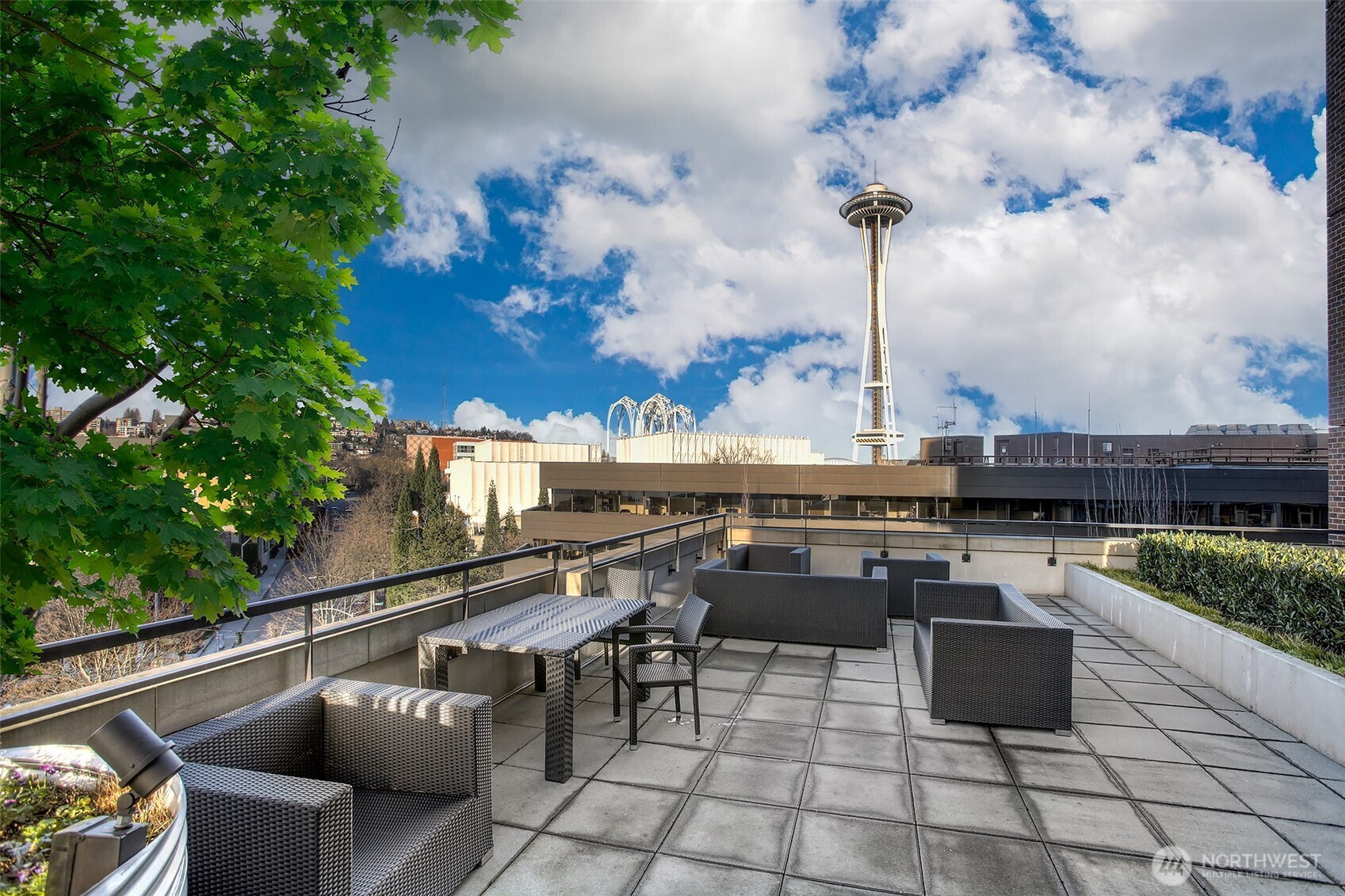 Sophisticated living at The Gallery in one of the best locations in Seattle. located steps from Seattle Center, Pike Market, the new waterfront esplanade and the city's best restaurants and cafes. Walkable to all of downtown and SLU. But wait, there's more, this unit has that rarest of urban amenities--an enormous, private outdoor patio. Comes with secure parking and storage. Building features concierge service, gym, rooftop decks with stunning view of the Space Needle, Elliot Bay and the Olympic range, dog washing station, theater room, lounges and business center. No rental cap.