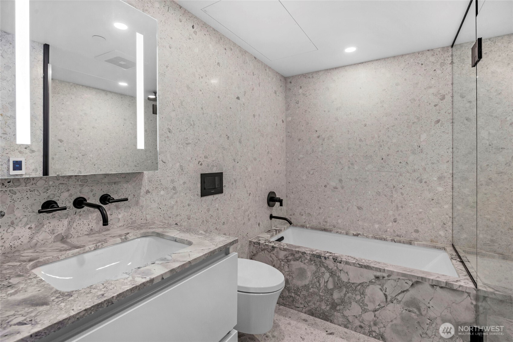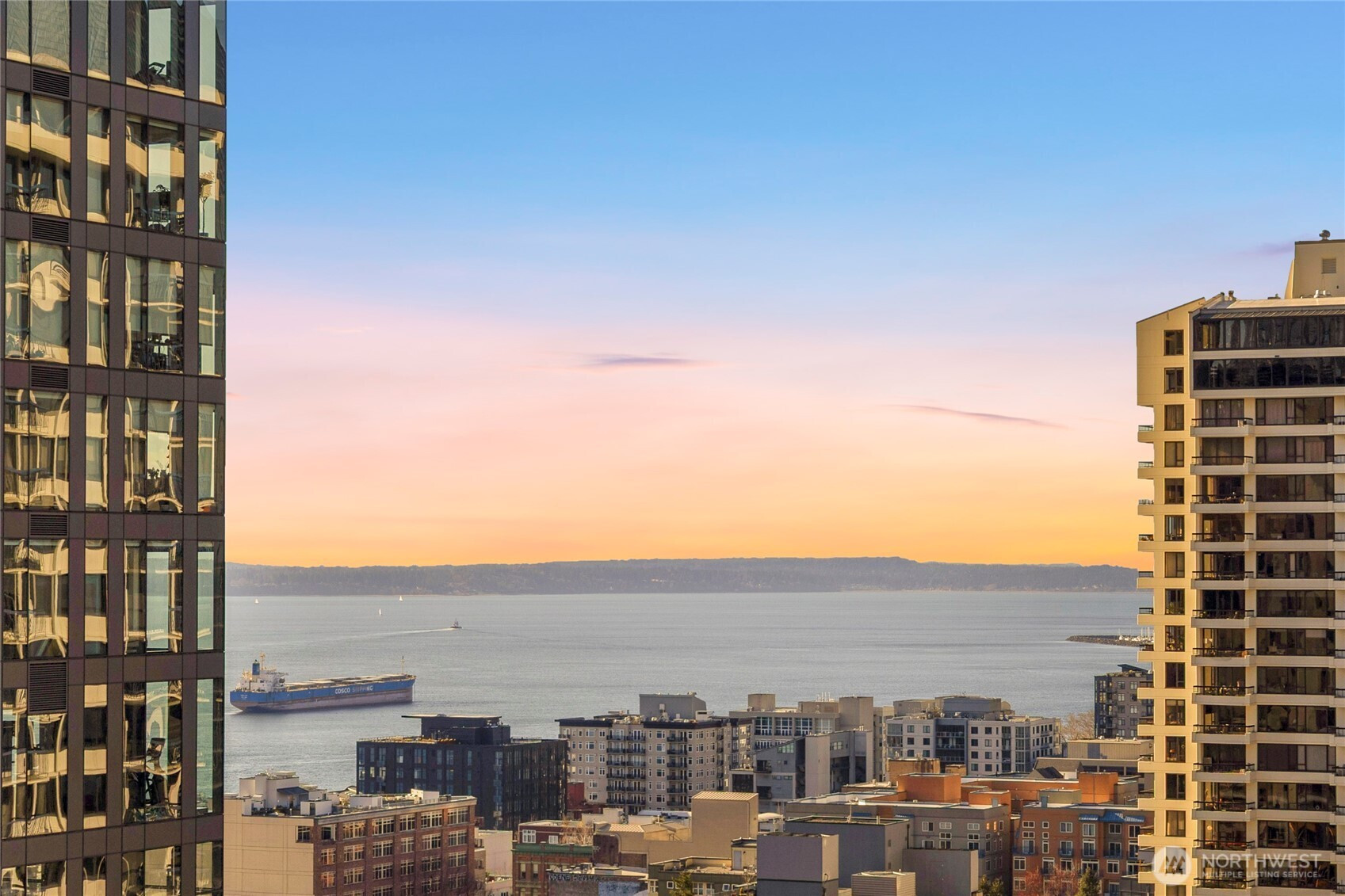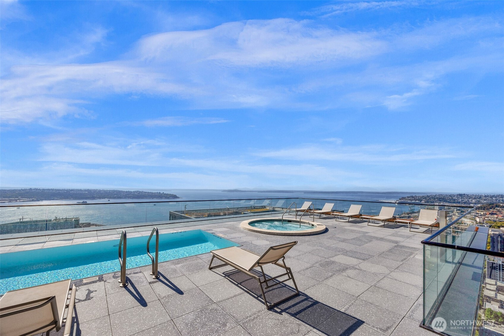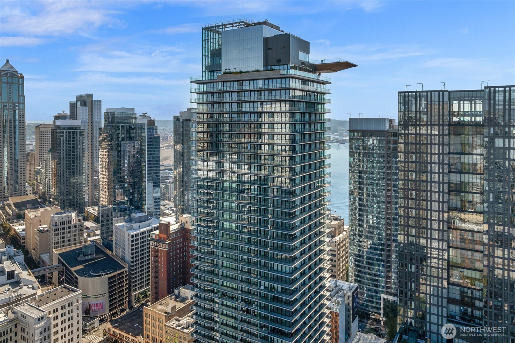 WHY RENT when you could OWN THIS LUXURY END unit for only $2800/ month? AMAZING VIEWS from a never lived in BRAND NEW 1 bedroom end unit. LOW interest rate to cashflow for investors. This refined residence offers water views from all angles. This residence unmatched proximity to the Pike Place, the new Seattle waterfront pier and one of the building’s most versatile layouts with the option to seamlessly open or enclose the one bedroom space. Enjoy custom B&B Italia cabinetry, Kohler fixtures, quality designer's touches and material. The state-of-the-art building features a rooftop cantilevered heated pool, jacuzzi, a rooftop secret garden, spa, pet runs, lounges for effortless living. Parking is available for purchase. DO NOT MISS.