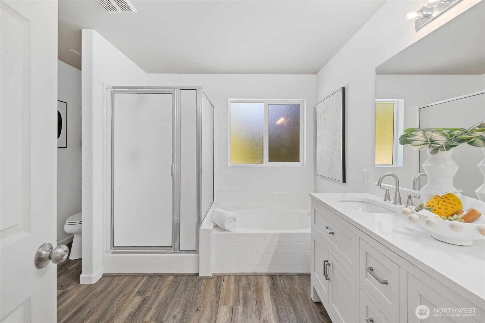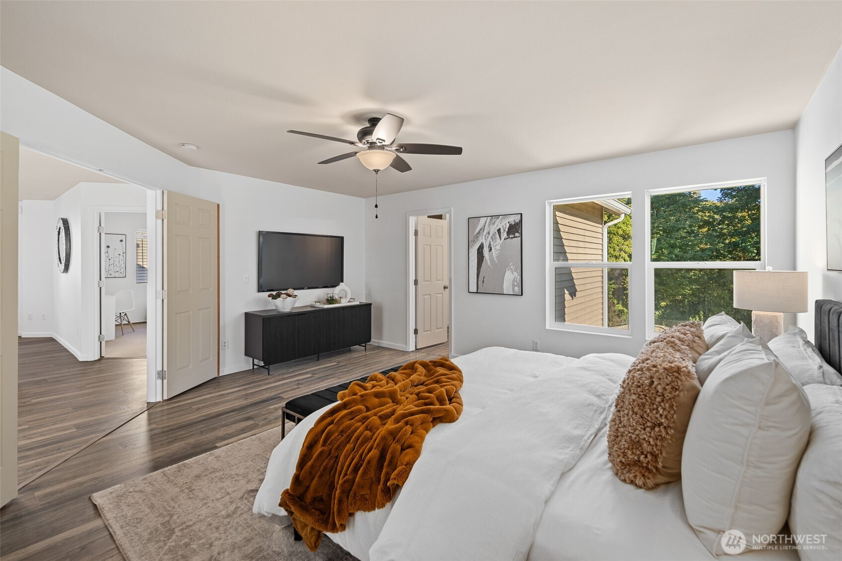 Perched on a quiet ridge with tree-lined serenity, this standout home backs to endless greenbelt for unmatched privacy and space. The expansive yard is perfect for entertaining or peaceful mornings. Inside, discover rich LVP flooring, efficient heat-pump A/C, and a functional layout w/ main-level bedroom and 3/4 bath. The refreshed kitchen shines with modern appliances and mudroom w/ custom storage. Upstairs offers a loft space, generous bedrooms, and a stunning primary retreat w/ french doors, and soaking tub. Enjoy a covered patio, fenced yard, and fresh landscaping upgrades. Recent improvements include new insulation, flooring, water heater, fencing, and so much more. Don't miss this one, vacant and easy to show.