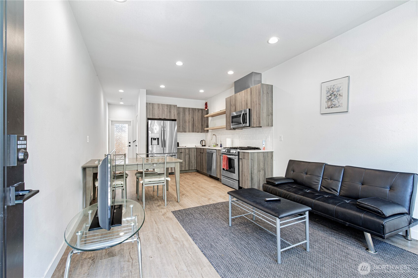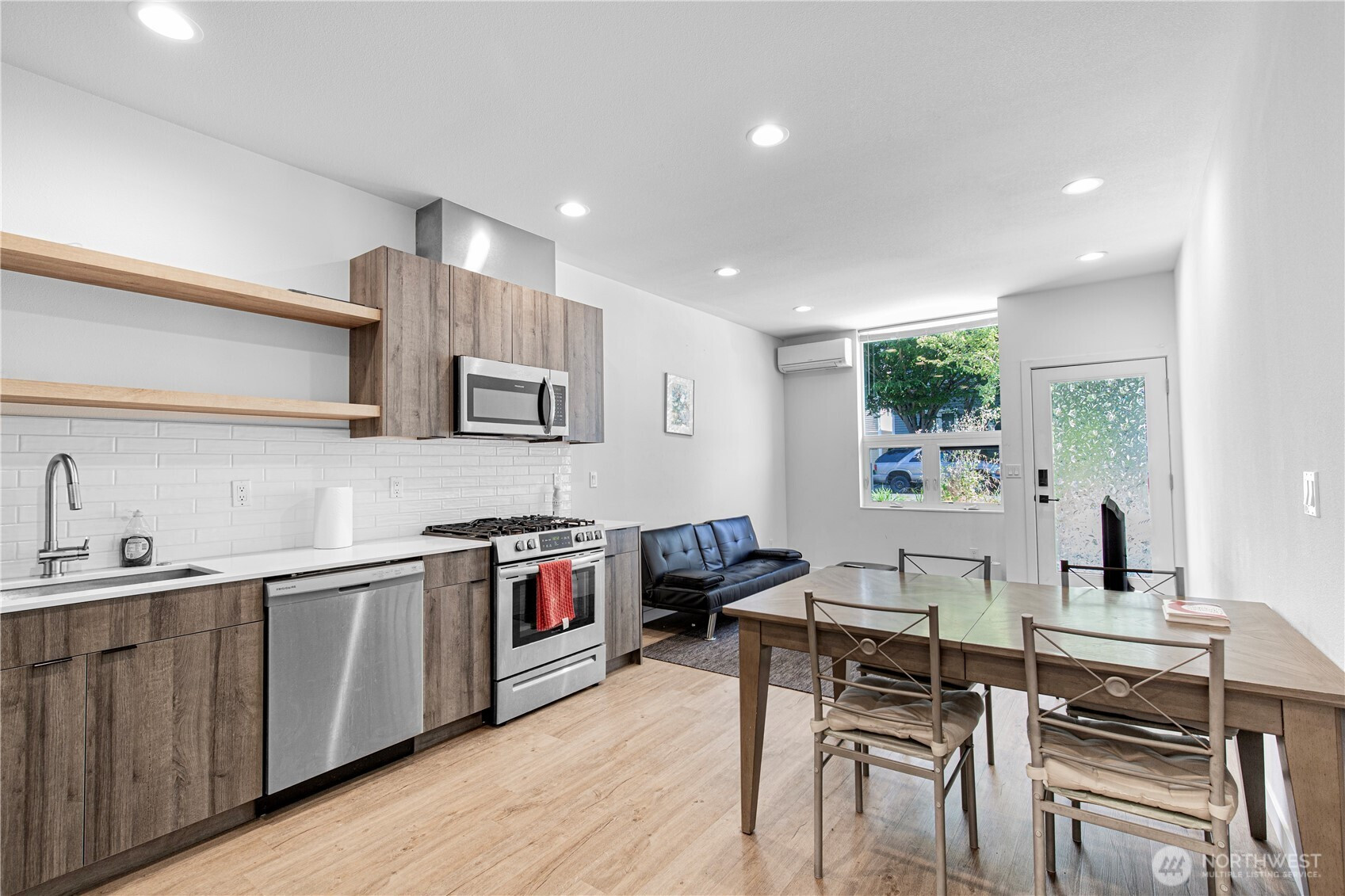 Well maintained, modern architecture, spacious layout newer townhome in prime quiet location. Soaring windows allow home to be drenched with sunlight. All hardwood flooring except bathrooms. Open concept kitchen with gas stove. Primary suite with heated bathroom floor & Juliet balcony. Designer finishes, energy-efficient. Two Ductless HP-Mini Splits cool summer. Gas tankless water heater. Tons of storage. Fully fenced backyard. 7 mins walking distance to light rail station. Ample street parking. 8 units community without HOA. Close to dining, shopping, public schools & other amenities. Easy commute to DT Seattle & Eastside. Perfect for first time home buyer. You can also make it a great rental property. Move into new home before Holidays.