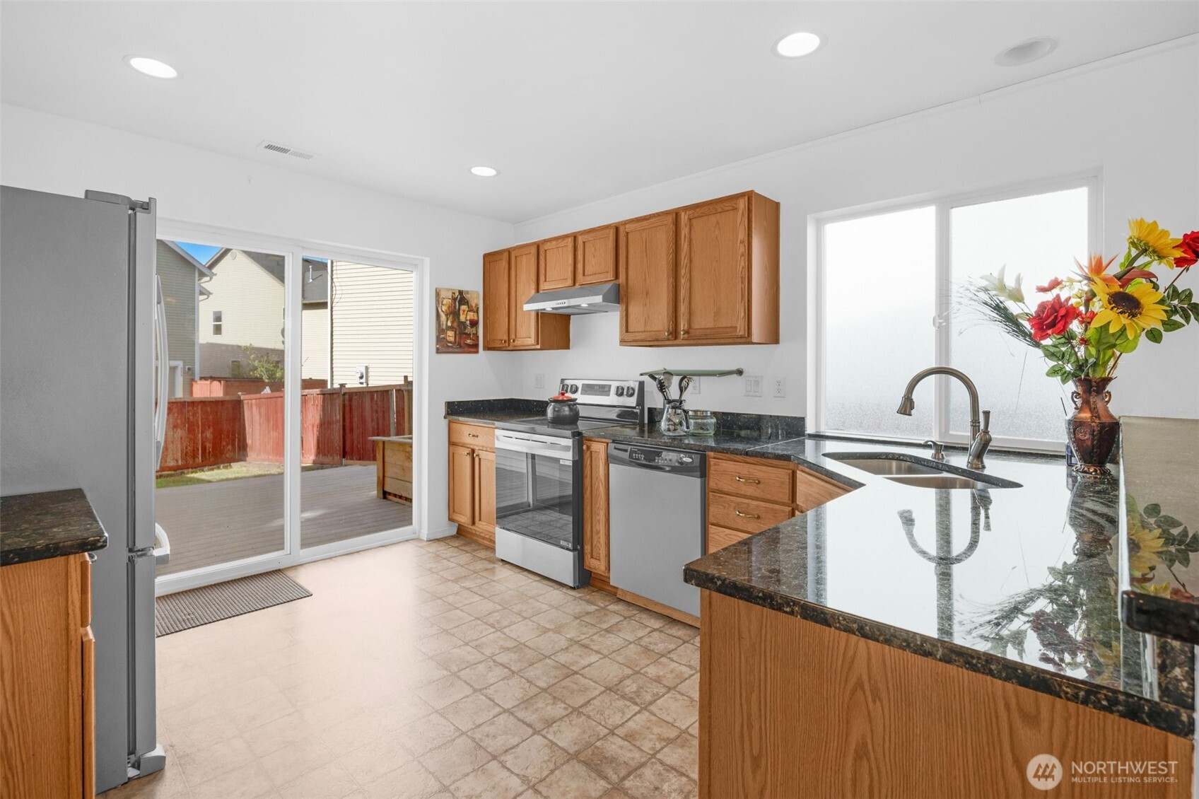 Located in Liberty Ridge. Origally built by Quadrant Homes. Home features 3 bedrooms and 2.5 bath. Great room concept kitchen, living & dining rm w/archway & white mill work trim. House fills with a abundant light. Kitchen w/ granite slab counter tops, newer stainless steel appliances, bar seating, casual dinning space and walk-in pantry. Loft style family rm on the second floor can also be a great place for WFH. Spacious primary rm w/ walk-in closet and full bath. Built-in shelves through out offers extra storage spaces. New flooring in living rm and hallway bathroom. Newly paint interior. Fenced back yard w/ deck and garden space. Easy to access I-405, I-5, SeaTac airport and Bellevue DT.