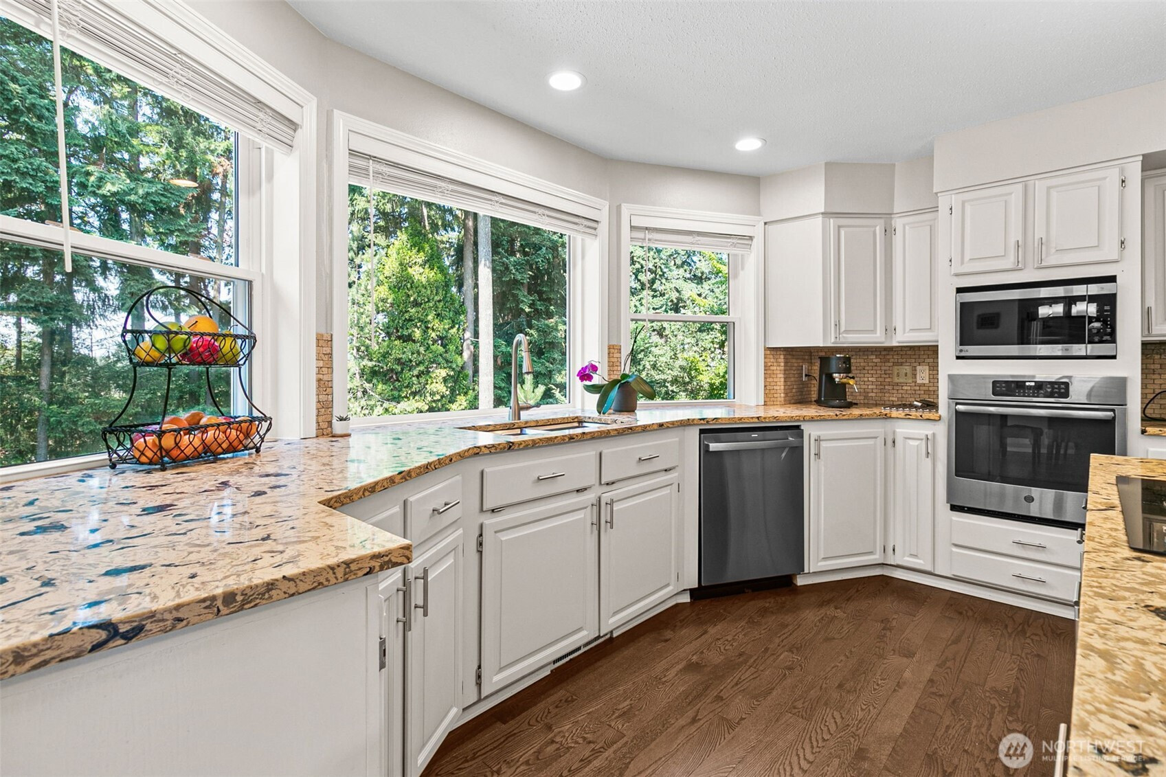 Situated in a ideal location in Federal Way, this stunning 4-bedroom home plus MIL suite offers the perfect blend of space, style and function. The Mother-in-law suite with its own private entrance comes quipped with full kitchen kitchen, stackable washer and dryer, and full bath makes it ideal for multi-generational living, guests, or potential income generator. Additional highlights include new hardwood floors, updated bathrooms, vaulted ceilings, and large bonus room provides flexibility for entertainment. Enjoy the peace and privacy of a home that backs into a lush greenbelt and mature hedges. Nearby explore Dash Pointe State Park, walk Panther Lake Trailhead and easy drive to amazing restaurants, grocery, and access to major freeways.