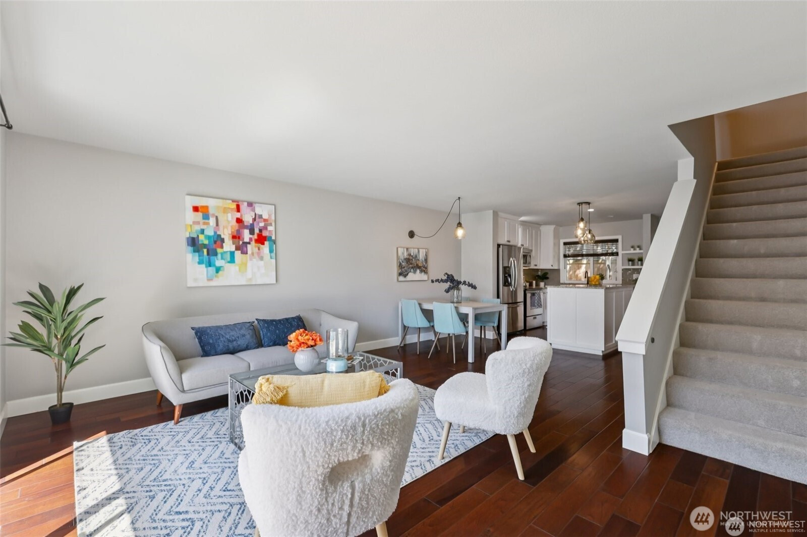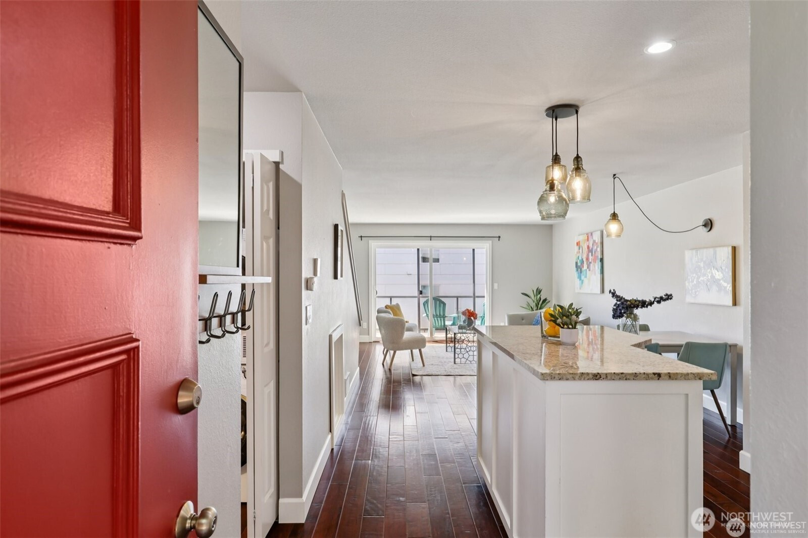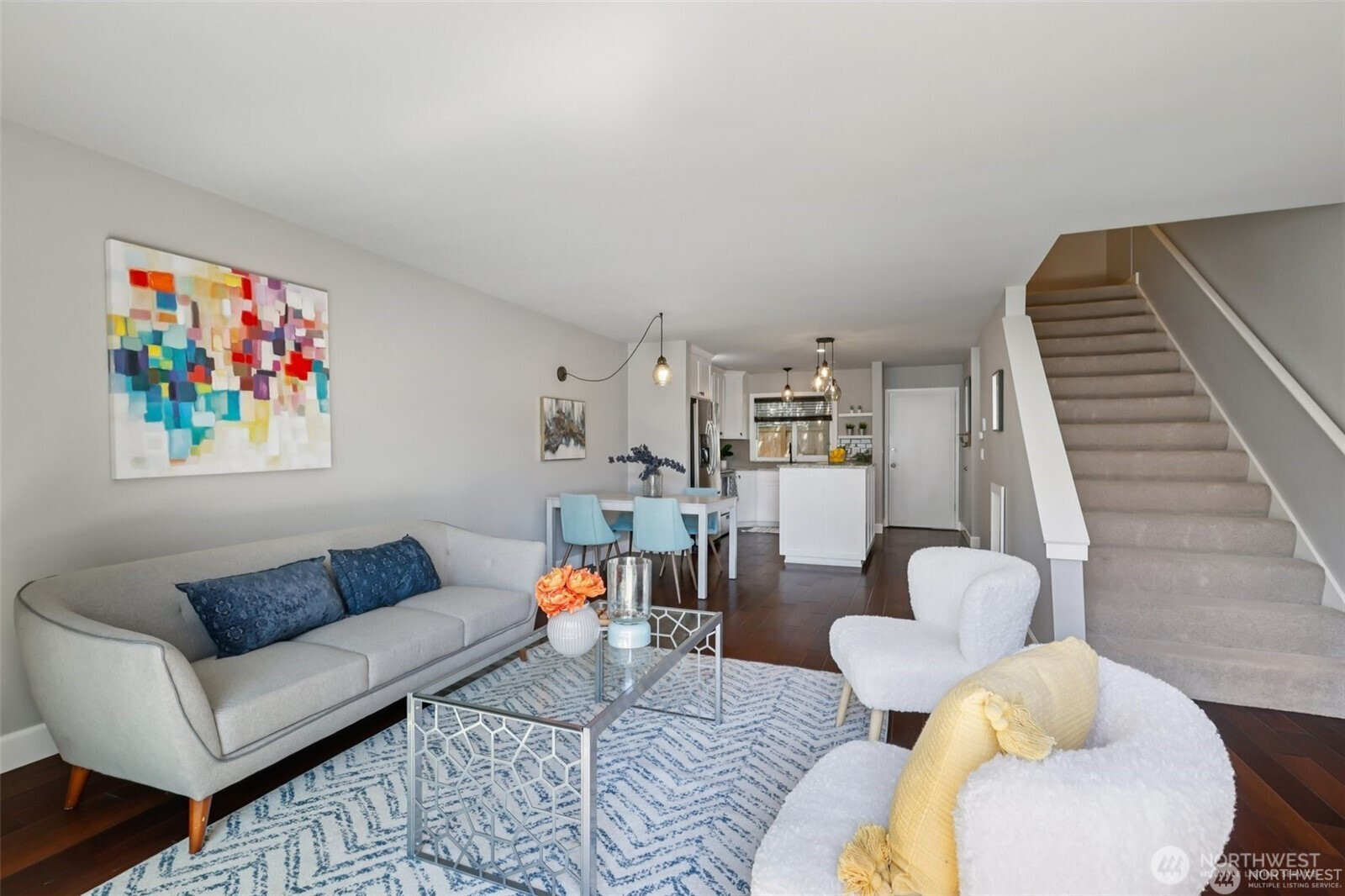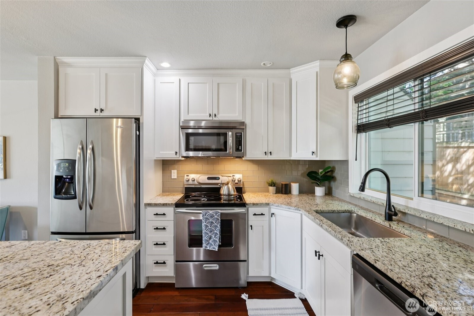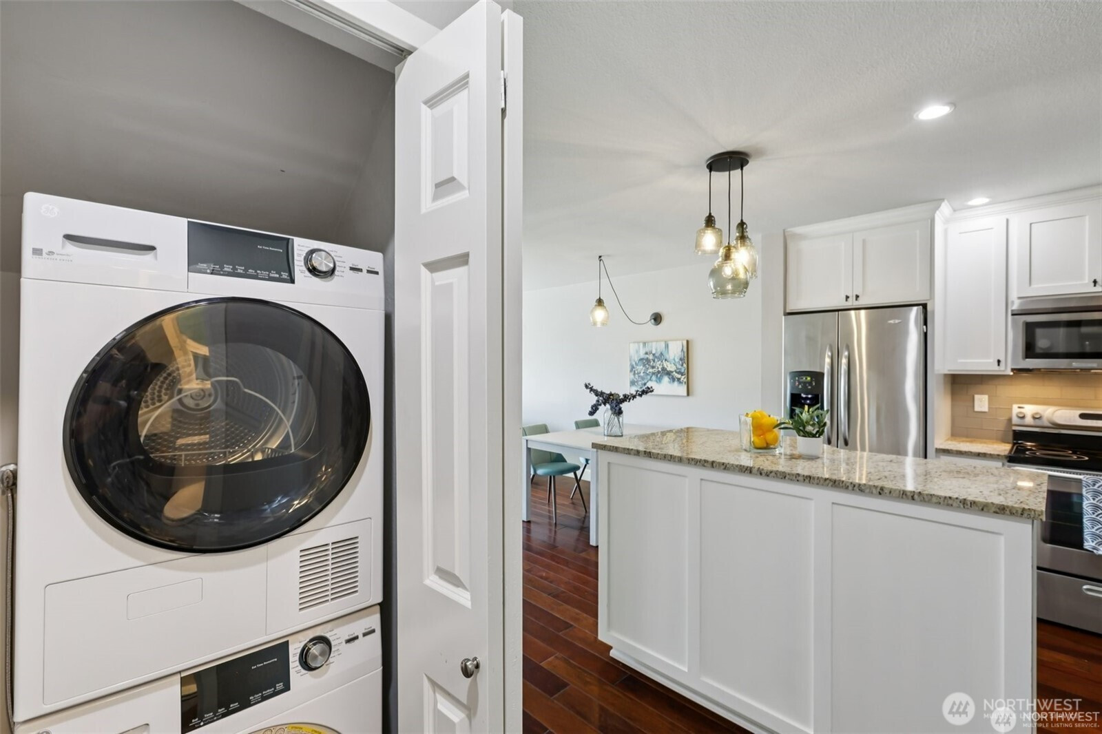 Wake up to mountain, city and water views in this updated 2 level townhome! Well maintained home features granite countertops, SS appliances, hardwood floors, newer washer and dryer. Spacious and open layout leads to the balcony that's great for those summer evenings. Upstairs you will find 2 bedrooms. The primary bedroom bath features dual sinks, plenty of storage space and amazing partial city, mountain, water views. Don't miss the oversized 2 car garage with 2 storage closets below the unit! Location + updates + 2 car garage all within walking distance to the water, all that DT Kirkland has to offer & less than 1 mile to Google campus. Home is pre-inspected! No rental cap. HOA covers: water, sewer, & garbage. Garage is 525 sqft.