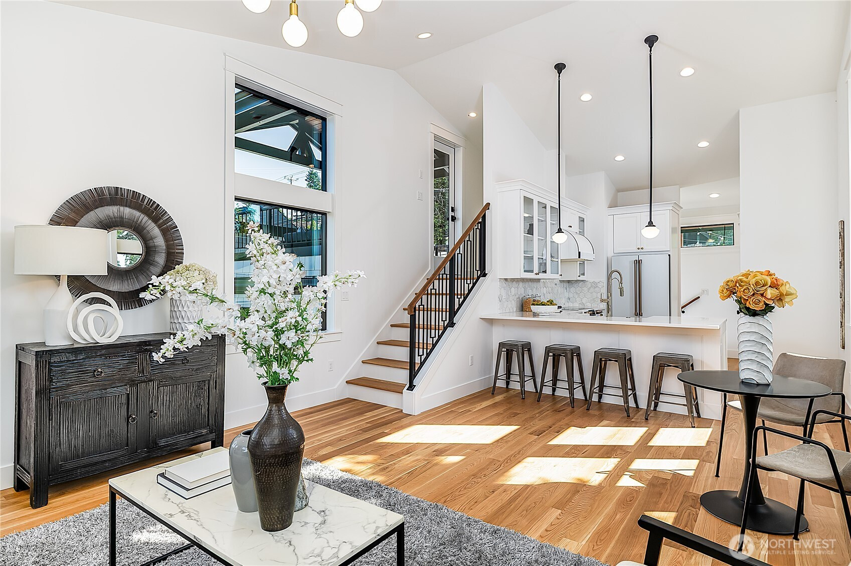Magnolia Masterpiece of Craftsmanship from Applecore Homes, no detail was overlooked! Bright custom new home built with precision, passion & purpose. From the high-vaulted-ceiling great room to the exterior grounds to the covered roof deck, this is a showcase of thoughtful design & flawless execution. This is real premium living. Top floor has entertaining-size space with super cool exterior deck with heat lamp. Kitchen has large peninsula seating, baths have designer tile & 1-car attached garage off alley has 220 EV charging. Both bedrooms & full bath are on main with level access to yard. Stroll to Met Market, Discovery Park & Mag Village. You will love living here. This is drop-dead gorgeous!