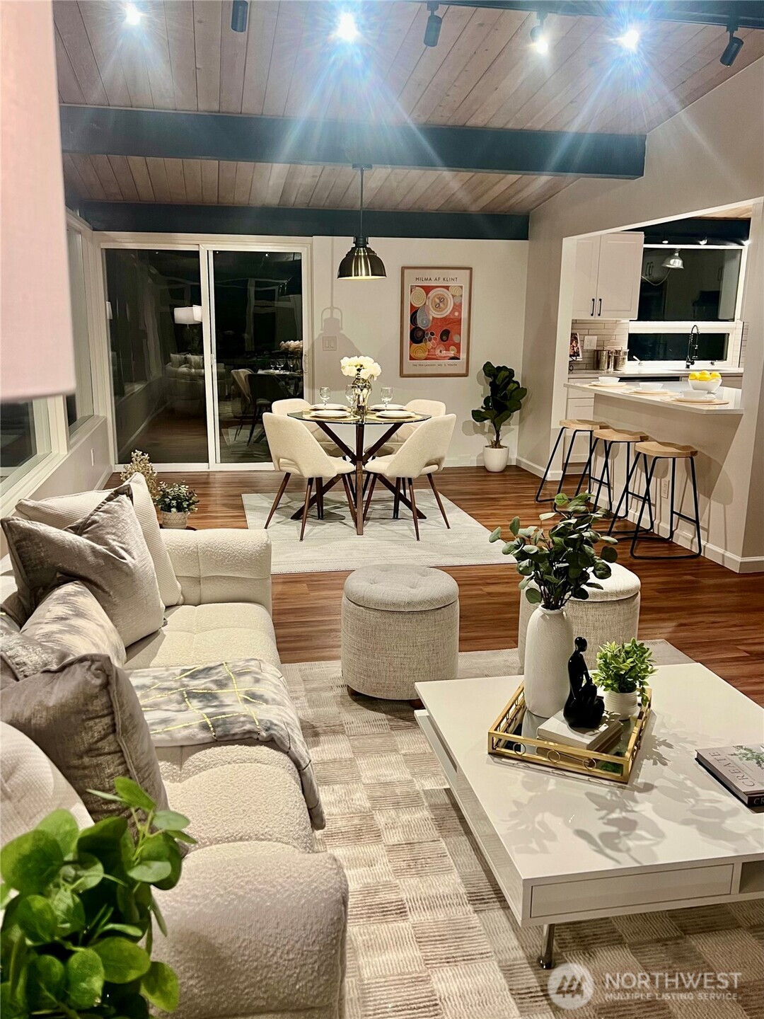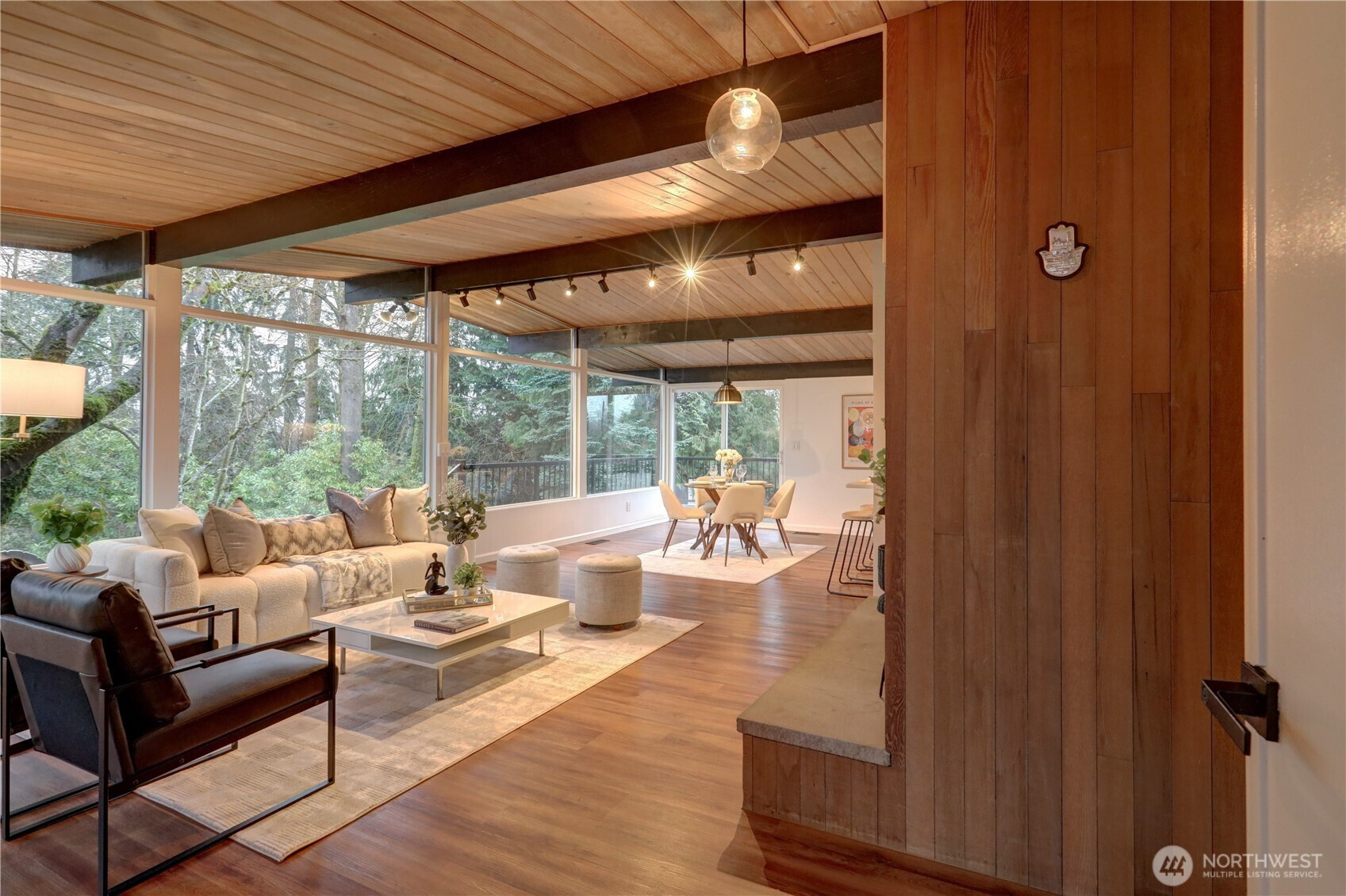 (503) 893-8874Timeless 1959 mid-century residence in Lower Kennydale, set on a private park-like lot. Beautifully refreshed with a remodeled kitchen, modern appliances, new LVP flooring, interior paint, and upgraded systems including a new furnace, heat pump with AC, and updated electrical panel and meter. The main level offers 3 bedrooms and 2 baths, large open living room, dining room and kitchen. The daylight basement extends the living space with a flexible family room (currently used as a bedroom), 3/4 bath, and a walk-in closet. A one-car garage with shop area, and a 2-car carport and extra storage. R6 zoning adds investment or development potential. A perfect blend of mid-century character and modern comfort just minutes from Lake Washington.