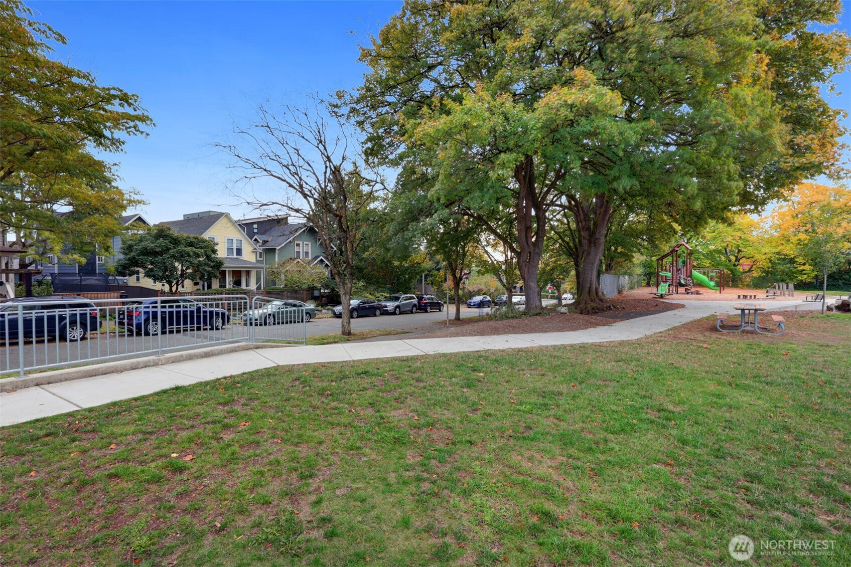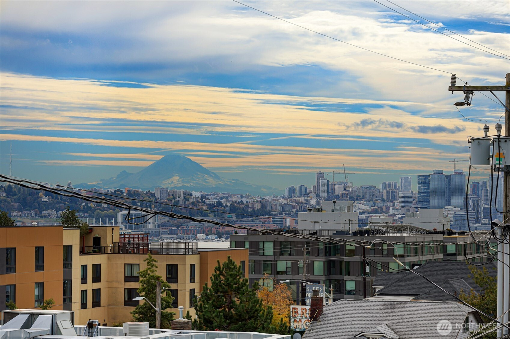 Imagine having access to it all: the vibrant & diverse Fremont community, great eats in Phinney & Wallingford, easy access to downtown, and waking up to views of Rainier & the Cascades. It can be your reality in this fantastic upper Fremont home! Tucked in back & set just across the street from BF Day's fabulous playground, you'll love both privacy & proximity from this unbeatable location. The efficient layout bathes in warm light, updated w/ AC, newer ext paint & a new gas range. Large upstairs primary + office/3rd bed share vaulted ceilings & a full bath. Private patio is perfect for quiet afternoons while the lower bed+bath works great for guests. Enjoy effortless living: no HOA, off-street parking, & all your favorites within blocks.