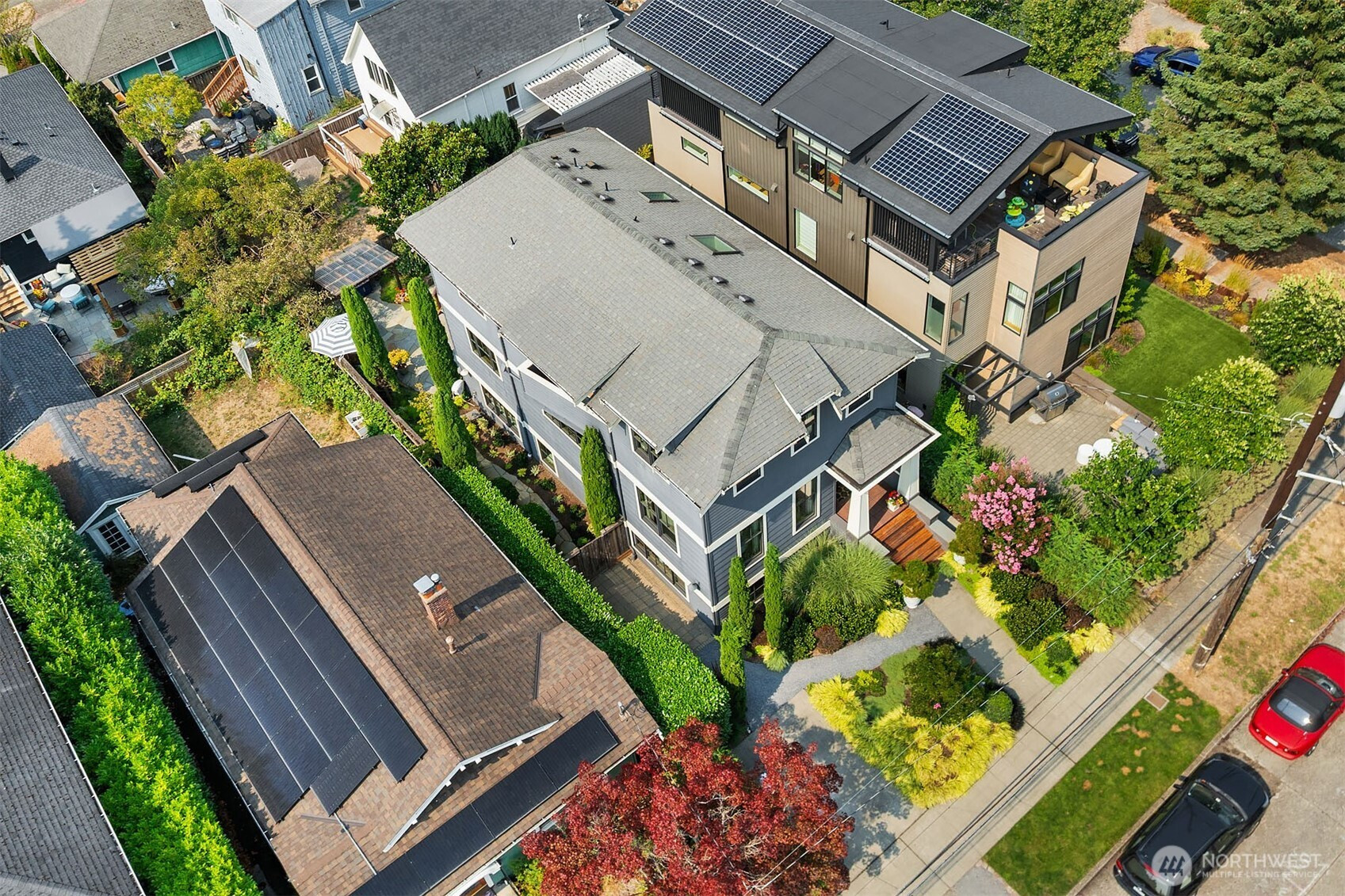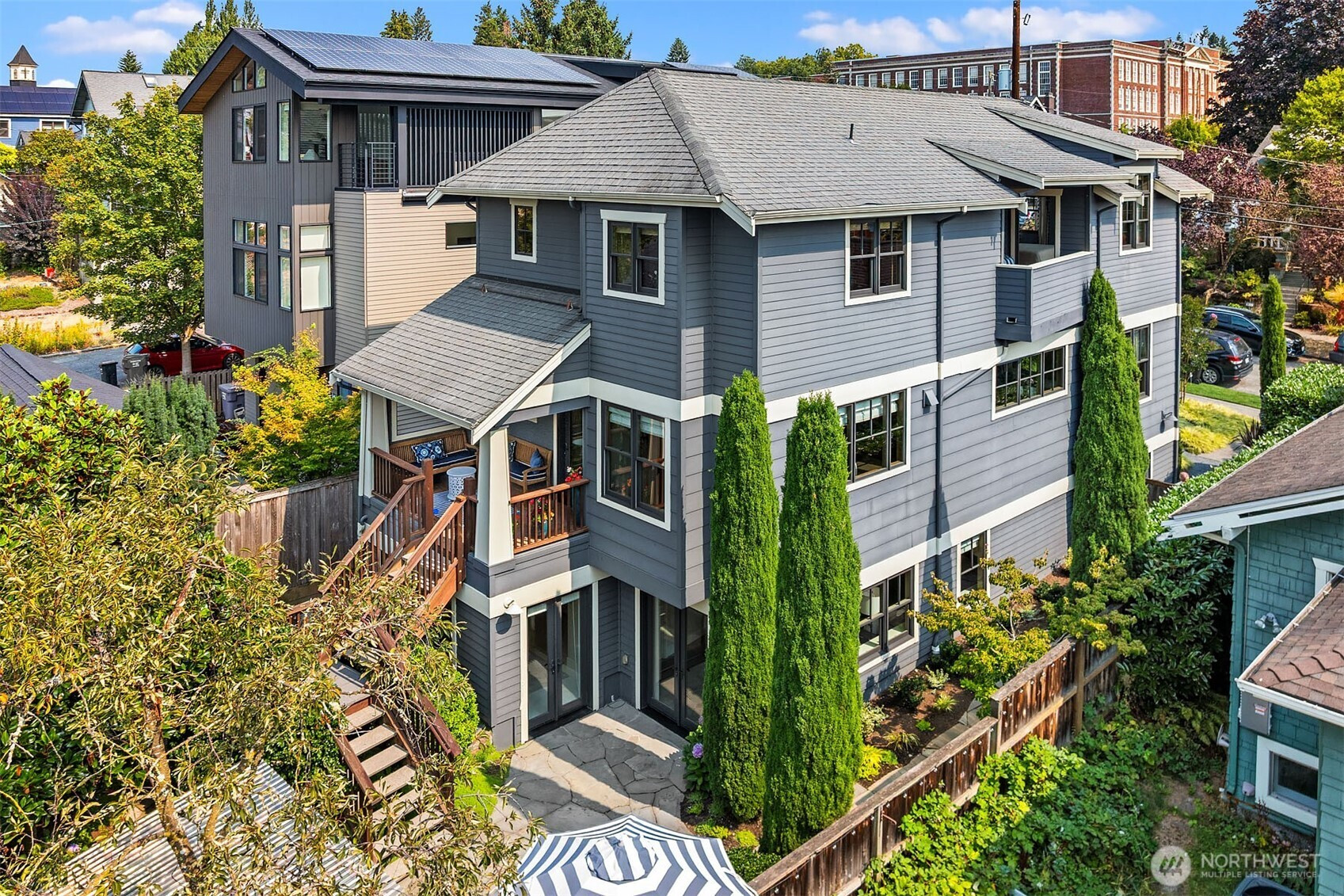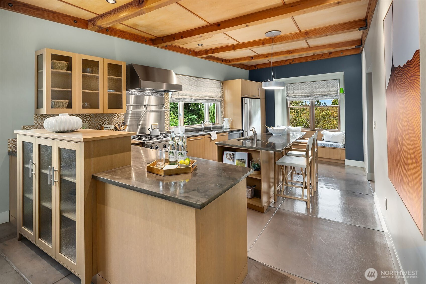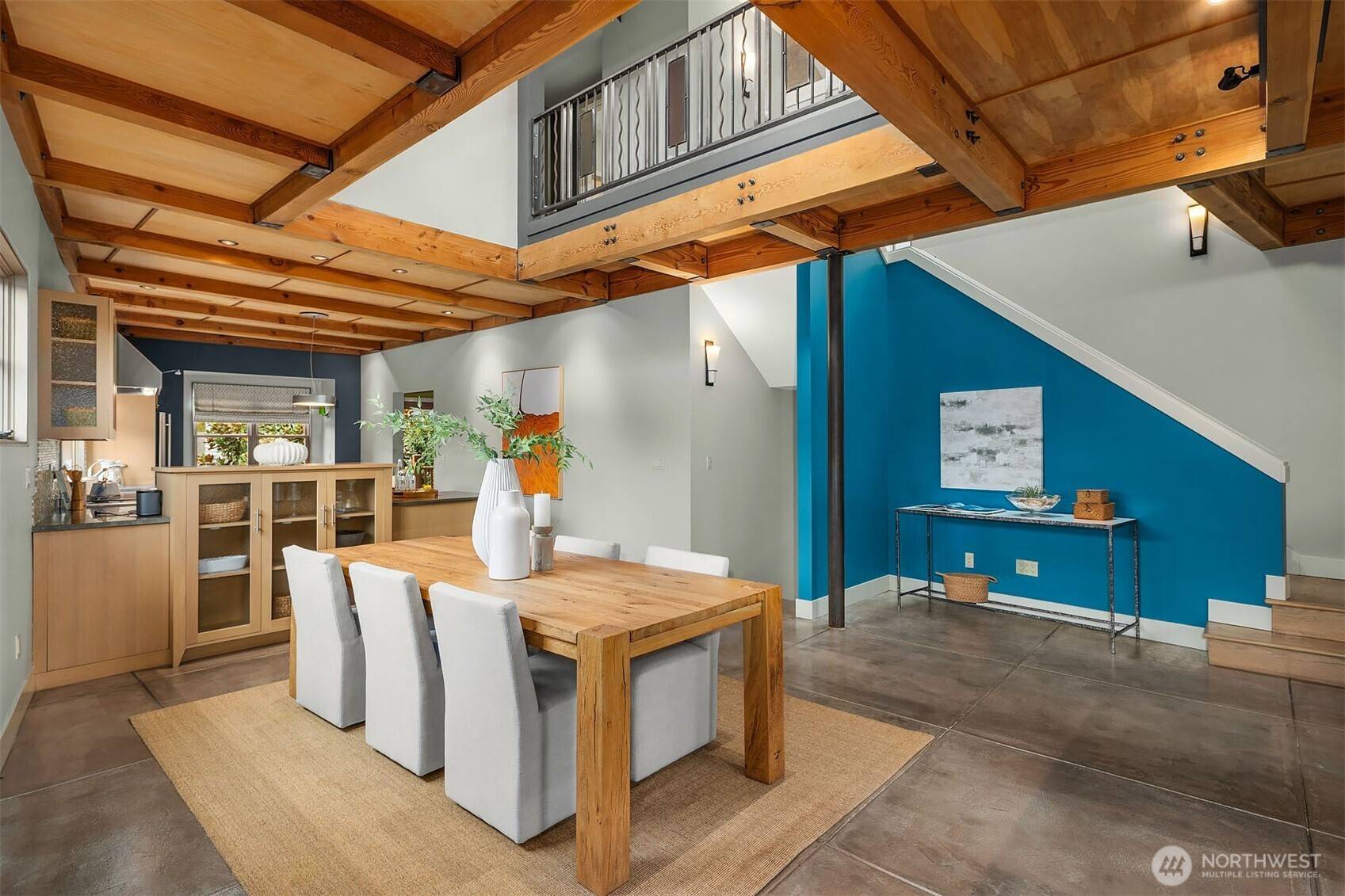 Custom built in 2007, this exquisite Wallingford home delivers exceptional design with unbeatable quality. Fir beams, soaring ceilings, heated concrete floors & abundant windows, create dramatic yet inviting spaces filled with natural light. The chef’s kitchen dazzles with Portuguese limestone counters, rift oak cabinetry, luxury appliances & large island. Step outside to the covered porch & lush gardens featuring a bluestone patio & grill area. The entire 2nd floor is a dreamy primary suite with spa bath, dual walk-ins, laundry & view deck. Exceptional daylight lower level offers 2 bedrooms, bath & media room with garden access. Fab location just steps to Gas Works, Burke Gilman, Wallingford shops & UW. Distinctly custom & undeniably cool!