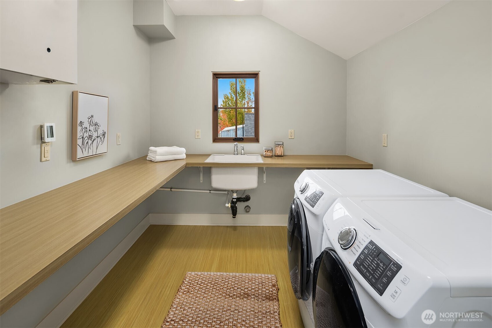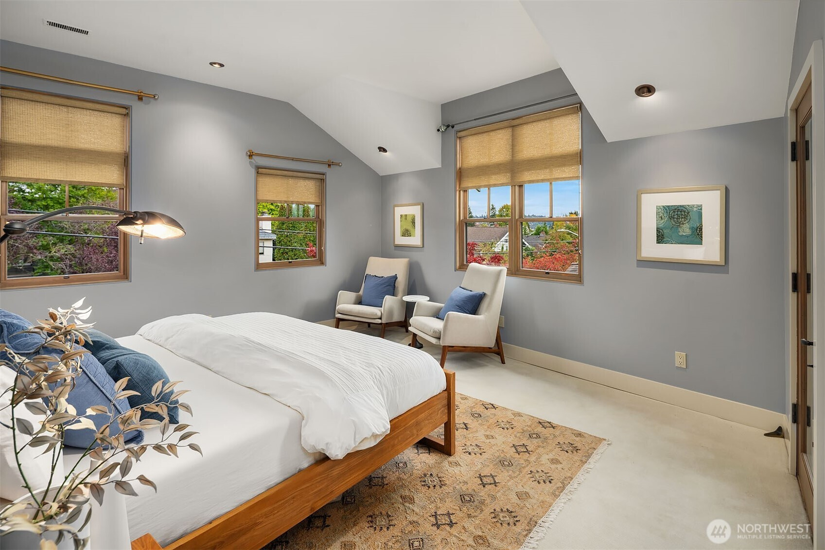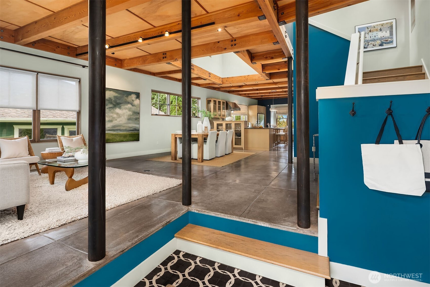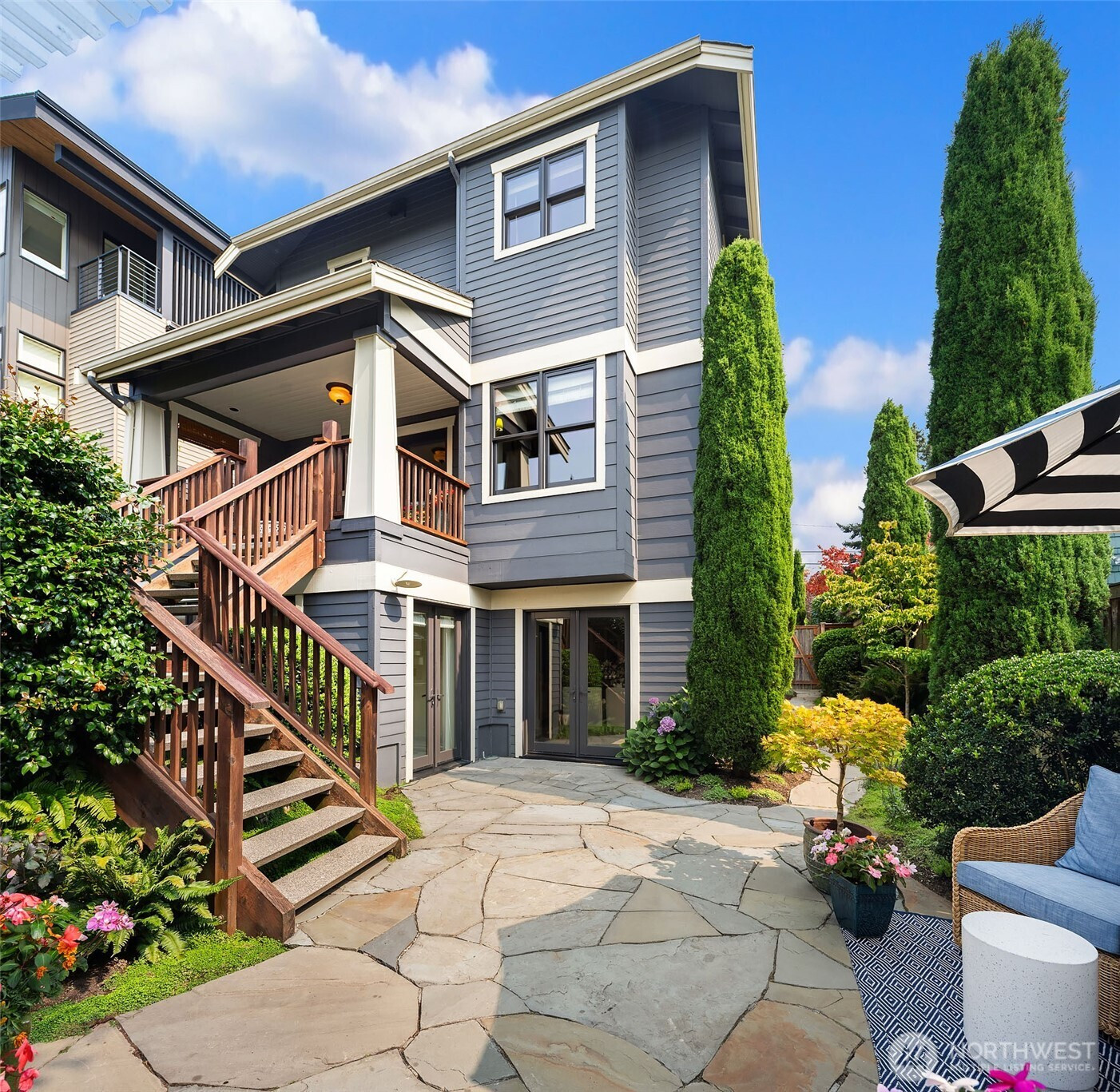 Custom built in 2007, this exquisite Wallingford home delivers exceptional design with unbeatable quality. Fir beams, soaring ceilings, heated concrete floors & abundant windows, create dramatic yet inviting spaces filled with natural light. The chef’s kitchen dazzles with Portuguese limestone counters, rift oak cabinetry, luxury appliances & large island. Step outside to the covered porch & lush gardens featuring a bluestone patio & grill area. The entire 2nd floor is a dreamy primary suite with spa bath, dual walk-ins, laundry & view deck. Exceptional daylight lower level offers 2 bedrooms, bath & media room with garden access. Fab location just steps to Gas Works, Burke Gilman, Wallingford shops & UW. Distinctly custom & undeniably cool!