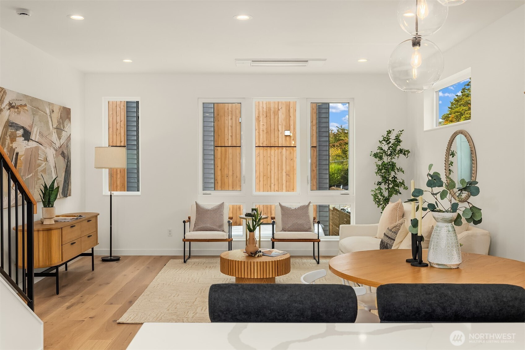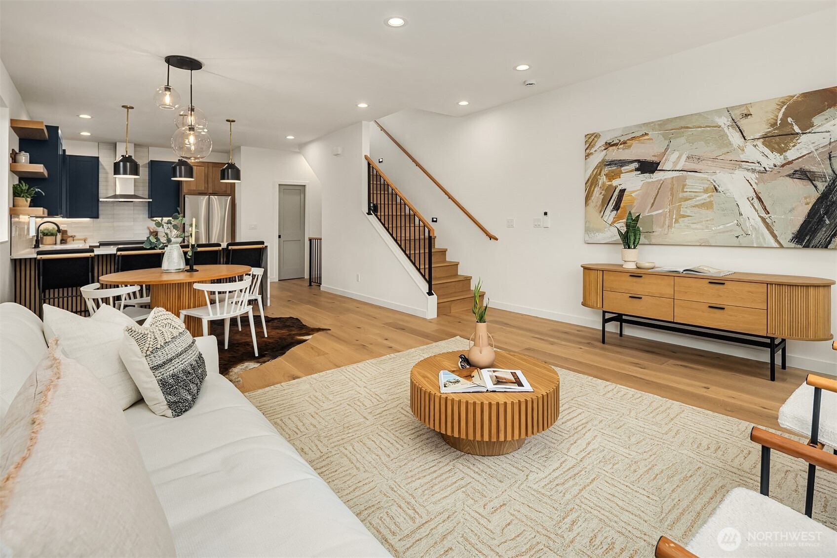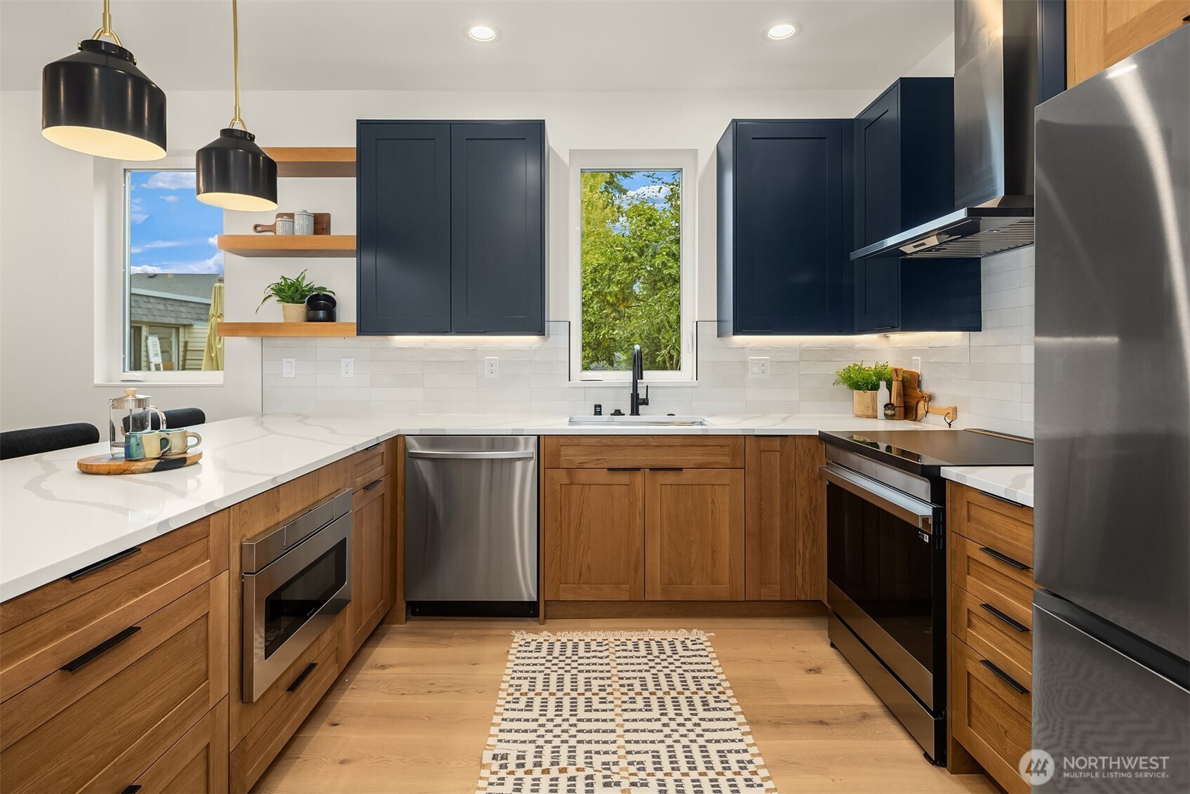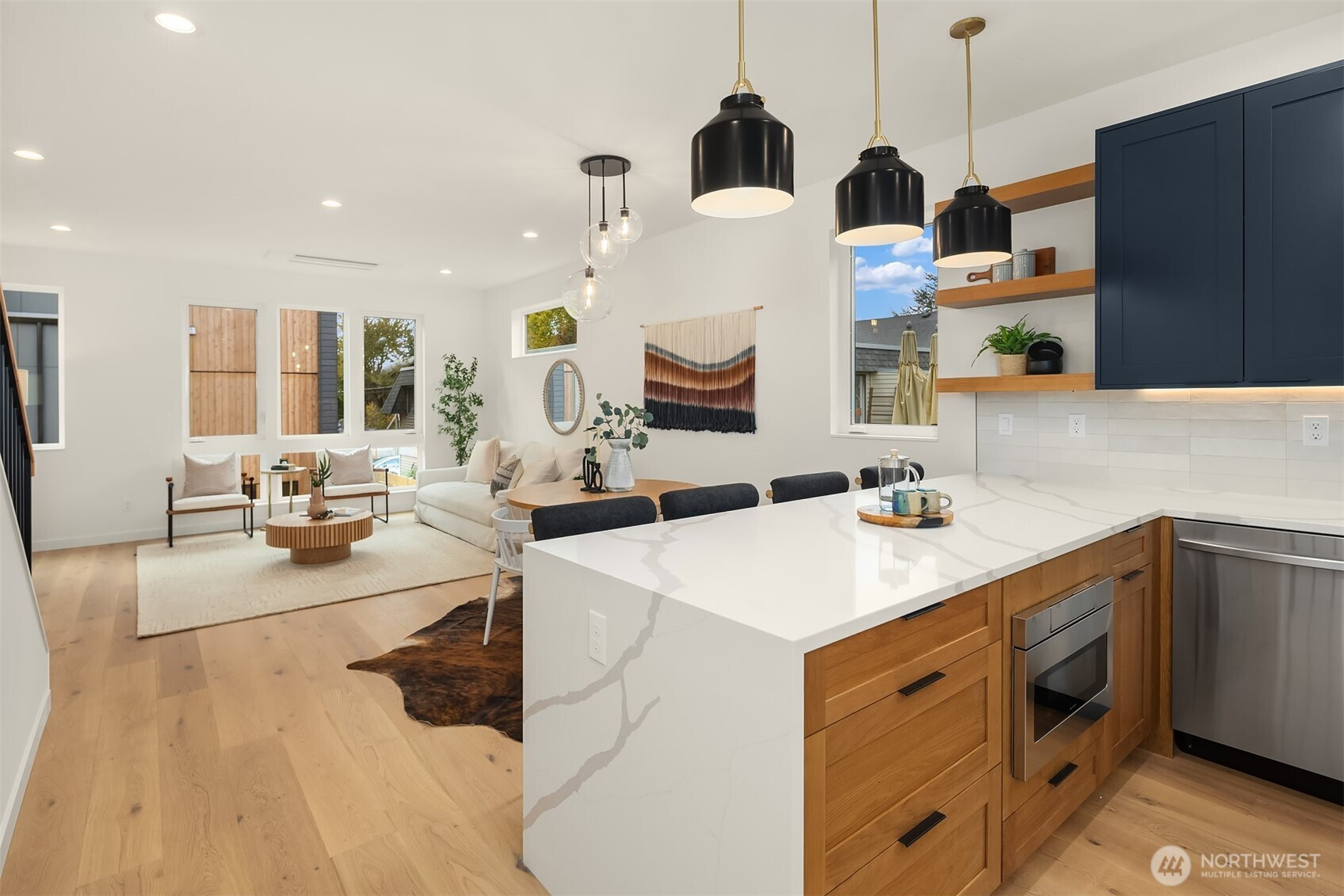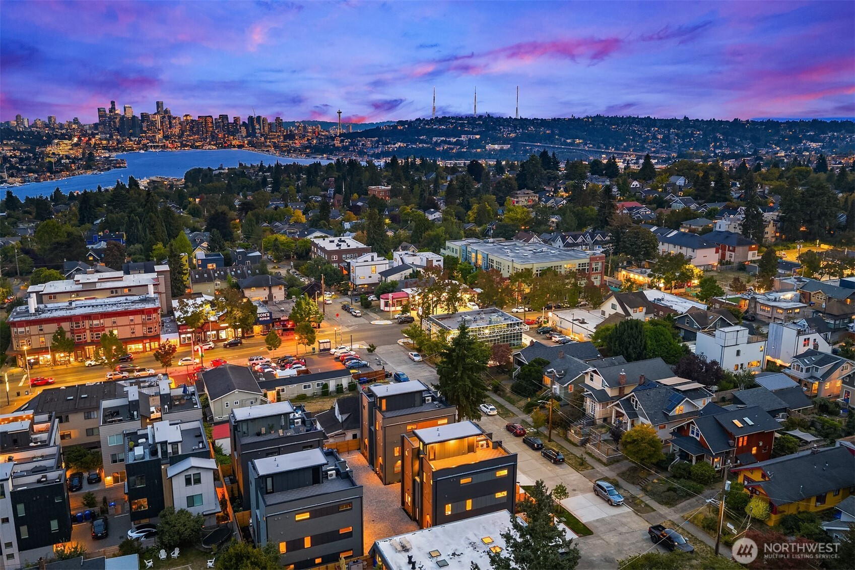 Last home available! Modern design, thoughtful details, and a coveted Wallingford location — this new construction by Ecoworks Homes showcases quality on every level. A bright, open layout with floor-to-ceiling windows and warm contemporary finishes creates an inviting atmosphere. Chef’s kitchen appointed w/ stainless appliances, custom cabinetry, and a peninsula island ideal for entertaining. Entry level offers two spacious bedrooms and a full bath, perfect for guests or a home office. Upstairs, a luxurious primary suite w/ spa-inspired bath and generous laundry room. A rooftop deck with mountain and city views! Fenced yard with patio & designated EV parking space. All just a short walk to Gas Works Park, restaurants, and local favorites!