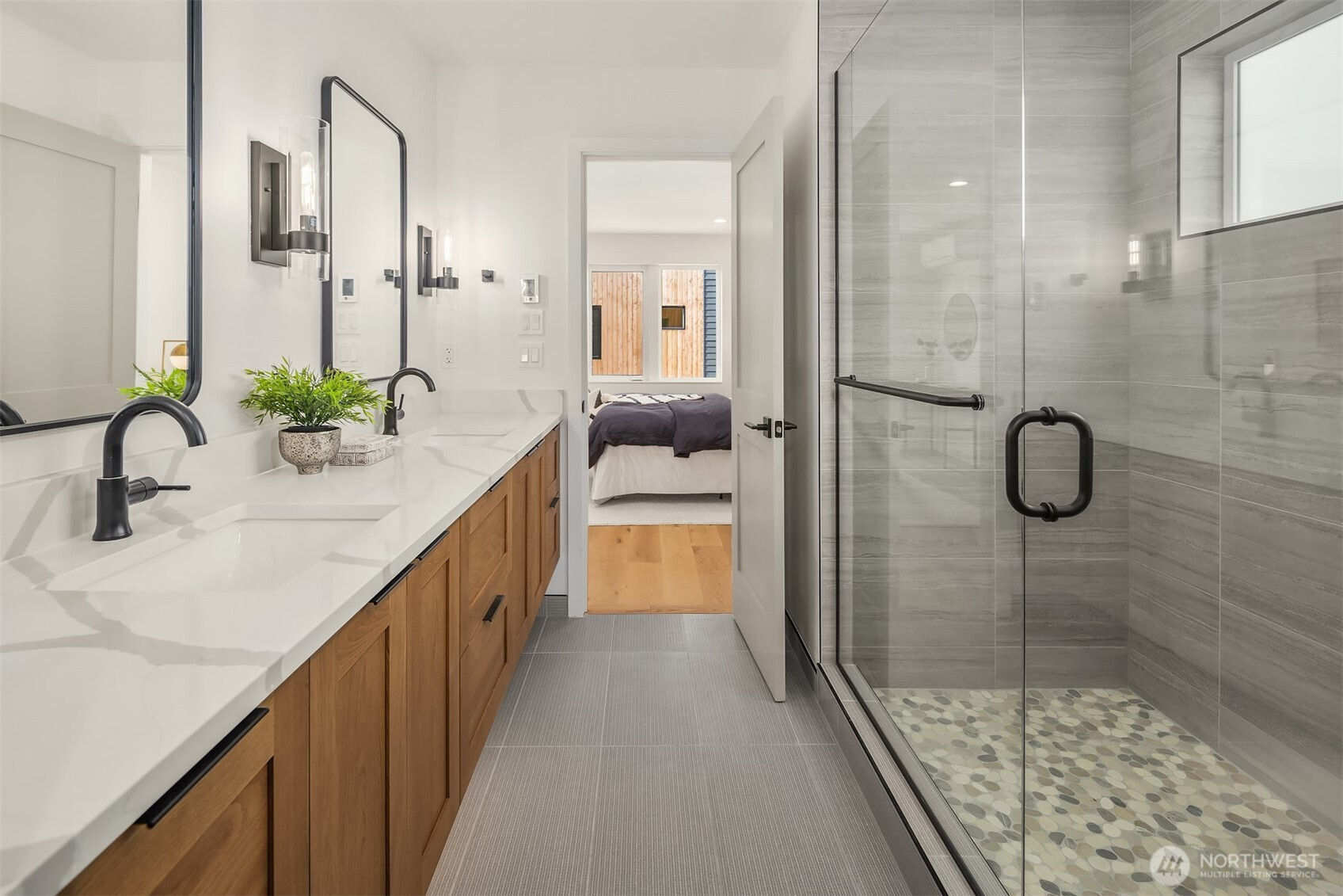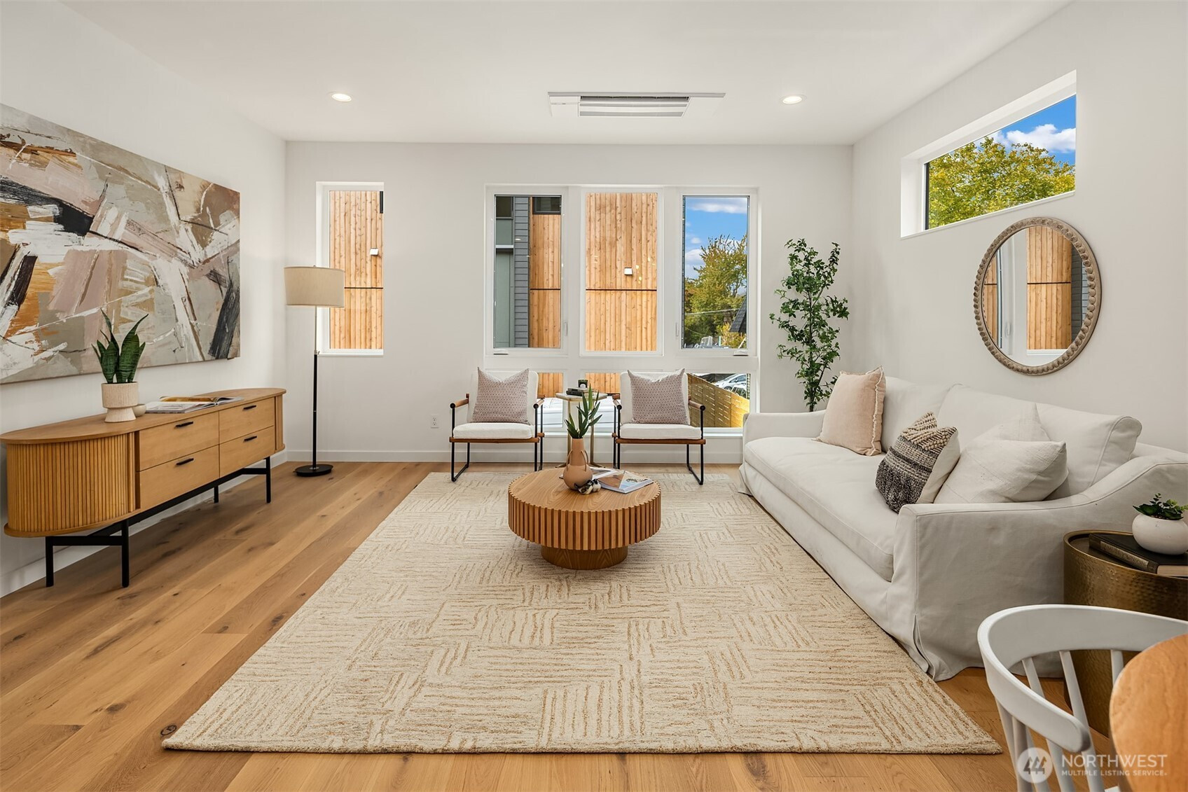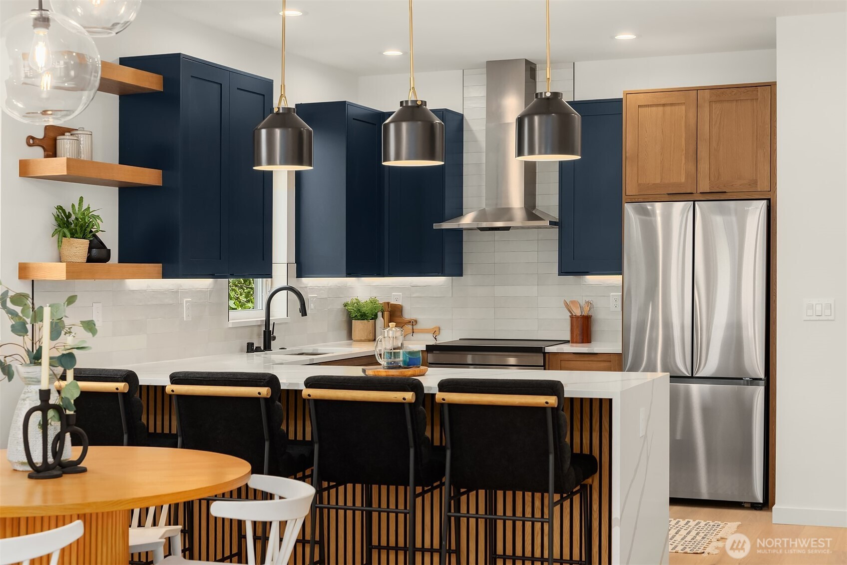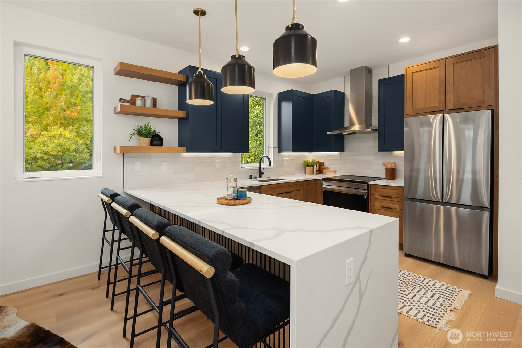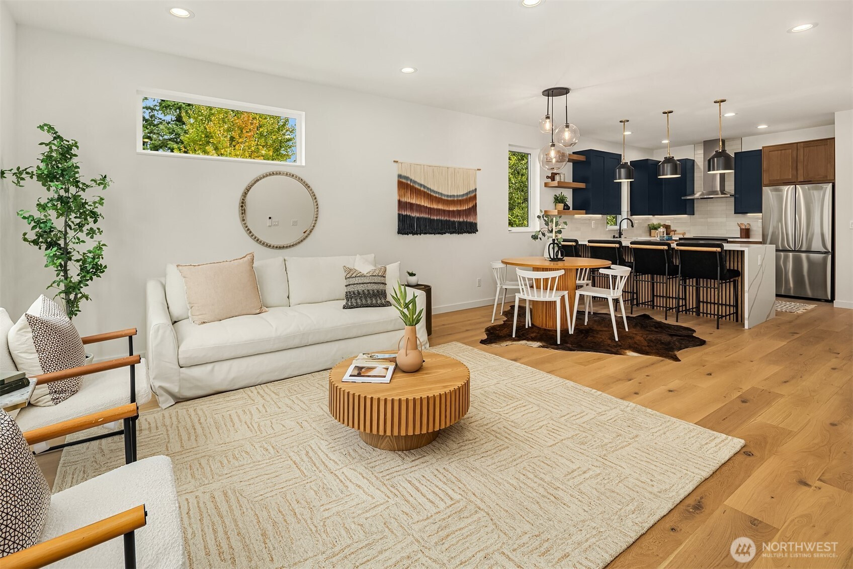 Last home available! Modern design, thoughtful details, and a coveted Wallingford location — this new construction by Ecoworks Homes showcases quality on every level. A bright, open layout with floor-to-ceiling windows and warm contemporary finishes creates an inviting atmosphere. Chef’s kitchen appointed w/ stainless appliances, custom cabinetry, and a peninsula island ideal for entertaining. Entry level offers two spacious bedrooms and a full bath, perfect for guests or a home office. Upstairs, a luxurious primary suite w/ spa-inspired bath and generous laundry room. A rooftop deck with mountain and city views! Fenced yard with patio & designated EV parking space. All just a short walk to Gas Works Park, restaurants, and local favorites!