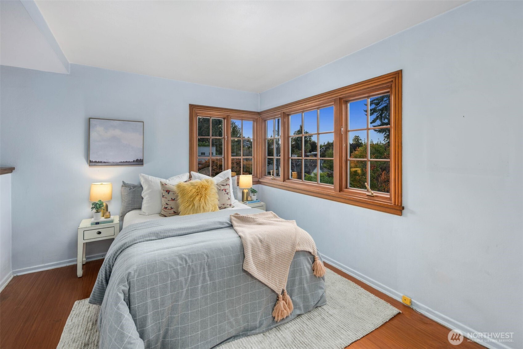 Truly a classic gem in serene Seward Park nestled in the essence of a neighborhood. Quiet, walkable & adorned with falling leaves. This 1930s charmer is available for the 1st time in nearly 50yrs. Refined w ideal qualities: original hardwood floors, built-in cabinets, picture frame windows & formal living spaces. Traditional layout w/ grand living room & fireplace, open kitchen-dining & French Doors accessed view deck, plus 3 upper bedrooms. Primary suite w/ its own relaxing sitting rm + wall of windows to a rooftop deck. Lower-level family rm + guest bed/home office. The corner lot brings amazing natural light & beautiful views of Lake WA, Lakewood Marina & Mt Baker in the distance. Make this one of kind retreat yours for the next 50yrs.