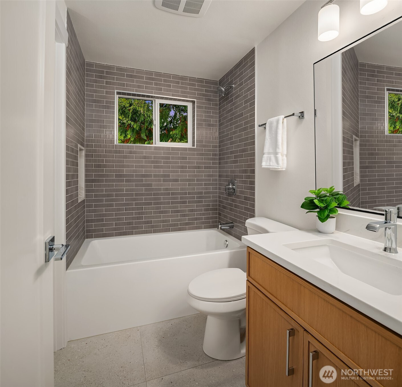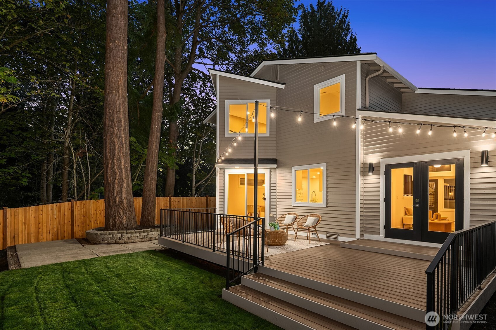 The perfect blend of traditional charm and modern elegance! Enjoy ultimate privacy behind mature laurel trees and a fully fenced yard in this beautifully reimagined home. It features a spacious driveway, expansive backyard, and a large new TREX patio—ideal for entertaining or relaxing outdoors - BETTER THAN NEW CONSTRUCTION! Inside, enjoy a modern open layout with custom tile work, designer finishes and West Elm lighting throughout - LUXURIOUS DETAILS! Stay comfortable year-round with a premium Trane furnace, BOSCH filtration system, A/C and heated tile floors. Located on a quiet street next to a kids park and the scenic North Rose Hill Woodlands Park walking trail. Minutes from Totem Lake, Downtown Redmond, and major tech campuses.