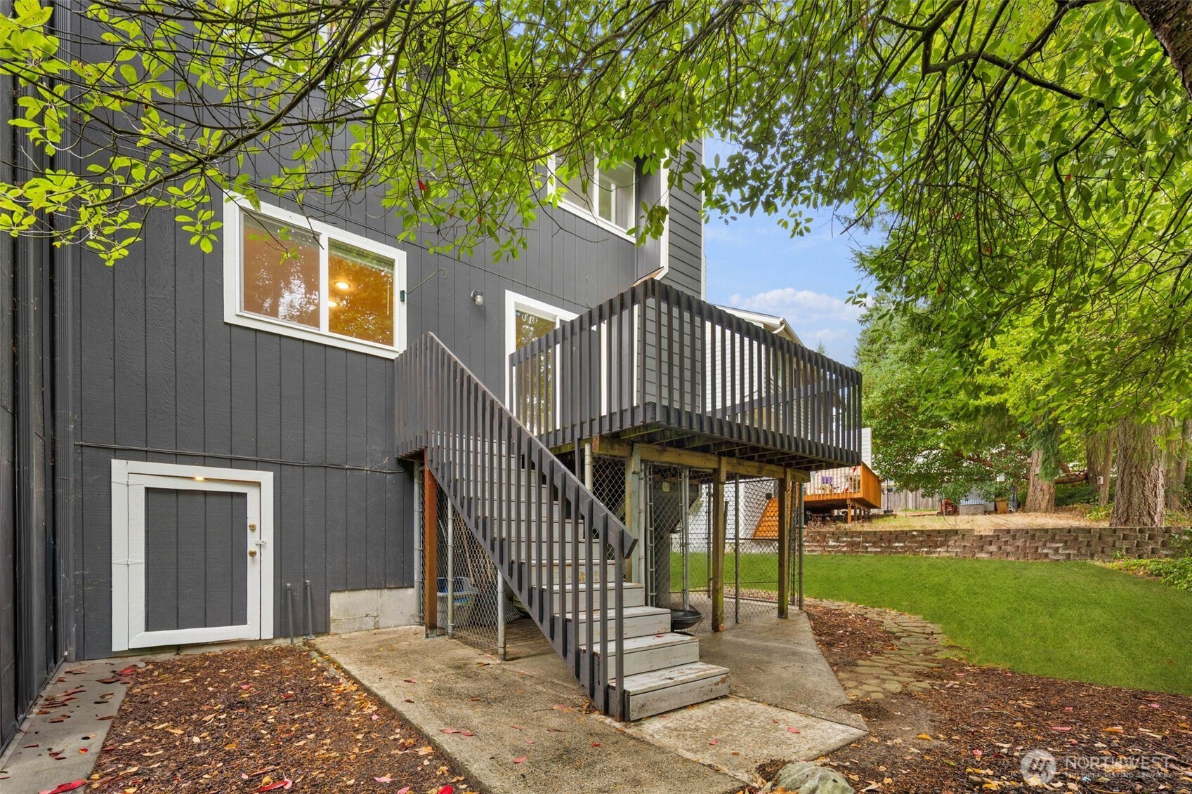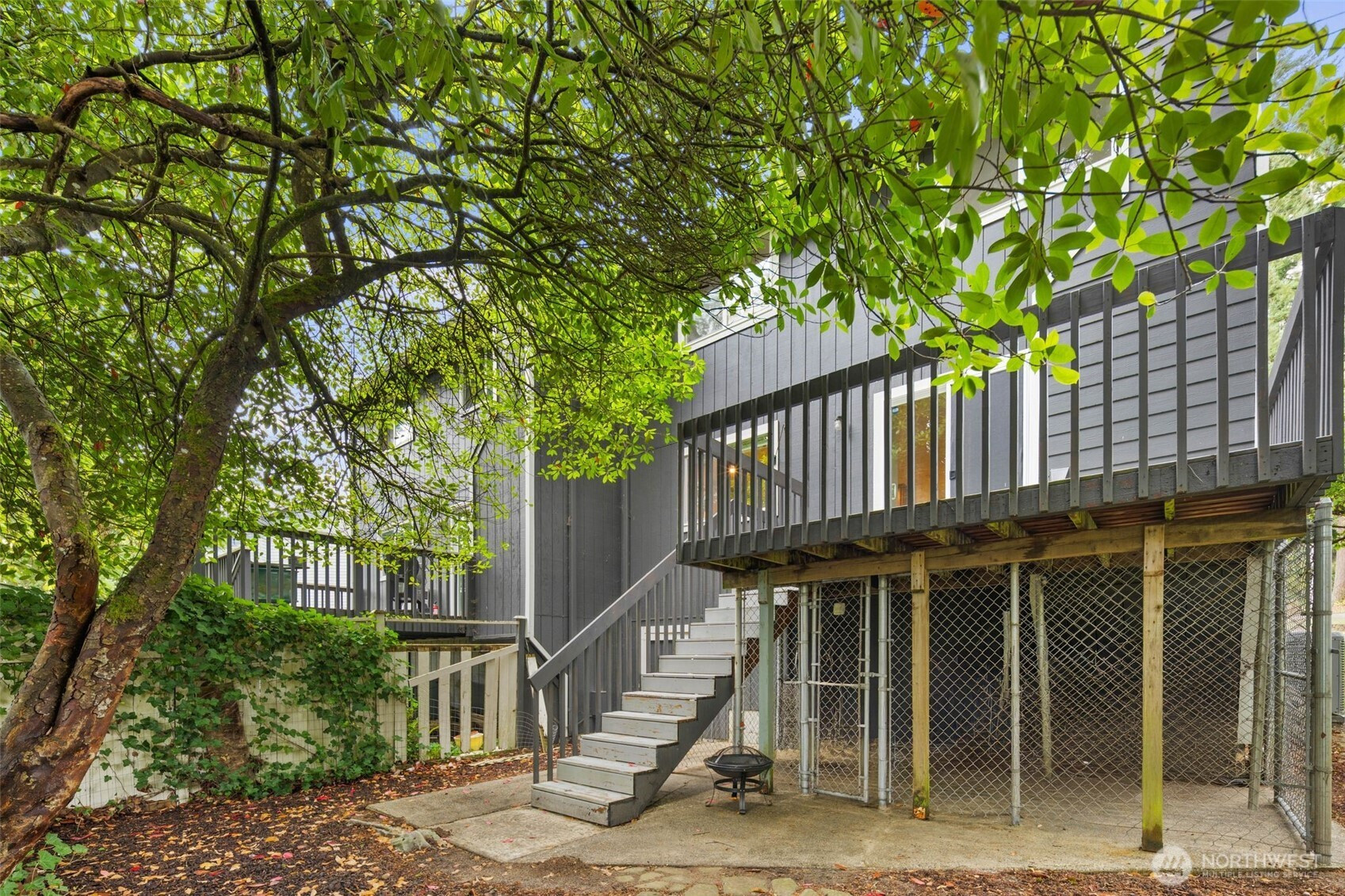 (503) 893-8874Silverdale Townhome with Bonus 645 SF Climate-Controlled Crawl Space Near Island Lake Park. Enter through the front deck into your living room featuring vaulted ceilings and three levels of windows flooding the space with natural light. The spacious kitchen has an eat-in island, while the versatile second living area with fireplace opens to a back deck. Main level includes laundry, half bath, and access to a 1-car garage with deep freezer. Upstairs, discover three bedrooms including a primary suite with dual closets and private bathroom with a stand-up shower. Outside offers a partially fenced yard, apple tree, gated under-deck storage, and incredible 71" height, approximately 645 sq ft of unfinished crawl space - ideal for storage.
