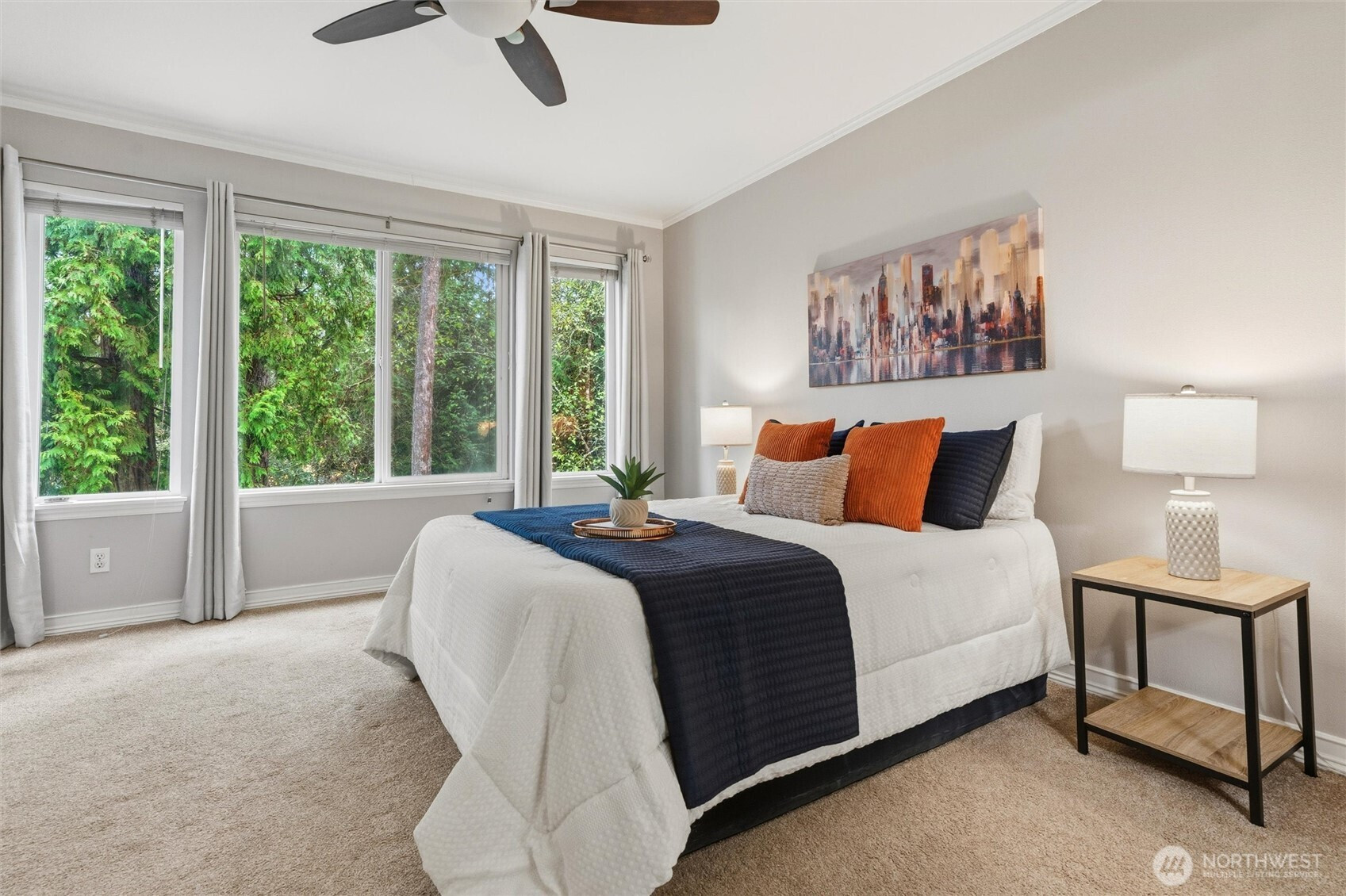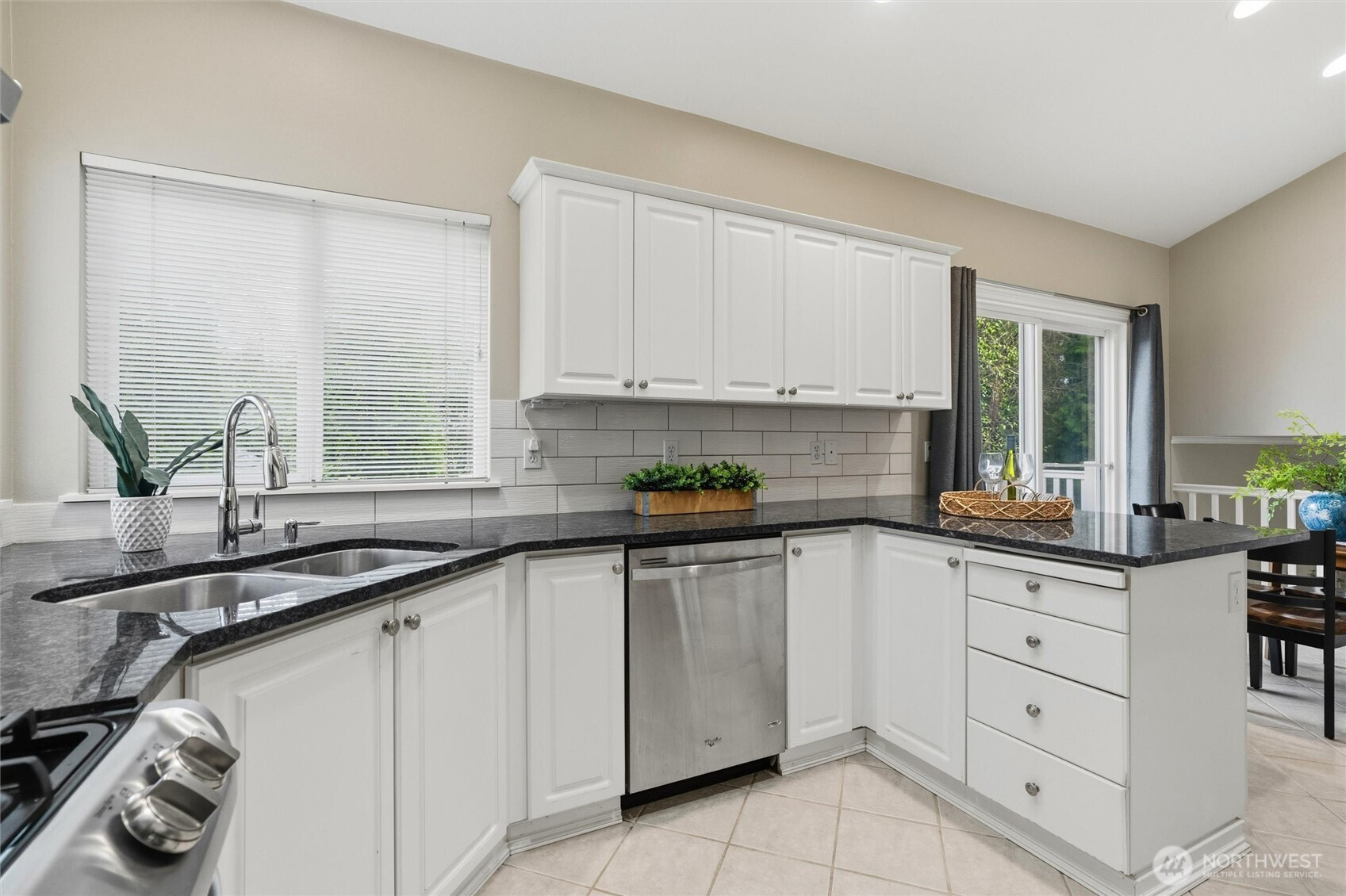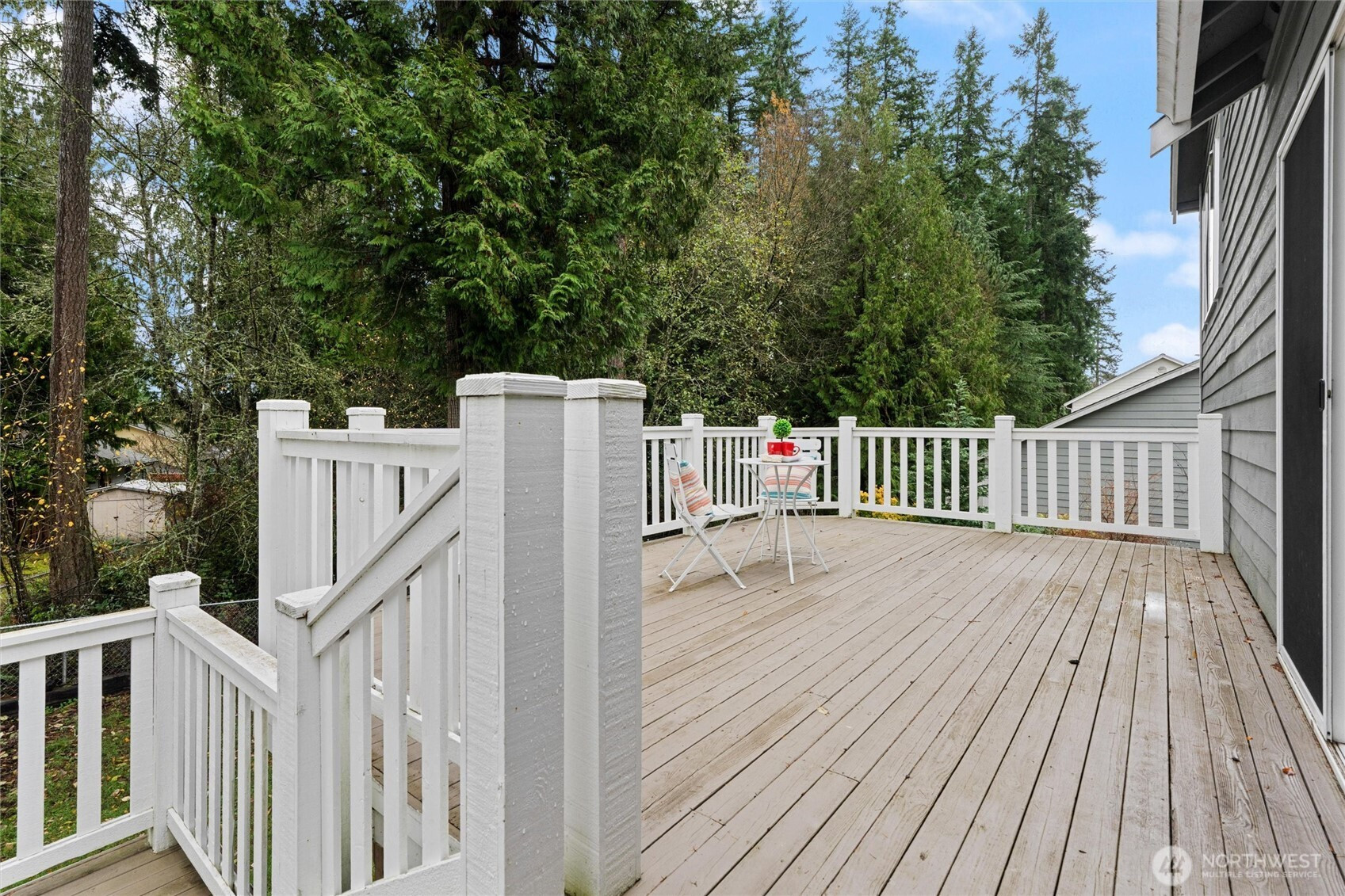 Located in the desirable Staffordshire neighborhood, this home checks all of the boxes! Great location convenient to PSNS, Bangor and all Poulsbo amenities. Large lot w/private fenced back yard, great street appeal, wonderful floorplan, amazing natural light and impeccable condition! Main floor has a great circular floorplan. Stepping inside, the living room is to your left with kitchen and dining adjacent. Vaulted ceilings and skylights make this floor filled with natural light. The kitchen is a delight, open and spacious with white cabinetry, subway tile and black granite countertops. Adjacent dining area opens to spacious deck. Steps down from the dining is a cozy family room with fireplace. Ensuite primary w/wall of windows. See today!