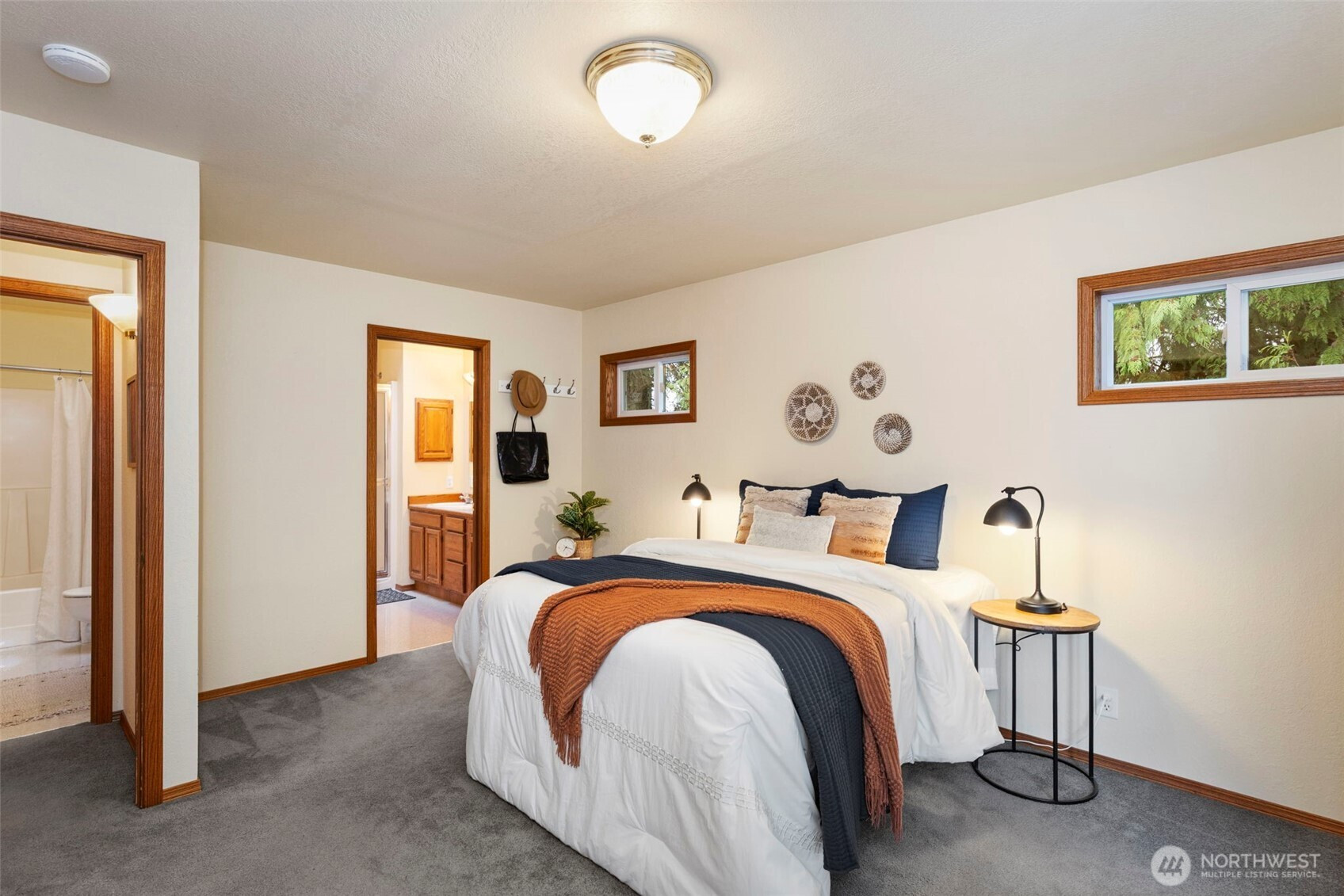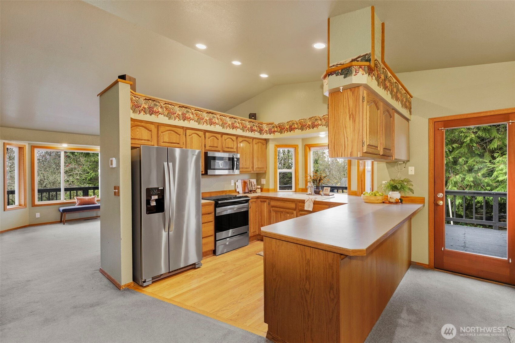 Located in desirable Edgewater Estates this warm and welcoming home is sited on an oversized lot close to the bay! Front porch looks out over the front lawn with plenty of garden space. Step inside to a living room with vaulted ceilings and walls of windows bringing in natural light. Off the living room is the kitchen and adjacent dining area. Kitchen features great work space, storage, and garden windows. Off the dining room is family room with cozy propane stove, high ceilings and slider to the private backyard. Ensuite primary bedroom features huge private rooftop balcony to enjoy your morning beverage or stargazing at night. Don't miss the rec room (enter though garage or side door) and the enormous RV/boat parking. See it today!