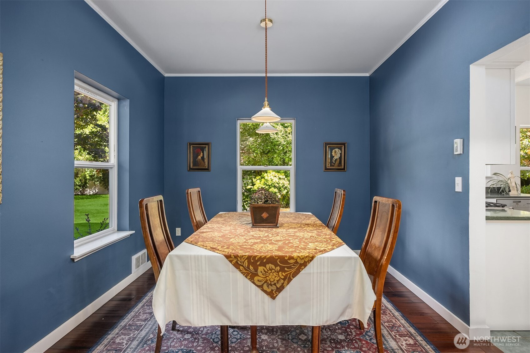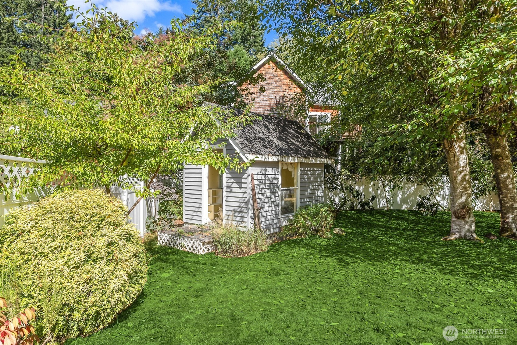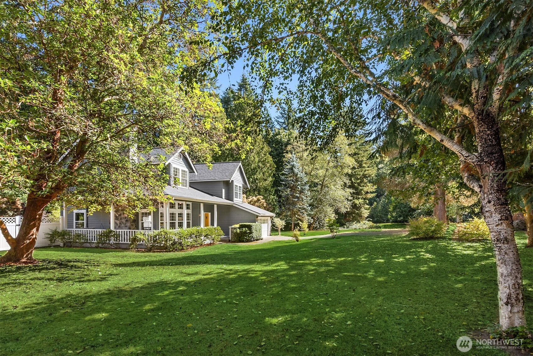Welcome home to this sunny property on historic Old Mill Rd. Set on 1.74 acres, it offers a level lot w/year-round gardens, an orchard, fully fenced backyard & seasonal blooms from peonies to winter sweet box. Mature smoke trees steal the show each fall with a striking wash of purple. The neighborhood is equally exceptional, w/the community spirit Bainbridge is known for. Ideally located near award-winning Blakely Elementary & just minutes to the ferry, Winslow & trails. Inside, the great room features dramatic two-story windows, a T&G ceiling & wood-burning fireplace. The flexible floor plan includes an eat-in kitchen, dining and family rooms, plus 3 bedrooms, a bonus room and a primary suite retreat. A detached studio adds creative space.