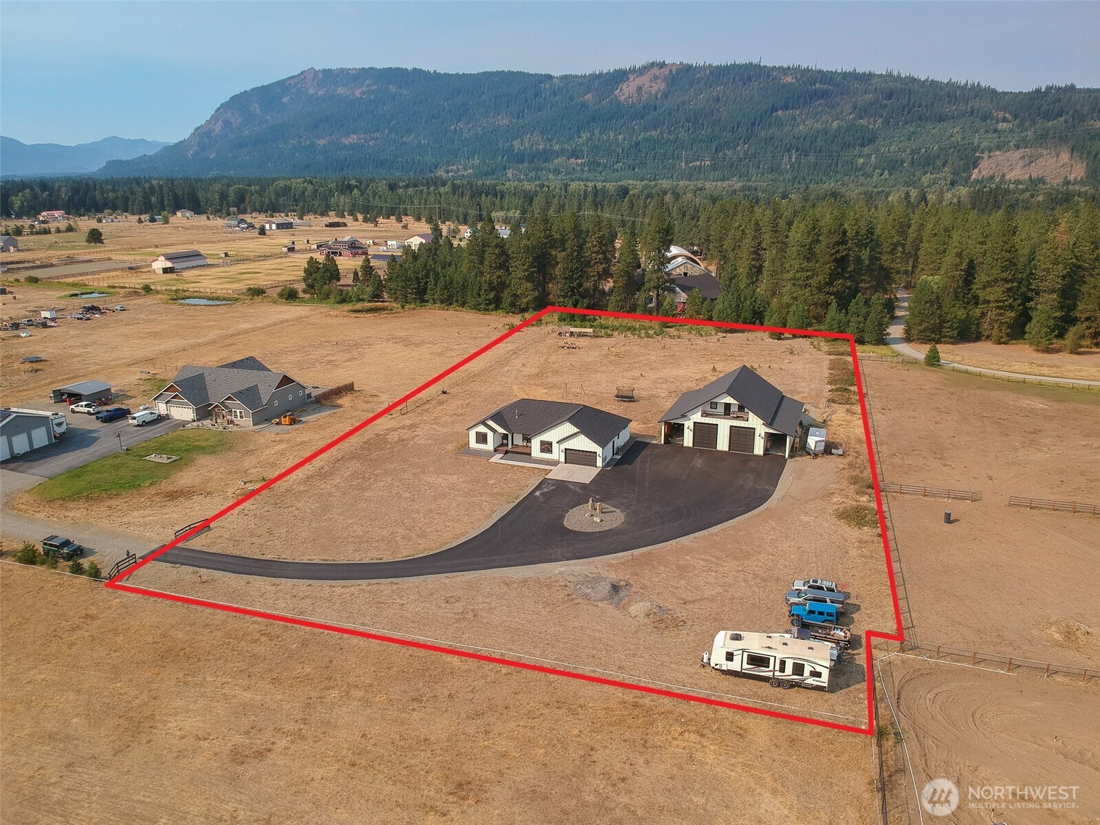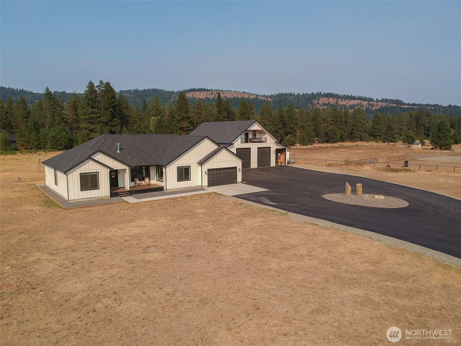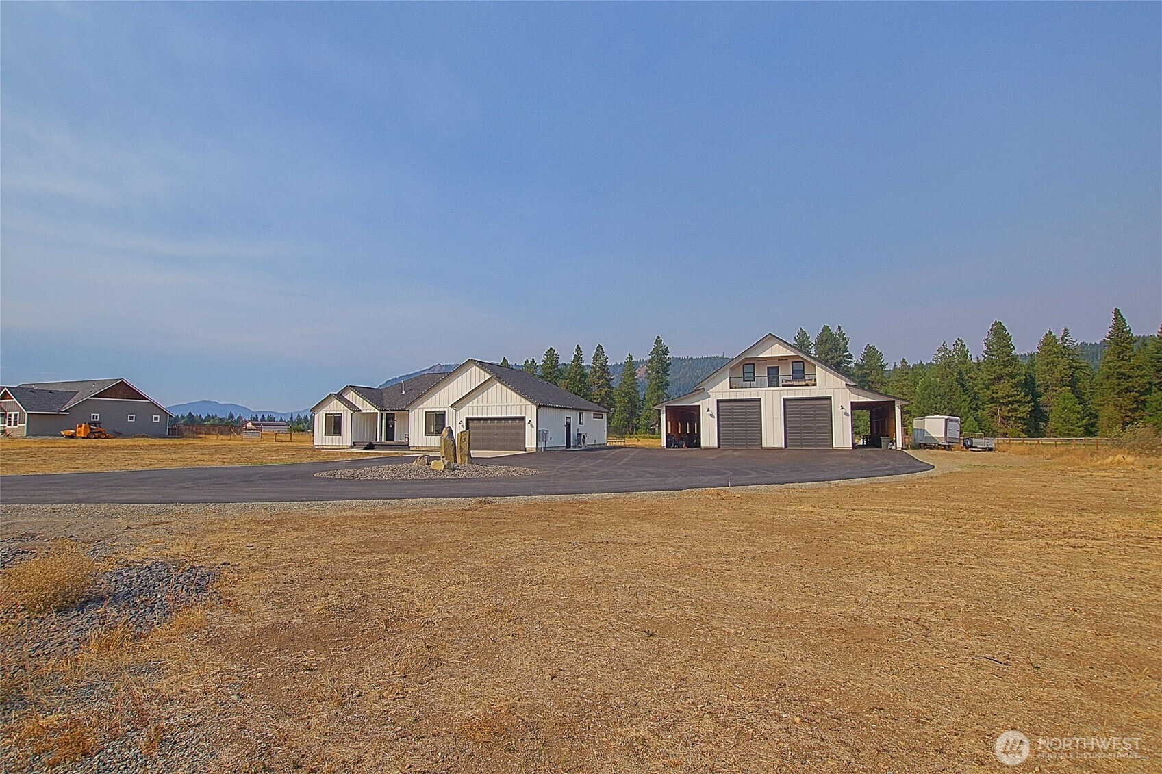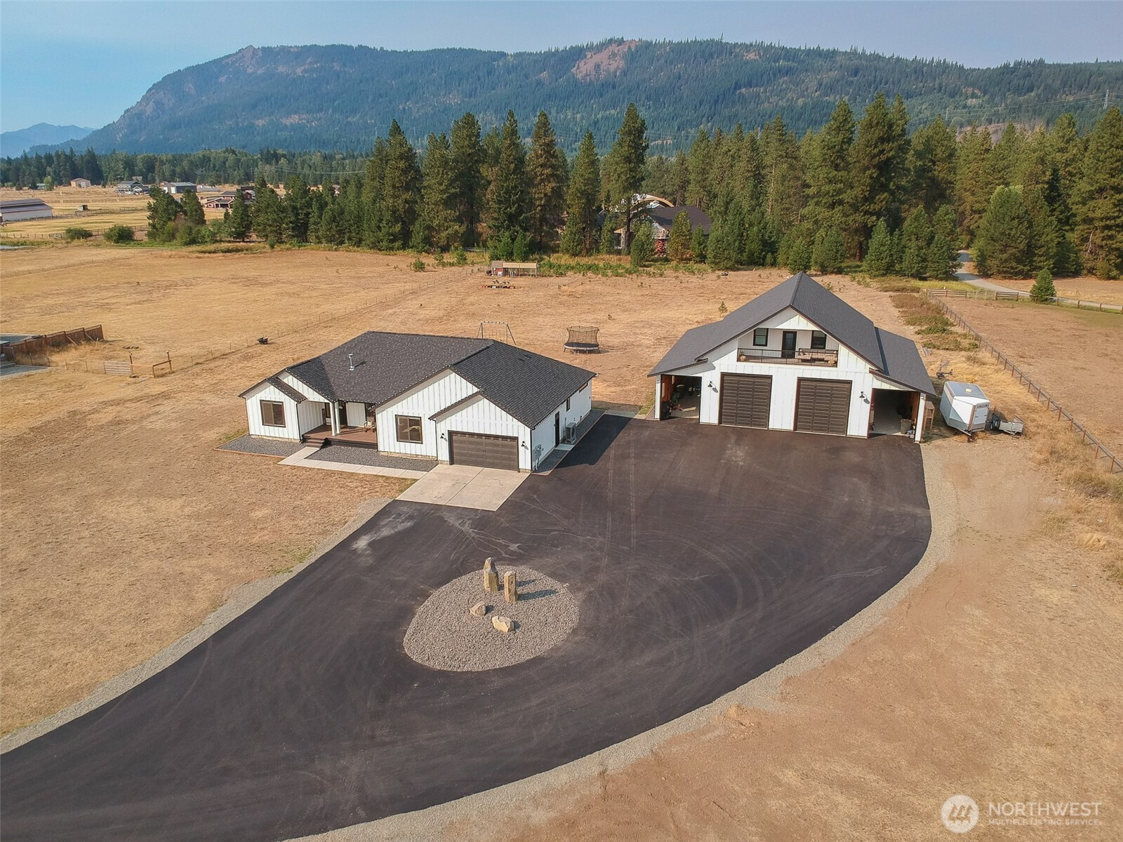 Surrounded by mountains, the views from this farmhouse style rambler, set on 3.44 acres, are simply breathtaking. However what is equally breathtaking is the massive new 60x40 shop that includes a 2bd 1ba 1200sqft DADU, an owners office & enough storage space to park just about anything you can think of. At 2576sqft, w/4bd 2.5ba the main home combines open plan living w/functionality. The kitchen's equipped with a huge island, quartz countertops, SS appliances & a Butler's pantry & is complimented by a spacious living room & huge rec room/flex space. All of the bedrooms are well appointed and the Primary as a beautiful ensuite and a walk-in closet. Surely this is one of those rare properties that has everything you're looking for.
