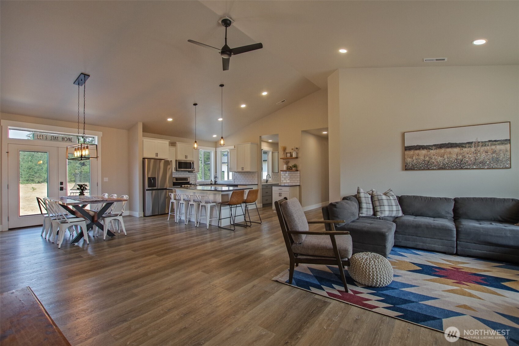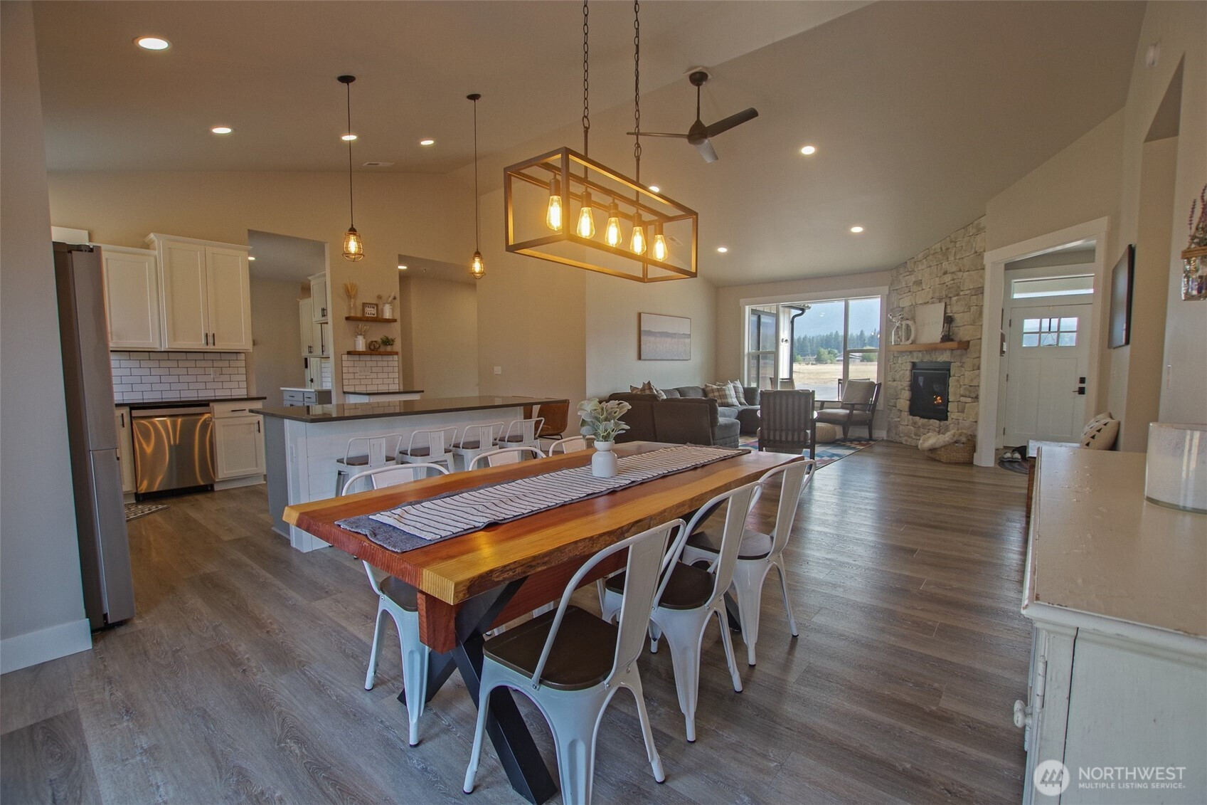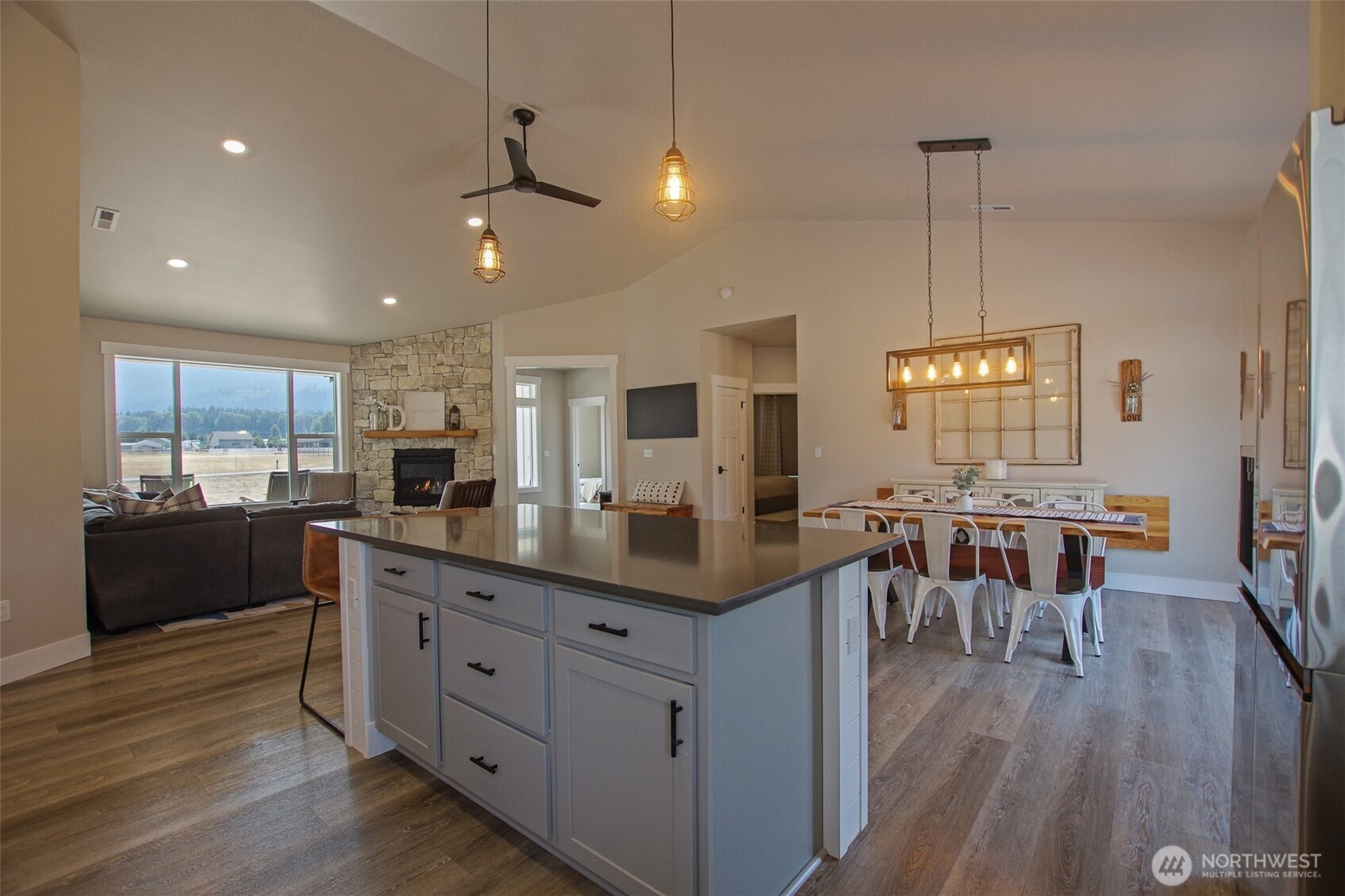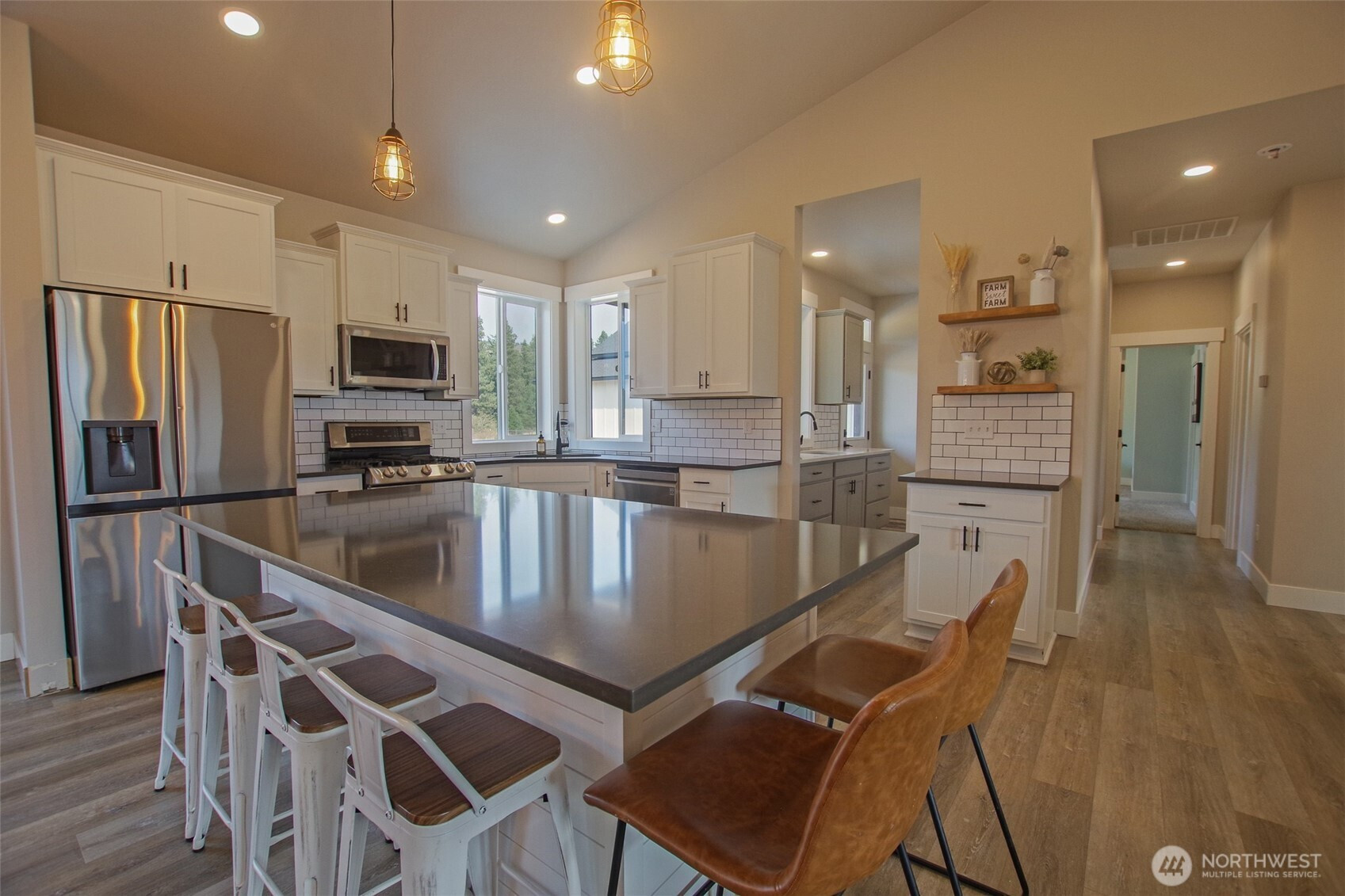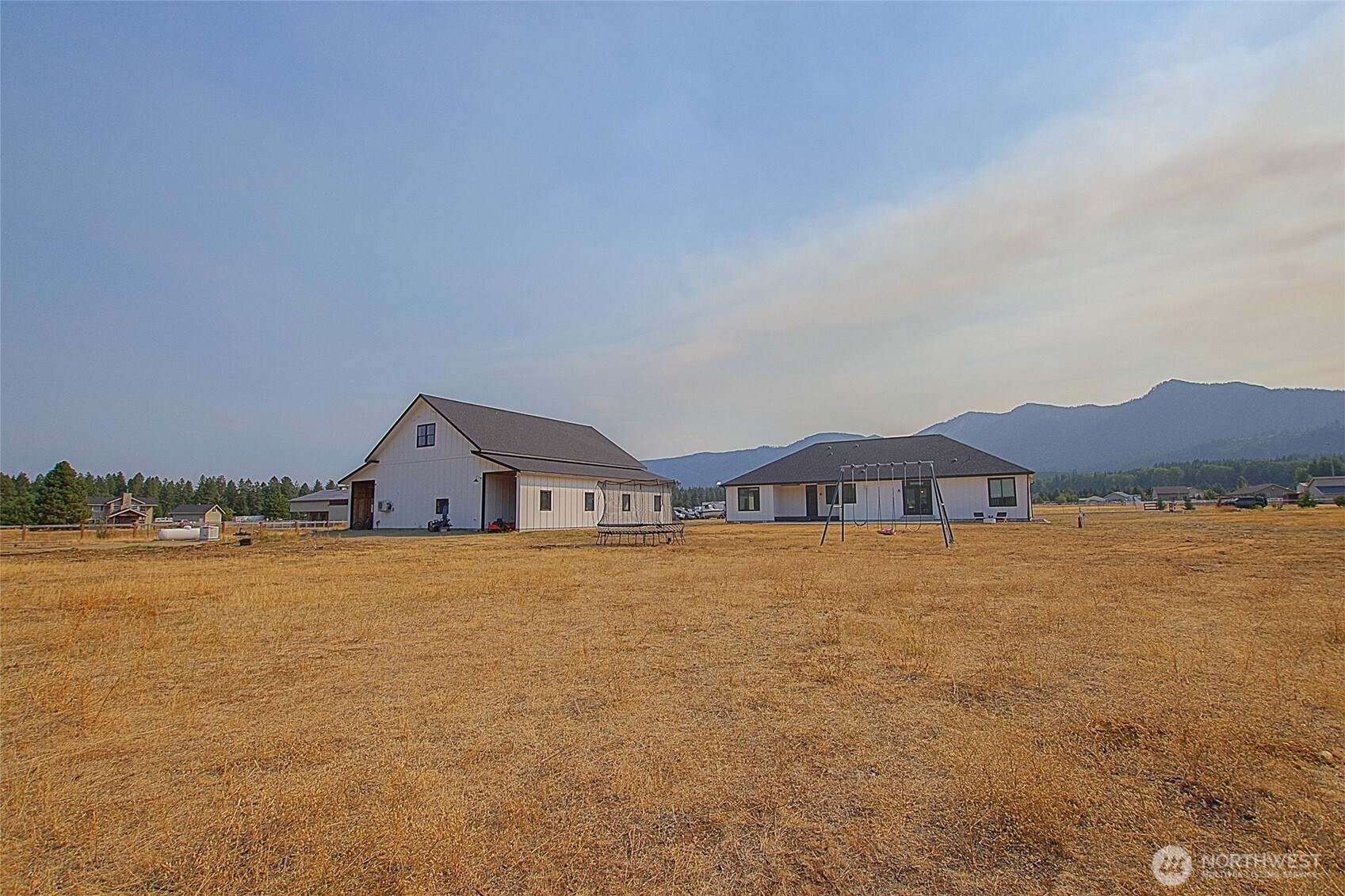 Surrounded by mountains, the views from this farmhouse style rambler, set on 3.44 acres, are simply breathtaking. However what is equally breathtaking is the massive new 60x40 shop that includes a 2bd 1ba 1200sqft DADU, an owners office & enough storage space to park just about anything you can think of. At 2576sqft, w/4bd 2.5ba the main home combines open plan living w/functionality. The kitchen's equipped with a huge island, quartz countertops, SS appliances & a Butler's pantry & is complimented by a spacious living room & huge rec room/flex space. All of the bedrooms are well appointed and the Primary as a beautiful ensuite and a walk-in closet. Surely this is one of those rare properties that has everything you're looking for.