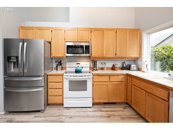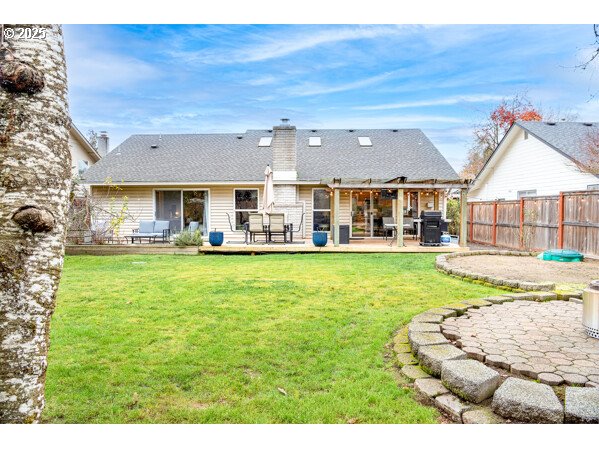This remodeled 3 bed/2 bath home has 1,358 Sqft and sits on .18 acres. Nice quiet neighborhood with no outlet and walking distance to parks. The home features skylights that provide ample lighting in the main part of the home with vaulted ceilings. Kitchen flows into a large family room with a newer gas fireplace. Primary bdrm has a full bath, walk in closet and a large sliding glass door for accessing the backyard - a perfect location for a hot tub! Large 2nd bdrm with walk in closet. Large back yard with a covered patio featuring blueberry bushes, apple and Cherrie trees and an herb garden. Home also has a nest smart home thermostat. Move in ready!