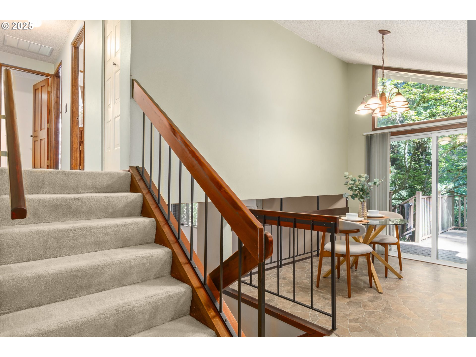 (503) 893-8874Set among the trees in Eugene’s southwest hills, this comfortable tri-level home offers space, warmth, and potential. The main level features a chic wood accent wall that adds character to the large living and dining area, perfect for gatherings large or small. The kitchen includes slab granite counters, updated stainless steel appliances, and a casual eating area with a slider to the spacious deck—great for relaxing or entertaining outdoors. Downstairs, a cozy family room with a wood stove creates a welcoming spot to unwind, especially during cooler days. The primary bedroom includes its own full bath, and practical updates like mostly updated vinyl windows, a ductless heat pump, and a 50-year roof (installed just a few years ago) provide a solid start for someone ready to make this home their own. Surrounded by nature, this home offers a peaceful setting with room to add your own touch and style.