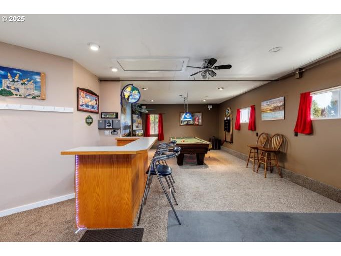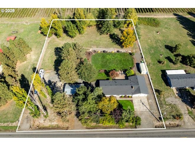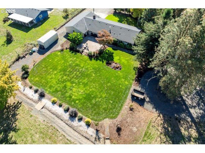 (503) 893-8874Hard to find small acreage close into town and freeways. Come home to this well maintained 1836 Sq Ft 3 bedrooms, 2.1 baths ranch-style home on a beautiful spacious 2 ACRE lot. Featuring open floor plan. This home has a large living room with fireplace that flows into the dining area with woodstove and kitchen creating an inviting space ideal for family gatherings or entertaining. Off the dining area are large glass windows and door that opens up to large patio with fire pit. There is also a 9 X 12 garden with a shed for all your yard tools. Property has a insulated detached 36 X 24 Ft shop/garage with RV electrical hook up. RV parking and plenty of space for all other toys, and extra storage, Shop on separate electrical panel. There is also a concrete pad with basketball hoop. In the attached extended deep garage is a pool table/party room set up for game days or whatever you want to turn it into. Lawn has irrigation system. Roof is between 6-7 years old.