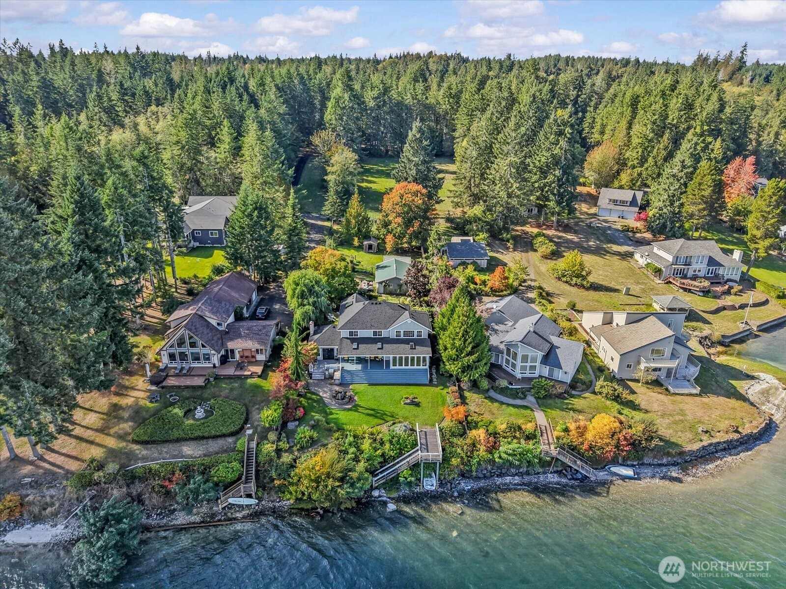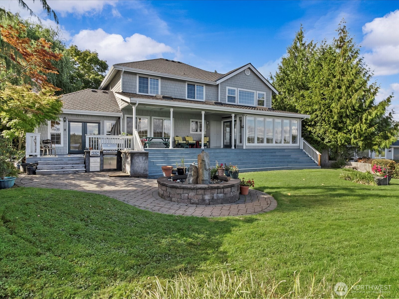 Quality built Terhune 2-story on 81' of low bank waterfront on Pickering Passage. Stunning views from almost every room! Over 2 acres of manicured grounds with orchard, mature shrubs and plantings, and ponds with water features. You will love the indoor/outdoor living with sunroom and outdoor kitchen. The home has been extremely maintained and updated. Kitchen features a double oven, gas cooktop, wine cooler, and new granite countertops. Huge owner's suite with 5-piece bath and large windows to soak in the views. Both living and family rooms have gas fireplaces plus a spacious rec-room. Detached 3-car garage with room for a shop. Live the dream of a quiet waterfront lifestyle within reach of the big NW cities. Free 1yr AHS home protection.