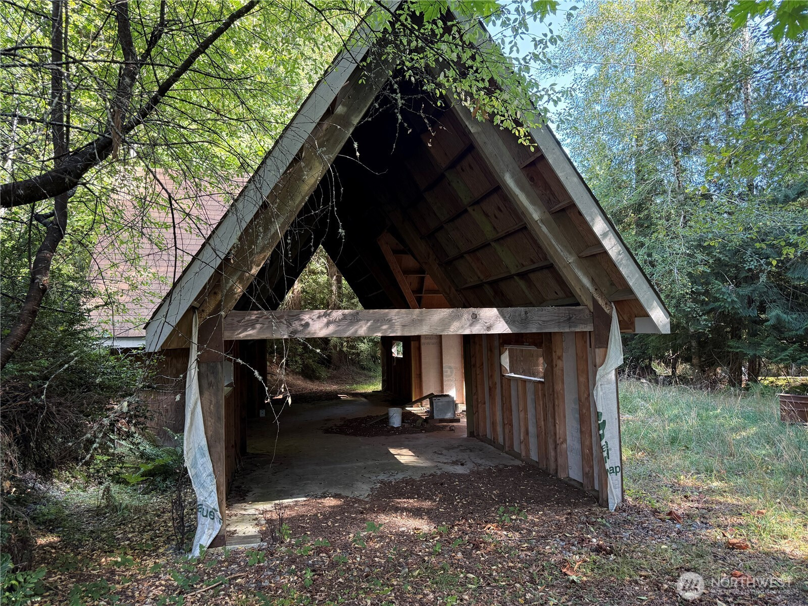 Oh, boy, this is an interesting property! Almost 47 beautiful acres on magical Harstine Island, with the start of a wonderful homesite. Sellers drilled a well & and installed a septic system in the mid-90's, and put an 1,802sf home structure on the property that is unfinished- no doors or windows, just a concrete foundation with walls and a stucco exterior, still in the studs inside. Two outbuildings - one complete (shop) & one unfinished. Power is nearby in the driveway, or consider going off-grid! The serenity here is amazing. The driveway meanders through heavily-timbered property, over a beautiful creek. You will feel like you are a million miles away from town...