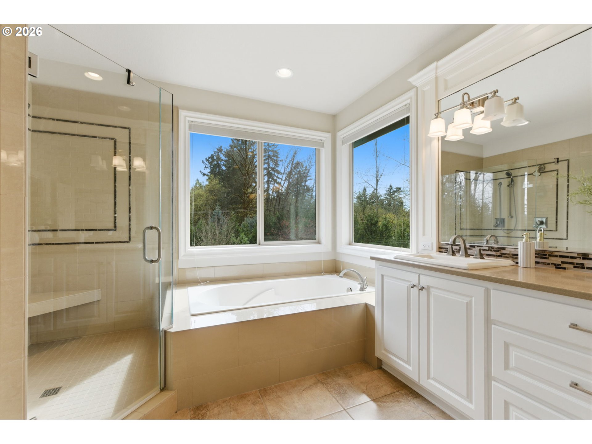 (503) 893-8874Situated on a private cul-de-sac in highly sought after Dunthorpe neighborhood, this well built home has been lovingly maintained by its original owners with new fresh interior paint and new plush carpeting. Wonderful open floorplan living with two story great room, high ceilings throughout, generous room sizes, and solid core doors. The main level features a den with a gas fireplace and wainscoting, an elegant dining room with hardwood floors, and a butler’s pantry with granite counters connecting to the kitchen. The gourmet kitchen is equipped with a Viking oven and range, center island with seating, granite countertops, tile flooring, soft-close cabinetry, a large walk-in pantry, and beautiful breakfast room filled with natural light. The covered patio is ideal for year-round entertaining and enjoying the picturesque backyard. The impressive great room showcases a 19’ vaulted ceiling, expansive windows, hardwood floors, and a stone gas fireplace with access to the patio. Upstairs, the primary suite features beautiful views over Tryon Creek State Park, a tray ceiling, bathroom with dual vanities, soaking tub, tile walk-in shower, private water closet, and a spacious walk-in closet. Three additional bedrooms with closet organizers and two full bathrooms (one on-suite), a versatile bonus room complete the upper level. Additional highlights include upgraded rear windows, a main-level laundry room with sink and storage, and a covered front porch. The fully fenced yard offers mature landscaping and privacy with level lawn. Oversized two-car garage with tandem storage. Equipped with Nest thermostats, a two-zone HVAC system and back-up generator. Ideally located across from Tryon Creek State Park with convenient access to Portland and Lake Oswego amenities all while being located within the top rated Riverdale School District. [Home Energy Score = 2. HES Report at https://rpt.greenbuildingregistry.com/hes/OR10244308]
