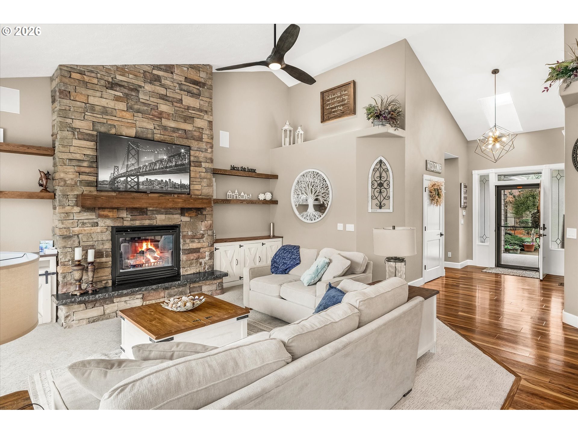 (503) 893-8874Rare opportunity to own a fully gated, level acre featuring an oversized 30x50 detached garage/shop, generous RV and recreational vehicle parking, greenhouse, raised garden beds, anda beautifully updated one-level home. This exceptional property blends comfort, function, and lifestyle in a way that is rarely found. Designed for buyers who value space and versatility, the detached garage/shop offers multiple bays and finished flex rooms ideal for hobbies, storage, workshop use, a home office, gym, studio, or other creative pursuits. Additional features include a built-in air compressor, pellet stove, and a 10x20 shed for added convenience and utility. The outdoor setting is equally impressive. Gardening enthusiasts will appreciate the greenhouseand raised beds, while the usable acre provides space to garden, entertain, and unwind in a private setting. A covered BBQ patio with fountain creates an inviting outdoor living area, completewith built-in BBQ, refrigerator, and granite eating bar for casual seating. The fully gated grounds offer privacy, convenience, and room for RVs, trailers, extra vehicles, and recreational toys. Inside, the home has been extensively refreshed with professionally retextured walls and fullinterior paint, including trim, doors, and ceilings, creating a clean, updated feel throughout. Updated lighting, fixtures, and hardware add a refined finish. The kitchen has been tastefully updated with painted cabinetry, hardware, backsplash, faucets,double ovens, cooktop, downdraft, refrigerator, and microwave. Instant hot water and reverse osmosis filtered water. Additional improvements include newer carpet and LVP flooring, epoxy-coated porches, garage, and utility area, plus screen doors for easy indoor-outdoor living. Major updates include new roof (2024), high-efficiency HVAC and 95% furnace (2024), new water softener (2025), crawlspace drainage, sump pump, vapor barrier (2026), and exterior paint in 2022 with trim updates (2025).