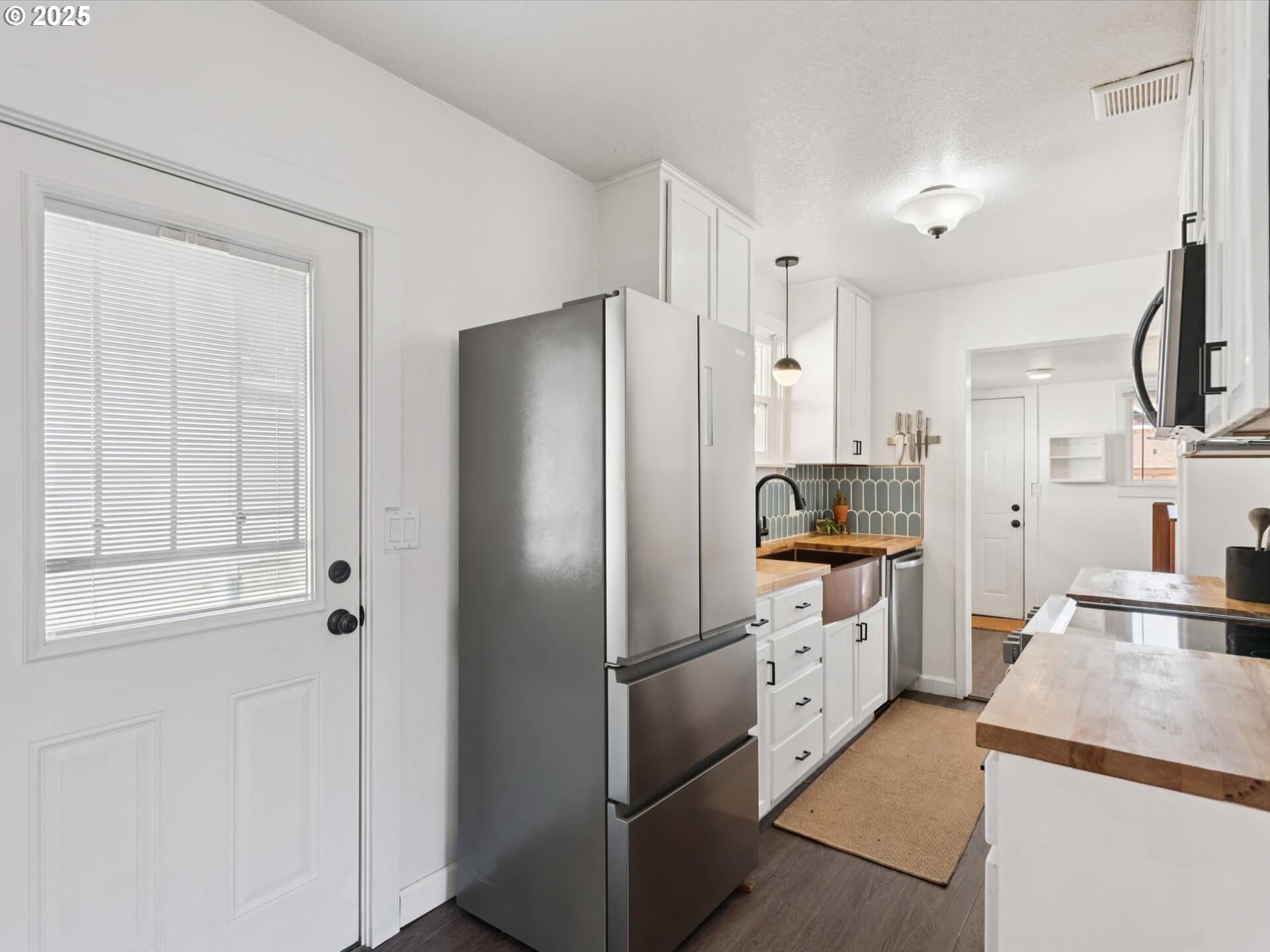 Roseway Bungalow nails the balance of vintage charm and modern style. Step onto a welcoming front porch and into a bright, open space with sleek engineered hardwoods and fresh designer finishes.A re-imagined kitchen brings all the cool— butcher block counters, apron sink, bold tile backsplash, and stainless appliances. Quartz counters and statement wallpaper make the bathroom pop, while a spacious primary bedroom offers double closets and calm vibes.Downstairs, a fully finished flex space doubles as a family room, guest suite, or home office. Out back, enjoy raised garden beds, lawn space to play, and a cozy spot for weekend hangs. Bonus: mudroom, great storage, and a detached garage.All set in one of Portland’s most-loved neighborhoods—close to parks, local coffee spots, and everything that makes Roseway such a vibe. [Home Energy Score = 3. HES Report at https://rpt.greenbuildingregistry.com/hes/OR10203571]