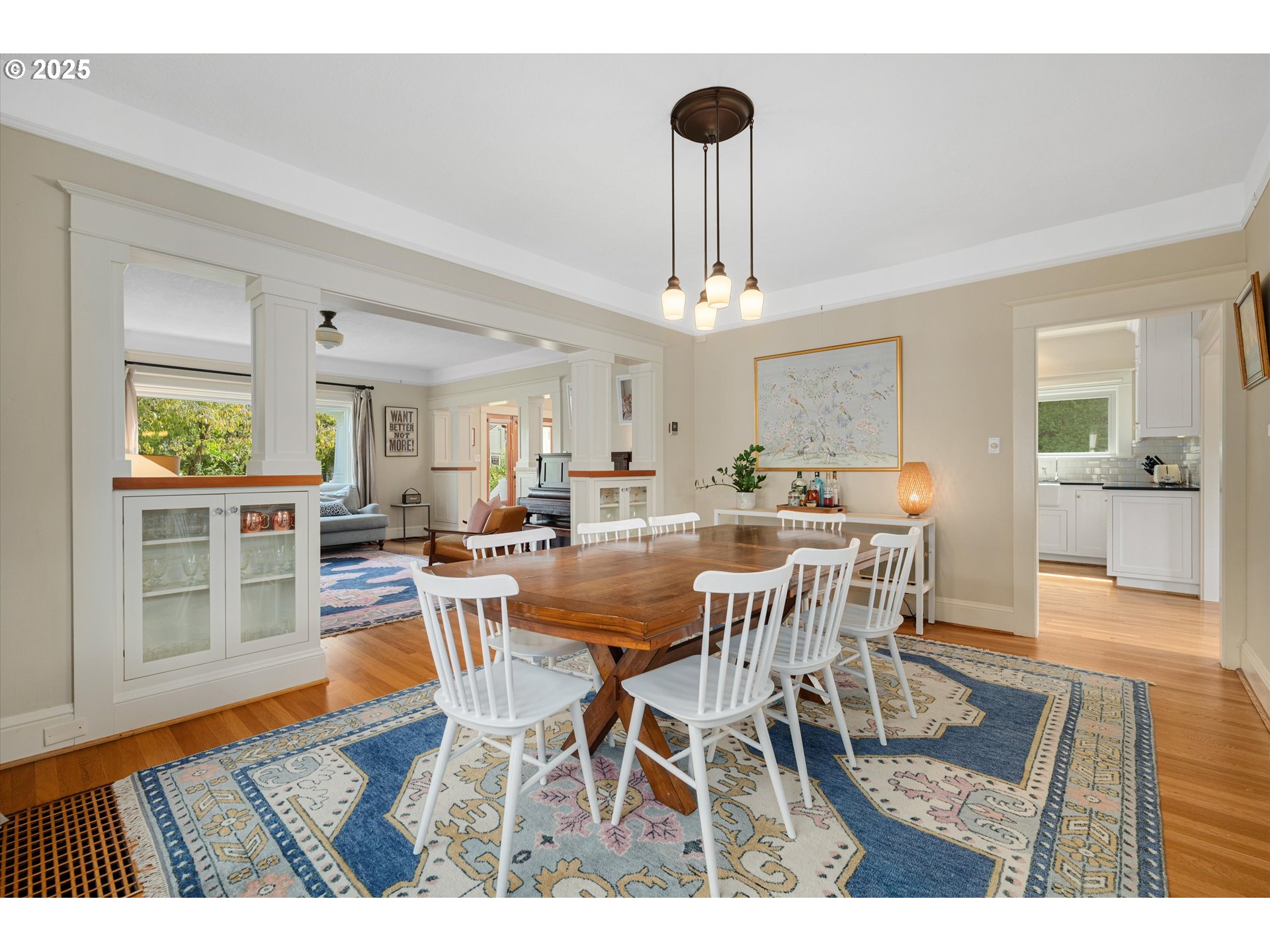 (503) 893-8874This 1915 Craftsman captures everything people love about one of Portland’s most treasured neighborhoods... Alameda... Timeless architecture, tree-lined streets, and a walkable community full of charm. Lovingly redone with a balance of historic character and modern comforts, this home greets you with a wide, covered front porch—an invitation to slow down, sip your morning coffee or relax with a glass of wine, and engage with the neighborhood. Step inside to a gracious formal entry that flows into expansive living and dining rooms where hardwood floors, rich millwork, and built-ins speak to the craftsmanship of a century past. A gas fireplace anchors the living room and the big picture windows provide beautiful natural light. The kitchen is both beautiful and functional, with ample counter space, new high-end appliances (Wolf Range, Smeg dishwasher etc), and a lovely custom made, clear fir banquette for smaller cozy meals overlooking the yard. Upstairs, the primary suite is truly well done, complete with more custom built-ins and a private balcony where you can unwind beneath the trees. With five bedrooms and three and a half baths, there’s space for everyone—whether you’re hosting family and friends, working from home or you just enjoy sprawling out. The fully finished basement adds incredible versatility: a guest suite, media room, or hangout space ready for game nights and movie marathons. Out back, a private yard invites you to entertain, garden, or simply relax on long summer evenings. And when you’re ready to step out, you’ll love being just blocks from Alameda ridge, hot spots like Lucca, Whole Foods AND New Seasons, 10 rated schools and fun neighborhood hubs like Alberta Arts and Beaumont. Updates include: New Andersen windows through-out, top of the line Daiken heat pump, hospital-grade HVAC air filtration system, Vesta tankless water heater and much more! This is more than a house, it’s a lifestyle! [Home Energy Score = 4. HES Report at https://rpt.greenbuildingregistry.com/hes/OR10188046]