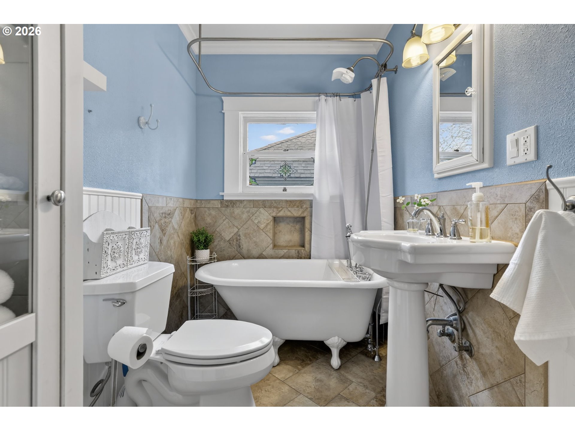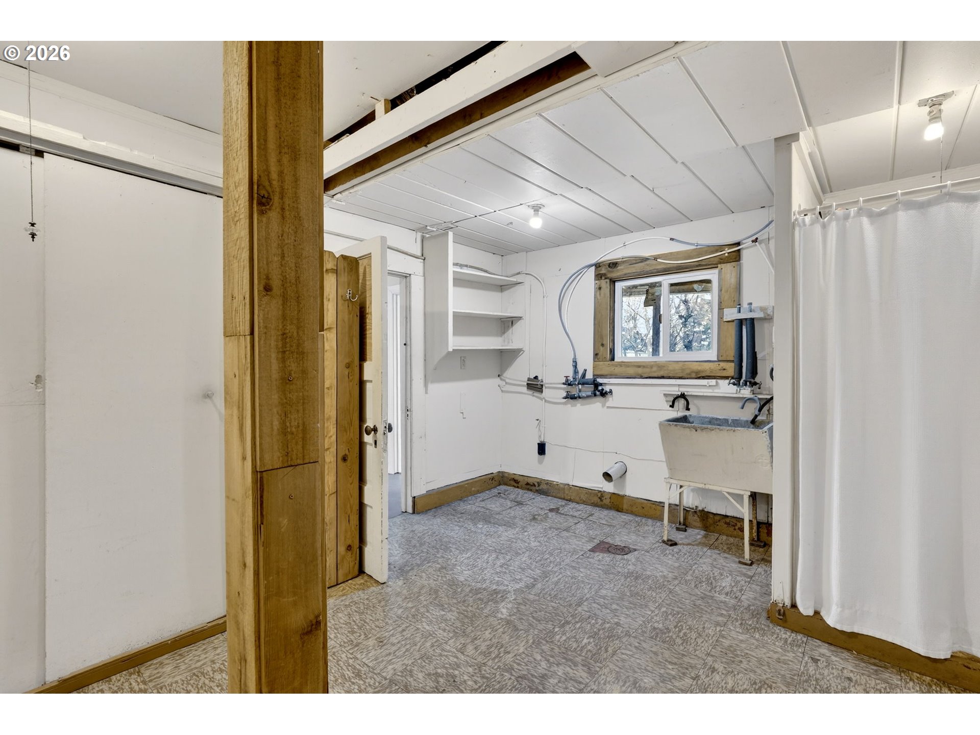 Fabulous location in the charming historic Southeast neighborhood of Gresham! Within close proximity to schools, shopping, dining, parks, historic downtown Gresham, and commuter routes. One of a kind layout with two bedrooms, one full bath (w/heated floors) and pristine retro kitchen in the front of the house. A breezeway from the kitchen to the back of the house connects the laundry, shop access and a third bedroom with ensuite full bath in the back of the house. This may be the perfect setup for a teenager wanting their own space, for multi-generational living, or for an Airbnb in the back bedroom suite with an exterior entrance to generate additional income (buyer to conduct their own due diligence). The yard is fenced with a covered back patio and 15x9 shed.
