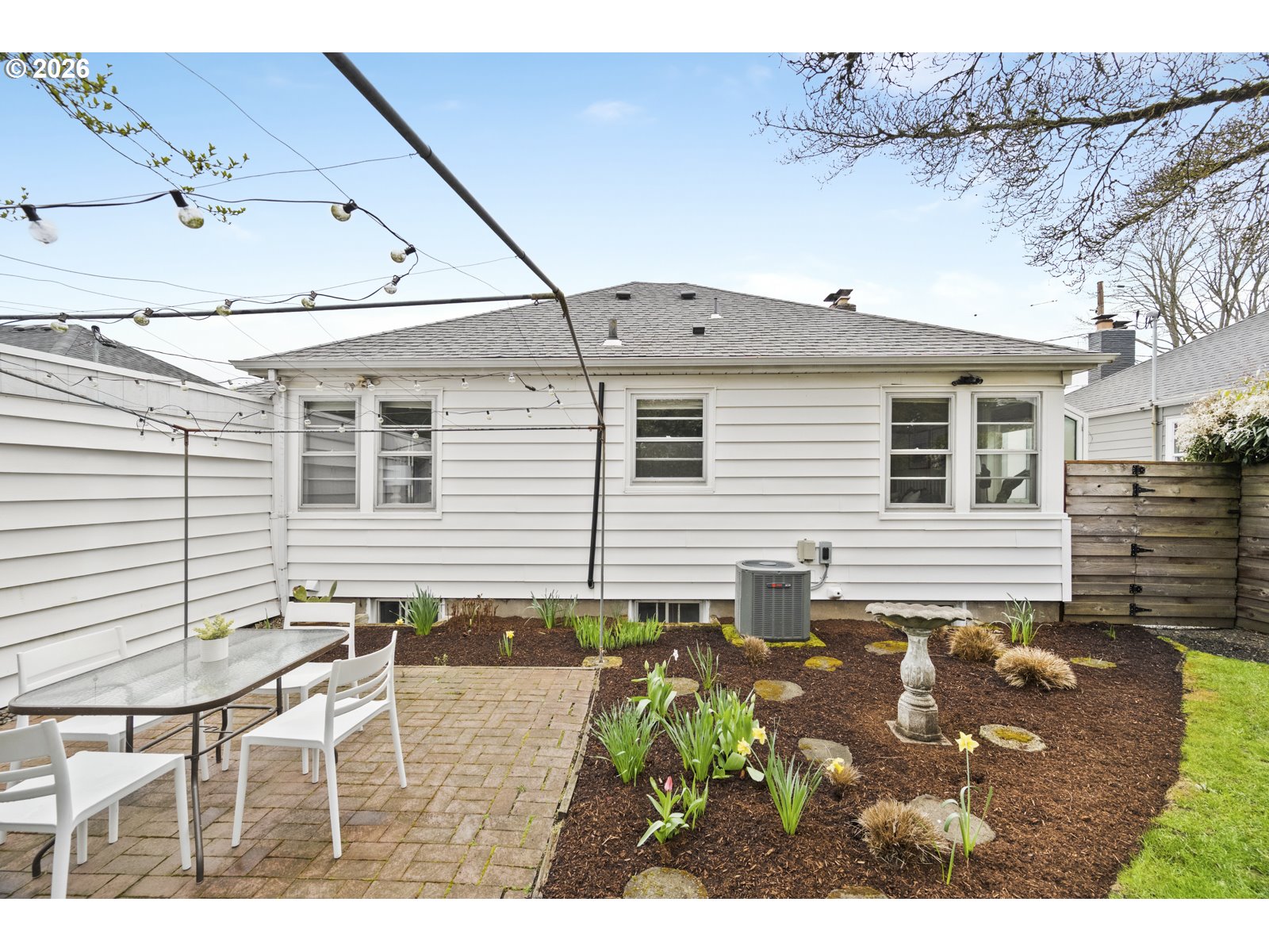 Set on a quiet, tucked-away street in the heart of the Alberta Arts neighborhood, this 1940s charmer blends timeless character with thoughtful updates and beautiful natural light throughout. Inside, the home feels warm and welcoming, with coved ceilings, picture rail molding, hardwood floors, and a classic fireplace. Large windows fill the space with light, while the open living, dining, and kitchen areas make everyday living and entertaining feel easy and connected. Recent updated include fresh interior paint, beautifully refinished oak floors, a new high-efficiency furnace and A/C, and updated kitchen appliances. Flexible spaces throughout offer endless possibilities. Large “room” behind the extra-deep garage has been used as an art studio with beautiful north-facing light and could also serve as a workshop, gym, home office, or additional parking. The full basement is bright, dry, and comfortable year-round, offering great potential for future expansion- more bedrooms, a home office, creative space, or ADU. The backyard is a true sanctuary—private, peaceful, and surrounded by mature landscaping. Heritage roses, blooming camellias, and a stunning native dogwood create a lush setting, while garden beds offer space to grow flowers and vegetables. A sweet garden shed and Japanese-style fence add to the charm. Step out your front door and you’re just moments from Alberta, 42nd, New Seasons, Pizza Jerk, Oakshire Brewing, and neighborhood parks. All of this on a peaceful non-through street with a strong sense of community, an annual block party, and a beloved little free library out front. Welcome home.
