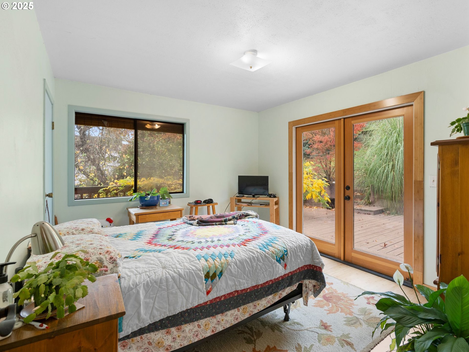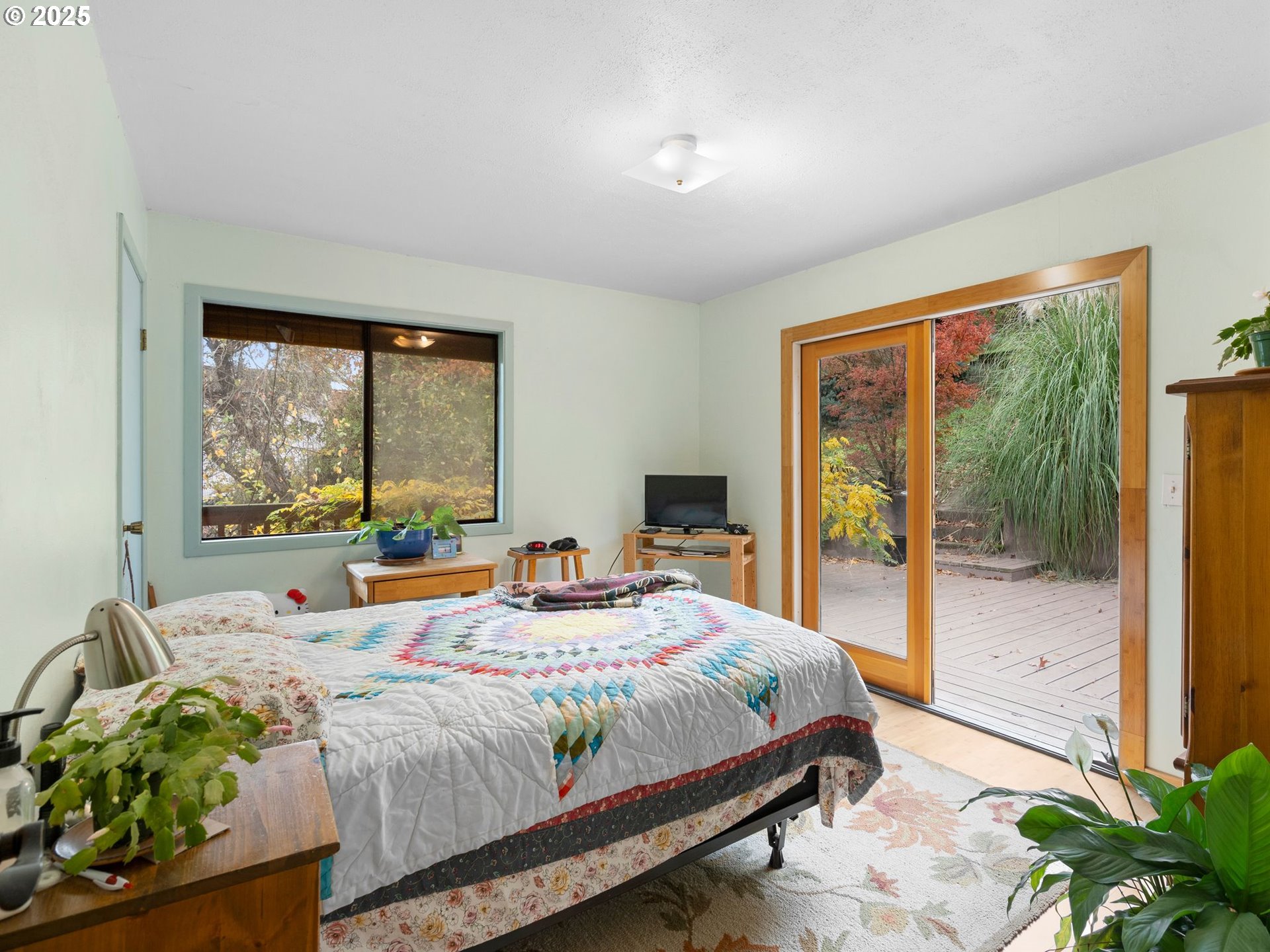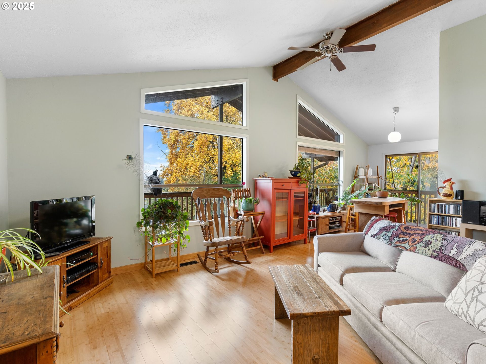 This charming two-bedroom home situated on a lot and a half invites you into a world where nature and comfort blend with ease. Vaulted ceilings and a warm wood beam create an airy sense of space, while bamboo flooring adds an organic, modern touch. Nearly every room offers a way to step outside: enjoy morning coffee on the freshly-stained wraparound deck. Life flows easily between indoors and out. Wild peacocks are known to wander by, adding color and personality to the landscape, and the treetop views offer a calming backdrop year-round. The lower level provides even more space to grow with the flexibility to finish out a third bedroom. There is plenty of space to create or retreat, with its own private entry to the outdoors. Updates include a new dishwasher, serviced HVAC (2025), newer bamboo flooring, and newer carpet, and updated bathroom so you can move right in and enjoy. A lovely retreat feel, yet close to everyday conveniences, this is a home that invites you to slow down, breathe deeply, and stay awhile.