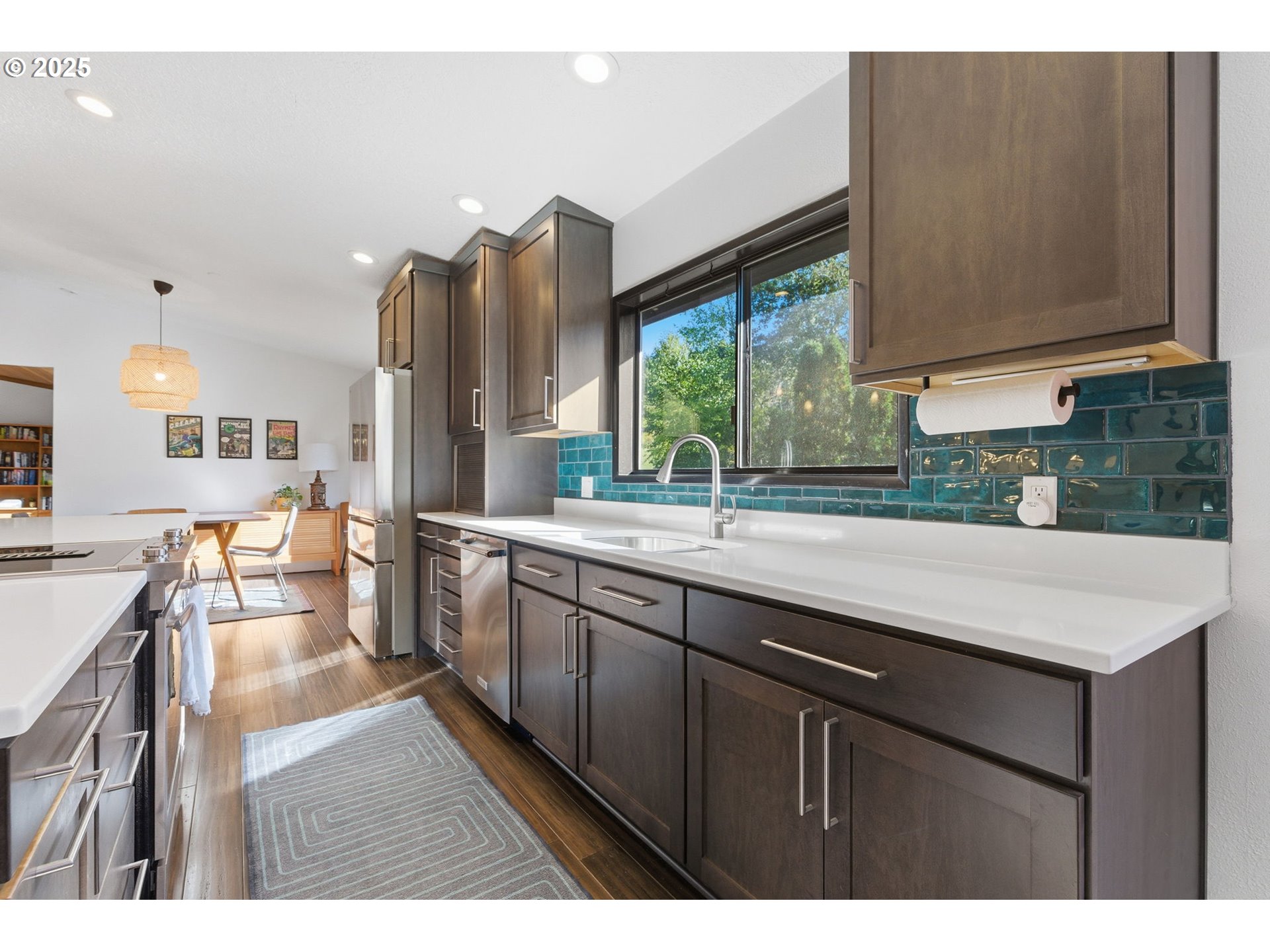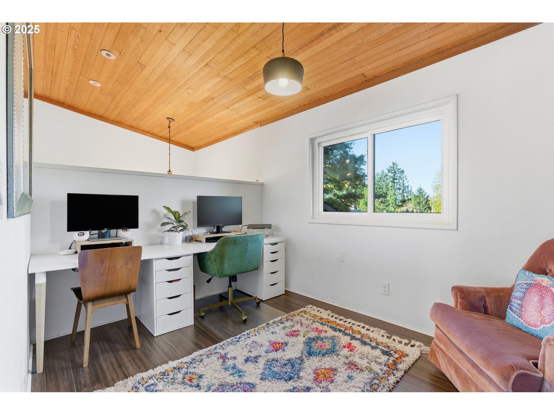 (503) 893-8874This beautiful NW contemporary home boasts updates galore and a great floor plan with ample living space. The upper level of this home has vaulted ceilings with beautiful wood detailing and living space reaching the distance of the home, from the open plan kitchen to the cozy living room with wood-burning fireplace, the home office and family room. This home is ideal for entertaining. The living space spills out on to two newly resurfaced decks, upper and lower level, that are ideally situated to take in the large yard, which backs to Dickinson Park. Upper deck has a natural gas hookup for a grill. Three bedrooms (and a bonus room/non-conforming 4th bedroom) are all on the lower level in a daylight basement which also orients toward the expansive backyard. They are spacious and light-filled, and the primary suite offers its own access to the back deck. The home has a remodeled kitchen, durable engineered bamboo floors throughout, a dedicated laundry room, updated electrical panel, new gas water heater (2024) and HVAC (2022). Located on a cul-de-sac in a wonderful neighborhood! [Home Energy Score = 1. HES Report at https://rpt.greenbuildingregistry.com/hes/OR10192331]