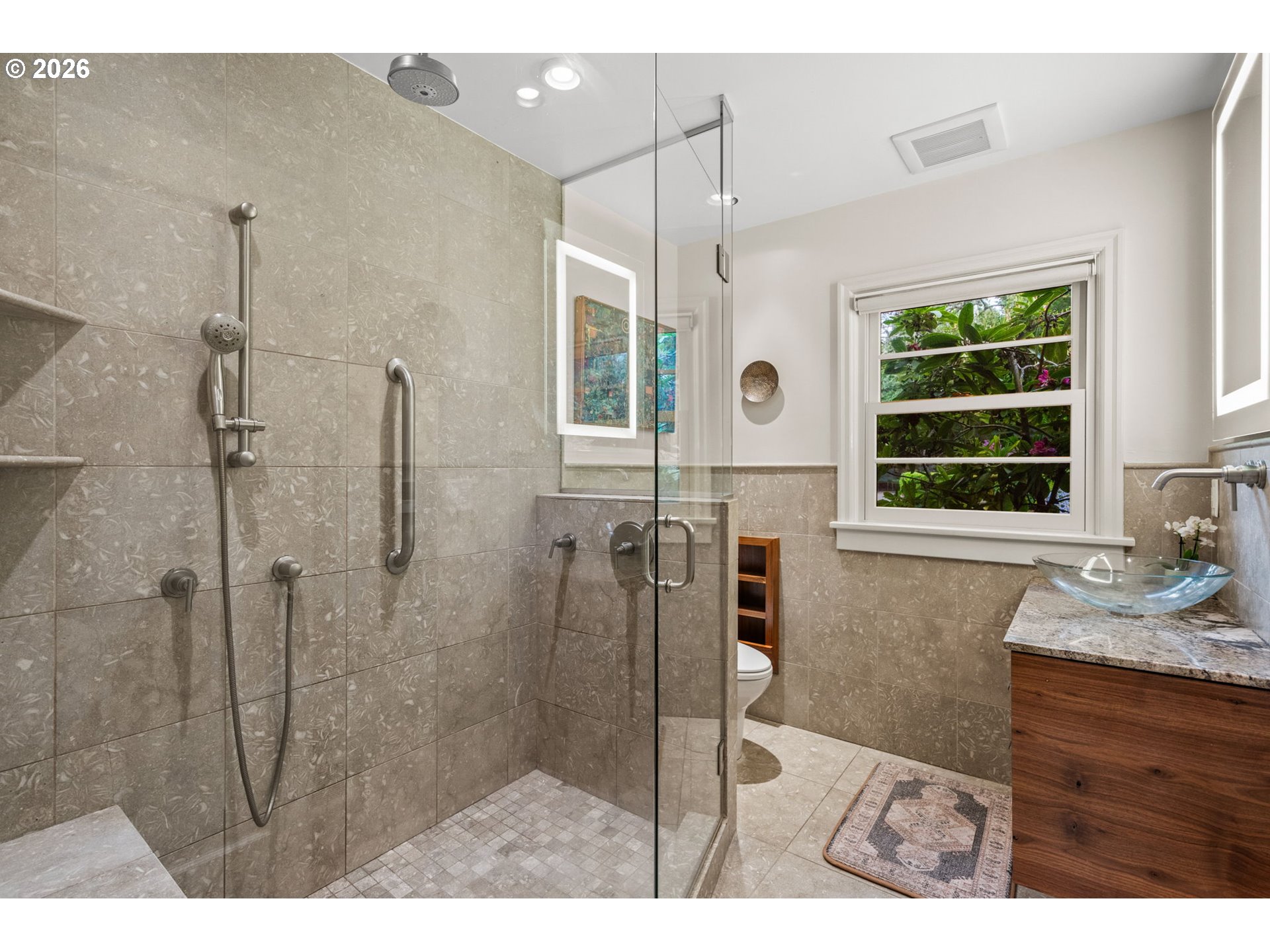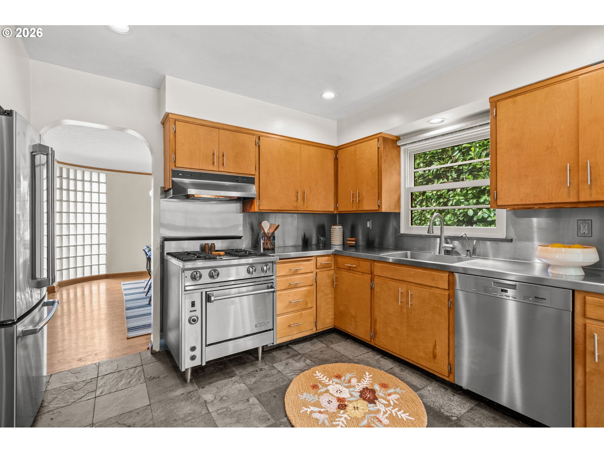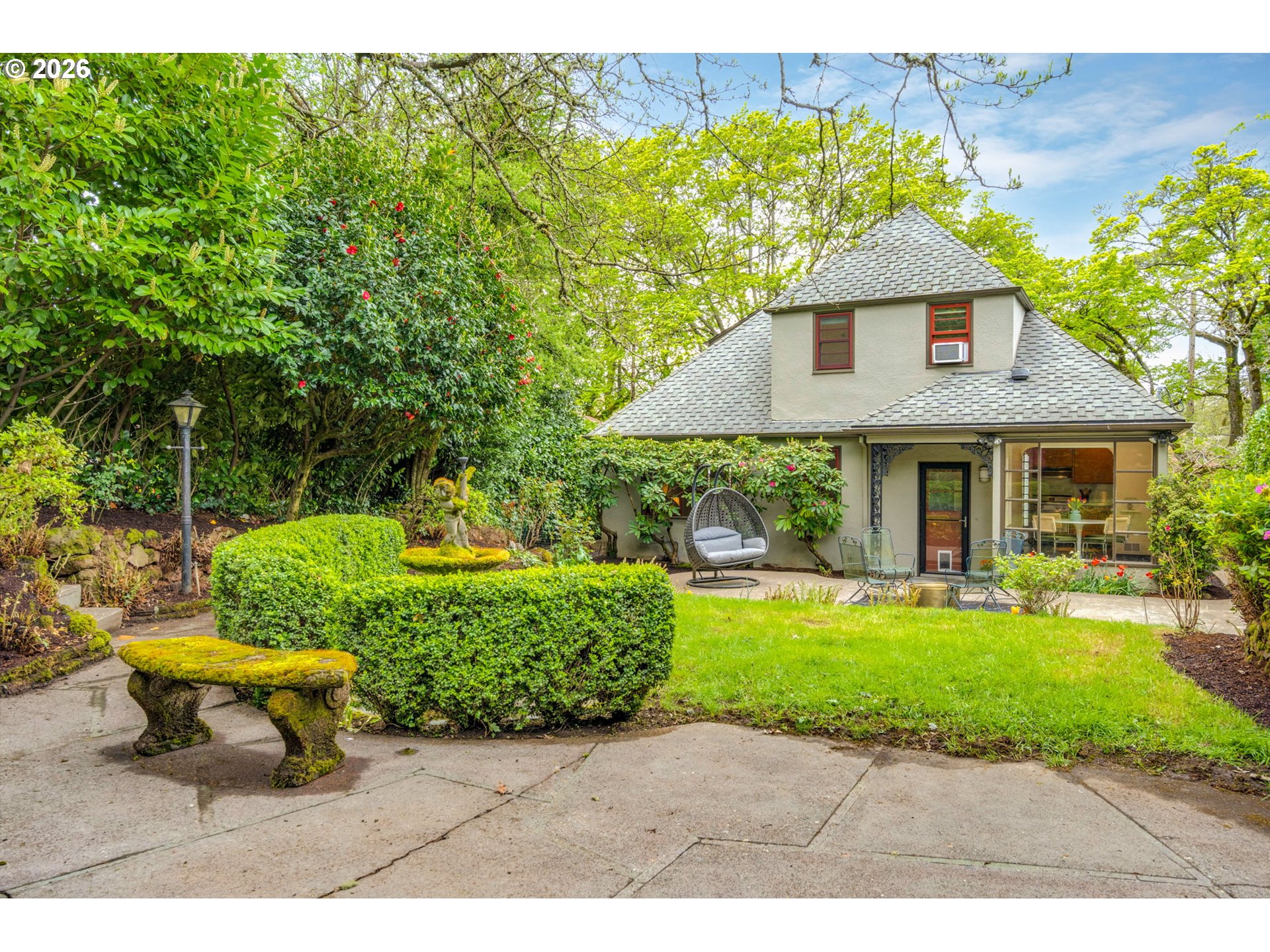 **Open Saturday 4/18 from 11-1 and Saturday 4/19 from 1-3** This stylish, striking Eastmoreland midcentury is full of character and thoughtful updates. It looks ahead to peak MCM aesthetic values with a curved glass wall and a breathtaking morning room with walls of windows to bring the outdoors in. It gives a delightful wink to the past with a gorgeous lower-level party room/family room with copper and nailed leather accents--and a service bar that can be swung around and hidden, Prohibition-style. Everything in between is exquisitely designed for livability and beauty: lovely formal living and dining room, sleek kitchen with slate floors and stainless steel, two large bedrooms on the main level plus a gorgeous limestone bath with spacious walk-in shower. The upstairs is a private suite with skylights, a built-in window bench, and luxe limestone bath with soaking tub. The extra-deep, secluded lot is your own private park with lush, mature landscaping. Need separate quarters? The lower level has a full bath and easy entrance from the garage, and could easily be modified into an apartment. Practical updates include a Presidential roof; updated water, sewer, and interior plumbing; double-glazed tilt-pac windows; 200 amp electrical panel; and fully rebuilt front steps and driveway apron. With easy access to the Eastmoreland golf course, Crystal Springs Rhododendron Garden, Reed College, the MAX Orange Line, and shopping/dining on SE Woodstock and in Sellwood/Moreland, this gem of a house is ideally situated for every lifestyle. Don't miss this unique opportunity in Southeast Portland's premier destination neighborhood. [Home Energy Score = 1. HES Report at https://rpt.greenbuildingregistry.com/hes/OR10194816]