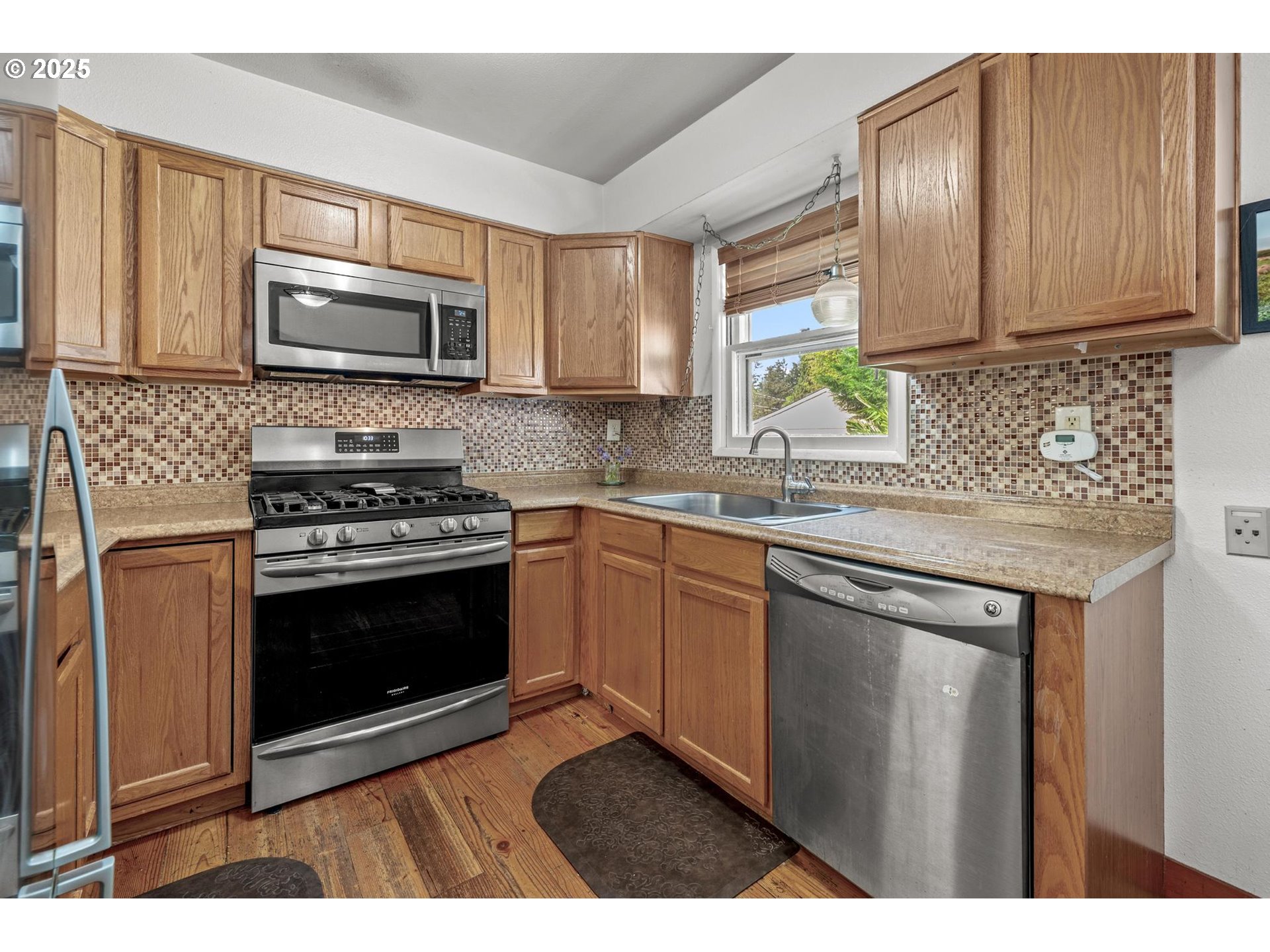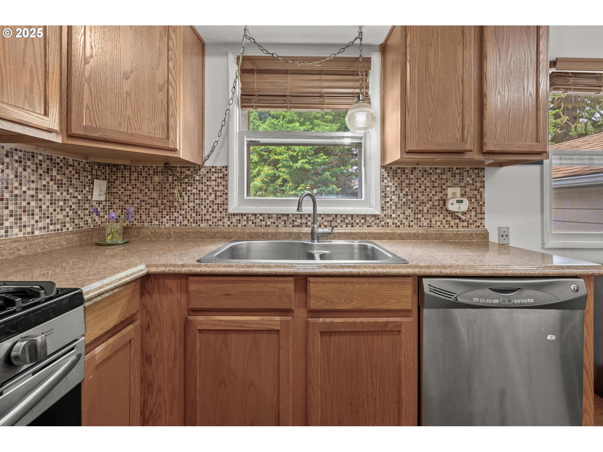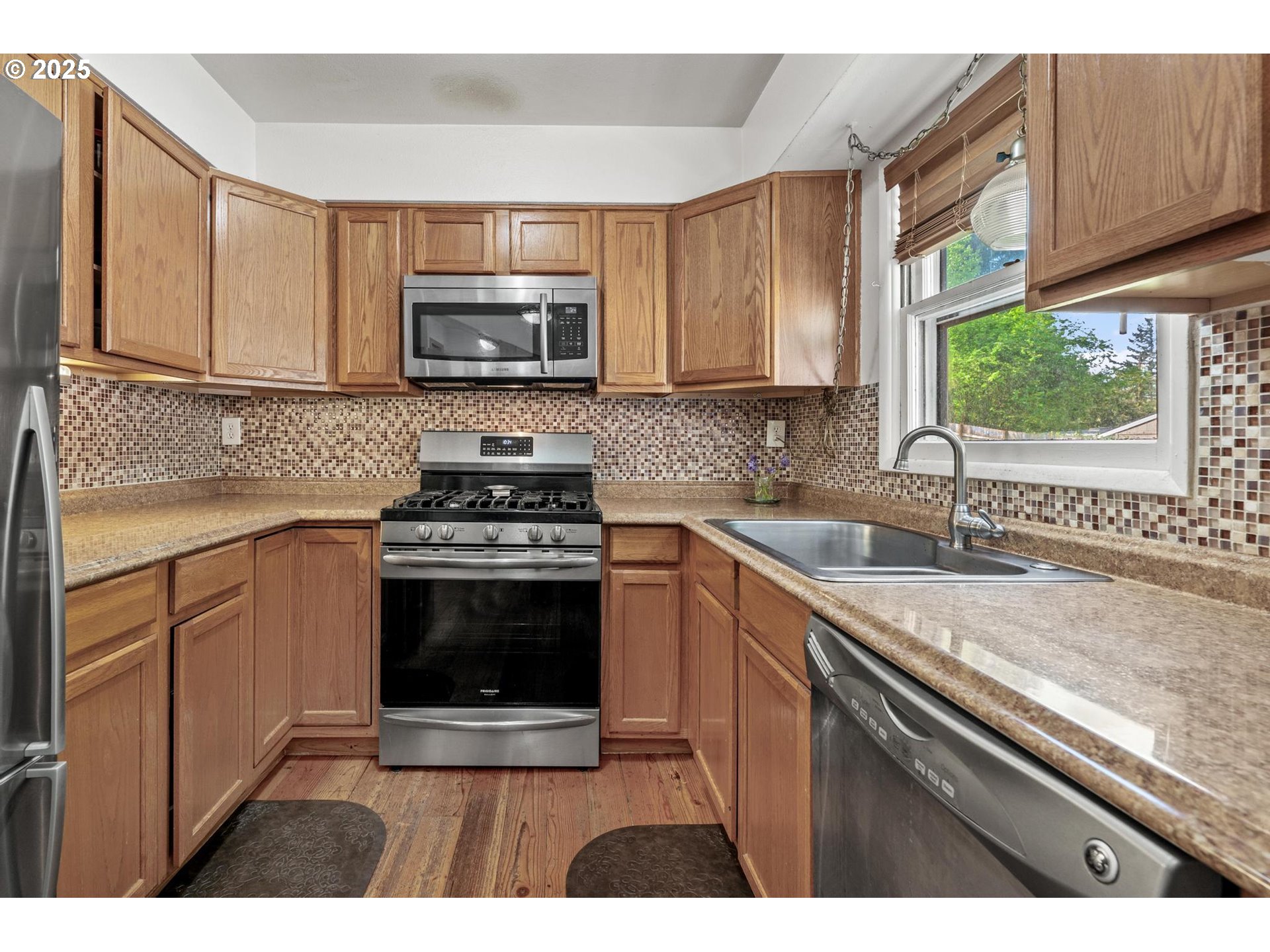 Motivated Seller!! Let's make a deal. This charming 3 bedroom 2 bath bungalow is located on a quiet street. The bay window offers natural light in the cozy living room with fir floors and 2 year old gas fireplace heating the entire first floor. Stainless steel appliances and tiled backsplash with eating area in the efficiency kitchen. Two bedrooms with fir floors are on this level with a clawfoot tub and pedestal sink keeping with the style of the home. The primary bedroom which is a few steps down from the main floor features a vaulted wood ceiling and fan that opens to the private sunny patio. A tiled shower bath is adjacent. The convenient laundry area with tiled floor includes the washer and dryer. A one car garage is attached. The private patio with southern exposure is perfect for dining with garden area and yard. 8 year old roof. Water pipes replaced. New exterior paint and landscaping. Lot to south not included, taxes will adjust. Plenty of potential. Excellent location only minutes to Lewis and Clark College, OHSU, Downtown Portland and Lake Oswego. Shops and restaurants near. Don't miss this one! [Home Energy Score = 1. HES Report at https://rpt.greenbuildingregistry.com/hes/OR10237829]