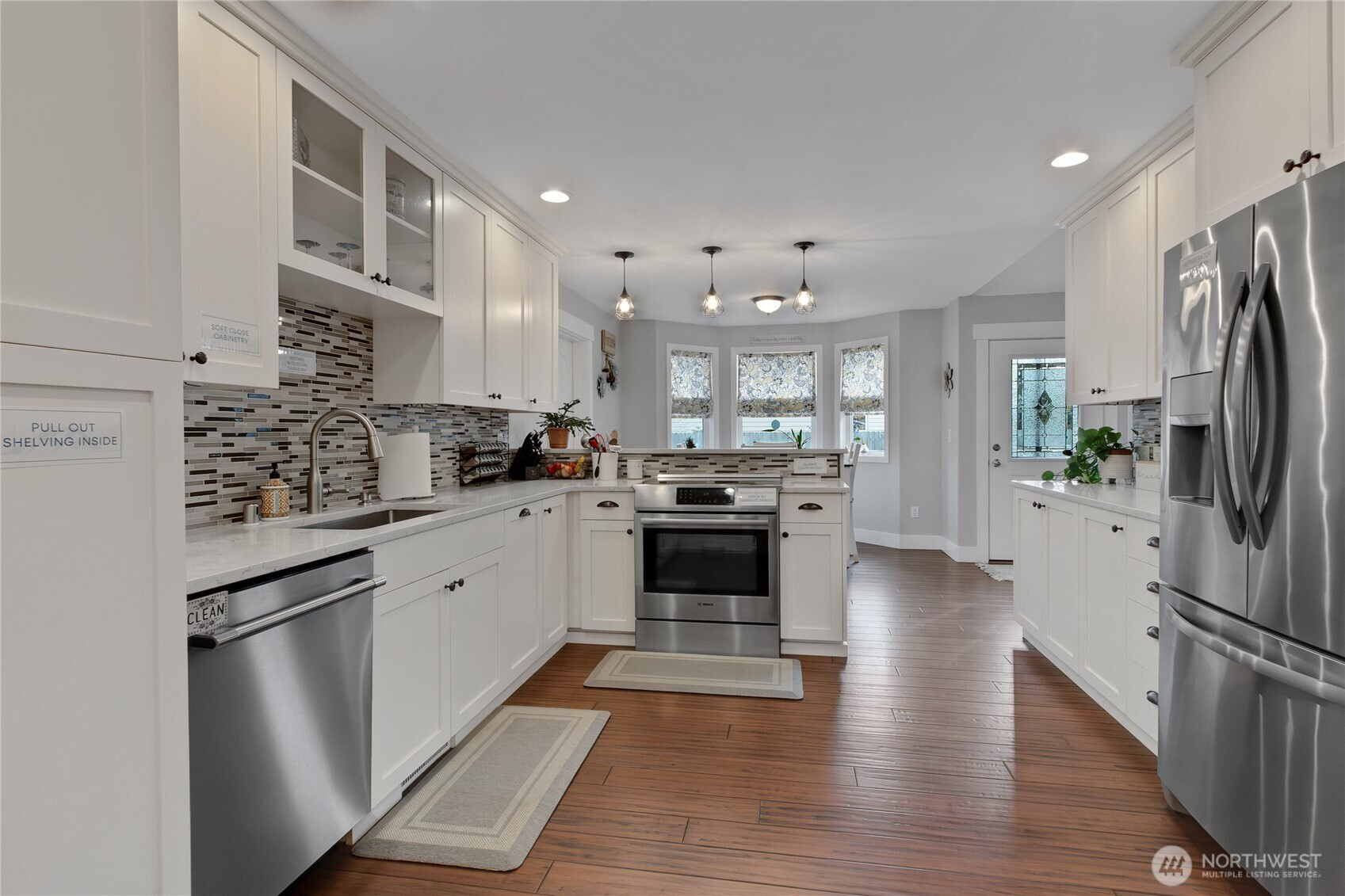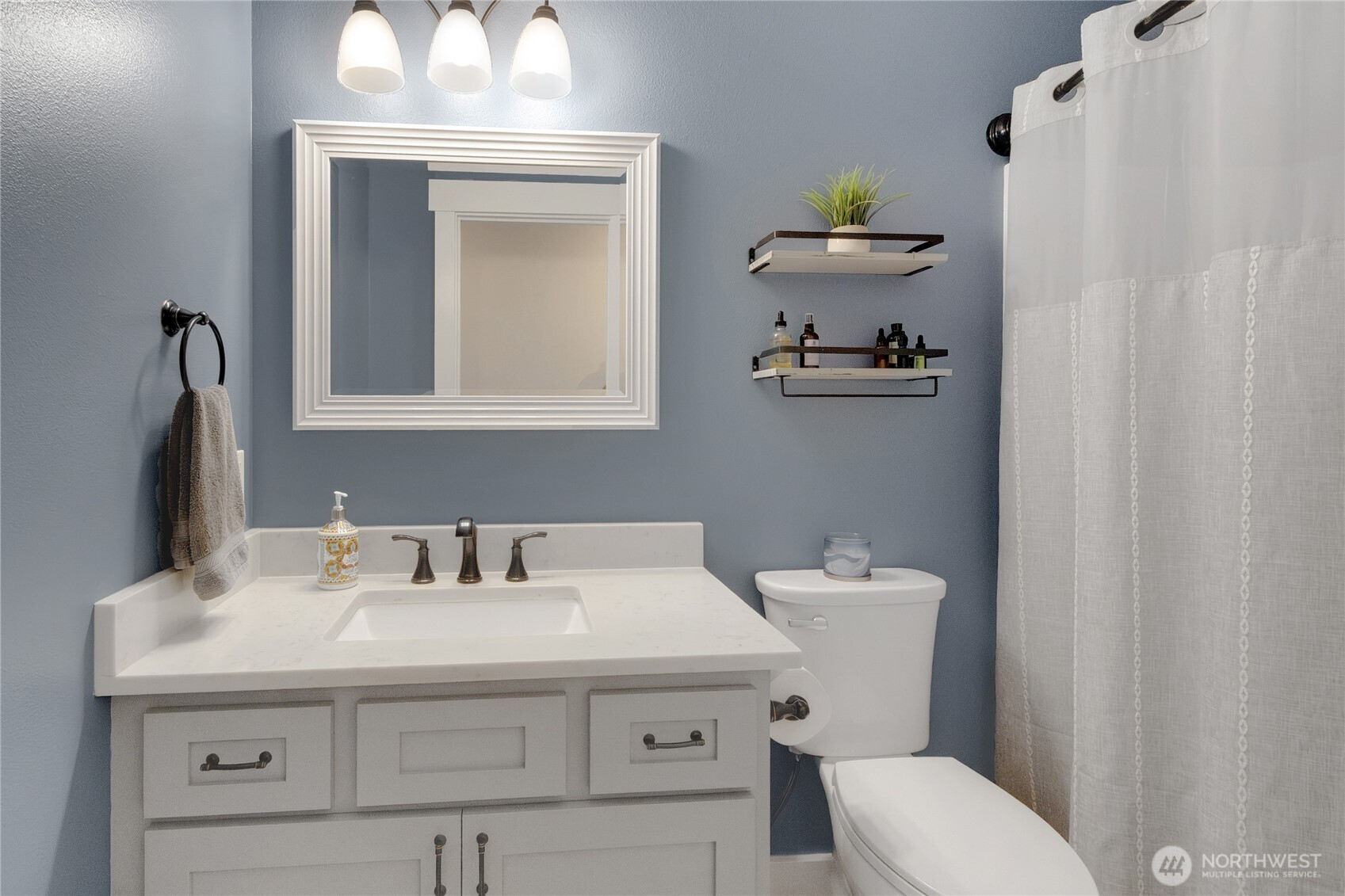 Beautiful updated 3 Bd, 3 bath home in a desirable Puyallup neighborhood and in the Sumner School district! This home features a newer roof, fresh interior and exterior paint, and bamboo flooring throughout most of the home. Enjoy an open, bright floor plan with custom kitchen cabinetry, quartz countertops, and stainless steel appliances that stay. Primary Bathroom has been completely renovated with walk in shower and modern finishes. Stay comfortable year-round with A/C. The spacious bonus room offers endless possibilities-perfect as a flex space or potential ADU or 2nd primary room. The septic was build for a 4 bedroom home. The back yard offers a fire pit area patio with Mt. Rainier View and garden space. Move-in ready and full of charm.