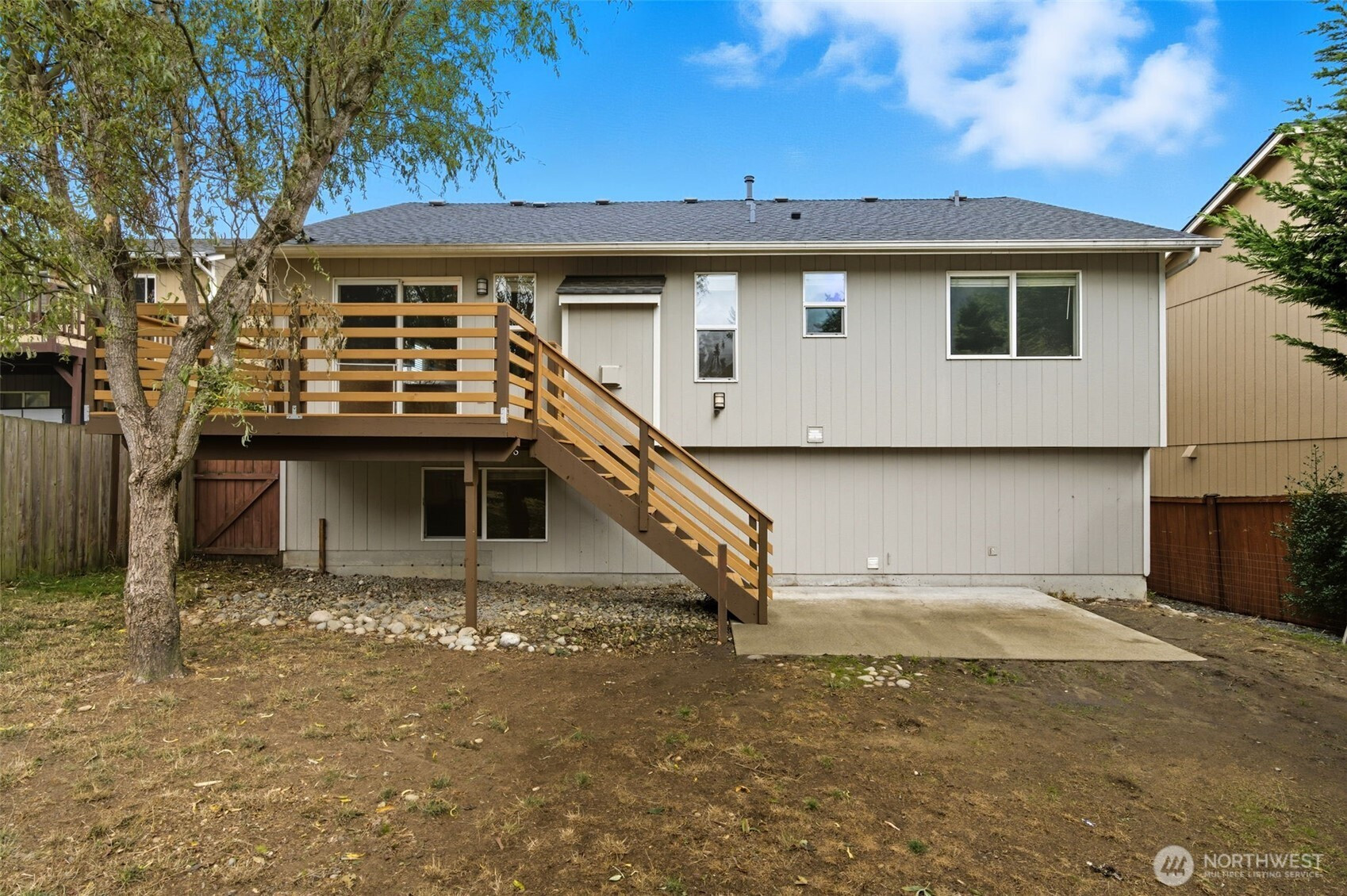 Wonderfully kept home in a highly desirable area. Don't miss out on this one! This home has 3 well sized bedrooms on the upper floor, two full bathrooms, and an open and flowing floor plan through the living room, kitchen, and dining rooms. Orientation of the home with large windows keeps the main spaces bright and airy with lots of natural light. Enjoy the deck off the upper floor when hosting or entertaining. An additional bedroom, full bathroom and large family room downstairs keep the options for house hacking available! Fully fenced yard with plenty of space to add a garden or play structure. ONLY eight minutes to the South Hill mall and all that Puyallup has to offer. Quick freeway access for commuting.