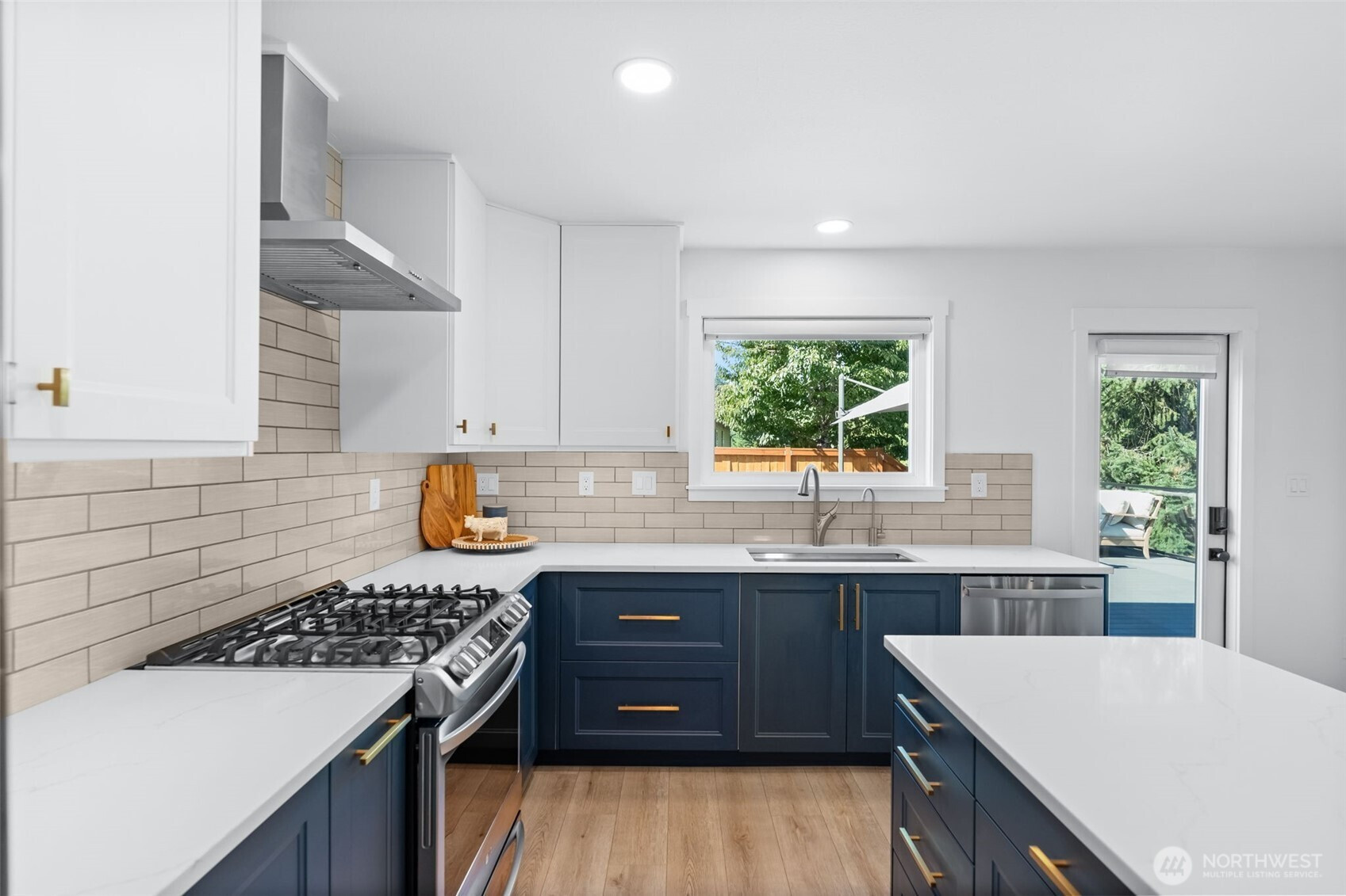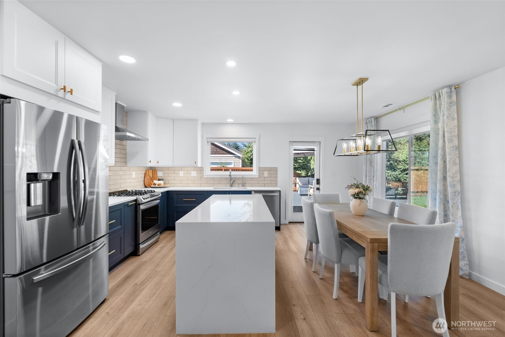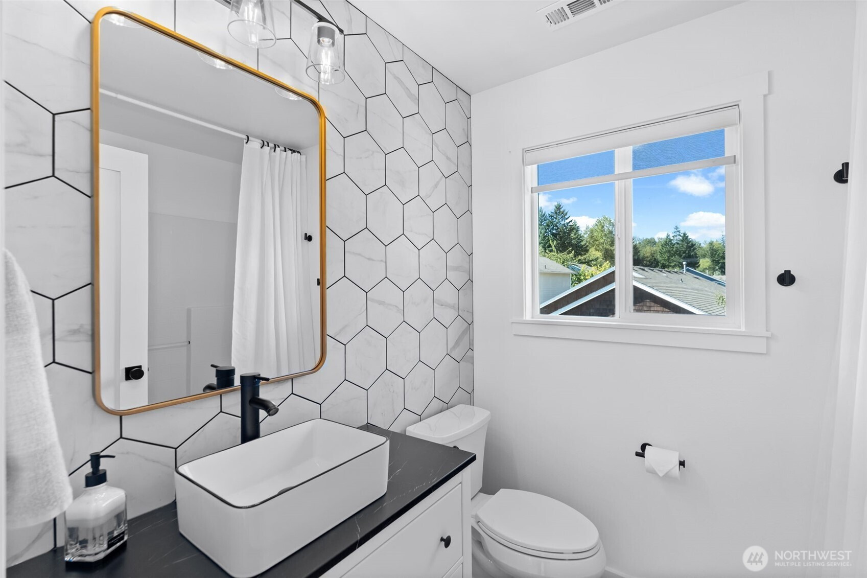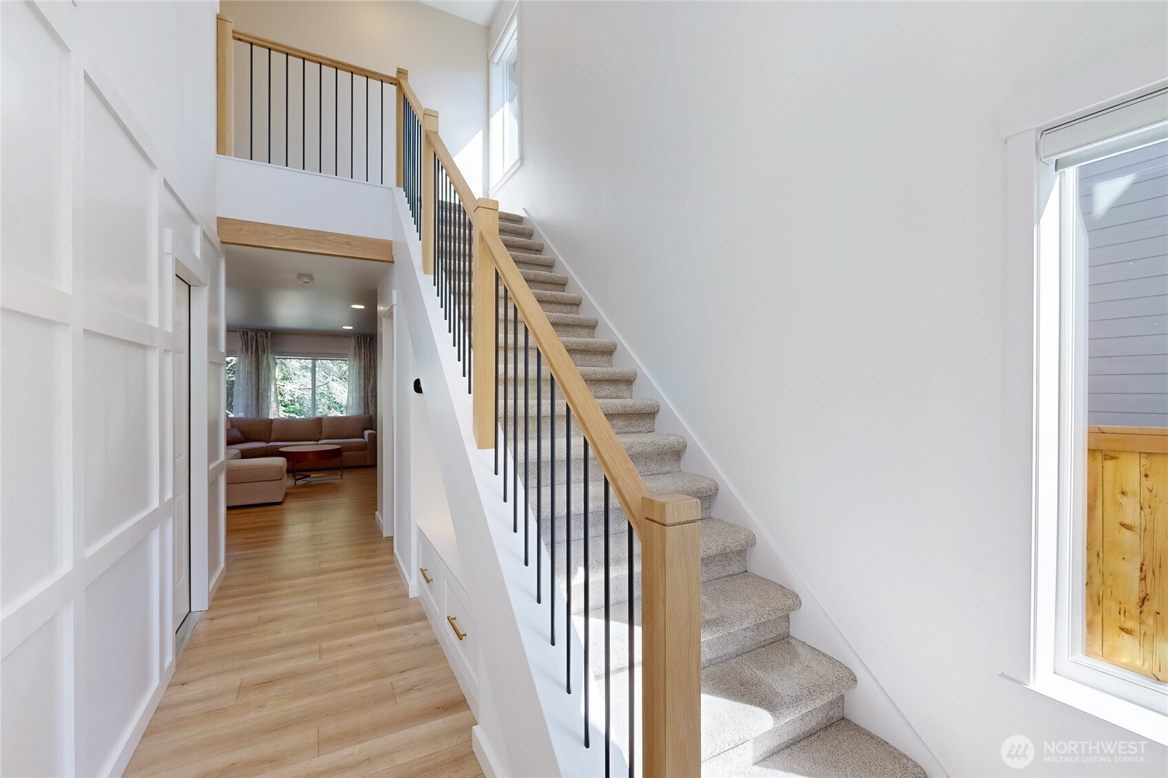 Meticulously renovated home where luxury meets functionality. Reimagined open floor plan showcases designer touches throughout—from the custom white oak staircase to the Gourmet kitchen w/ quartz countertops, waterfall island & stainless appliances. Comfortable living awaits in the primary suite w/ elegant lighting, designer wall treatment, & sophisticated en-suite bathroom. Secondary bedrooms boast custom finishes & organized closet systems. New carpet & luxury vinyl plank flooring throughout. This recently updated designer home boasts deluxe storage solutions that maximize every inch. The expansive Trex deck and glass railing is an entertainers dream. New roof, heat pump & fully-fenced yard make this a one-of-a-kind turnkey offering!