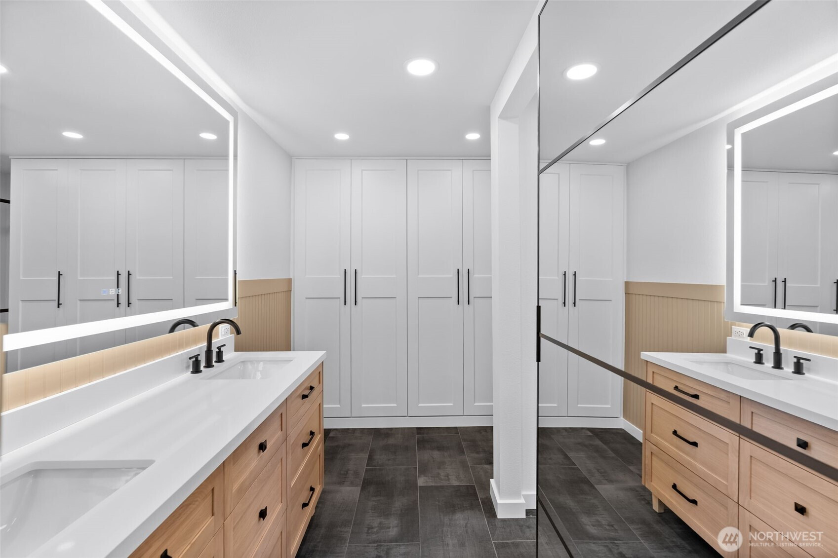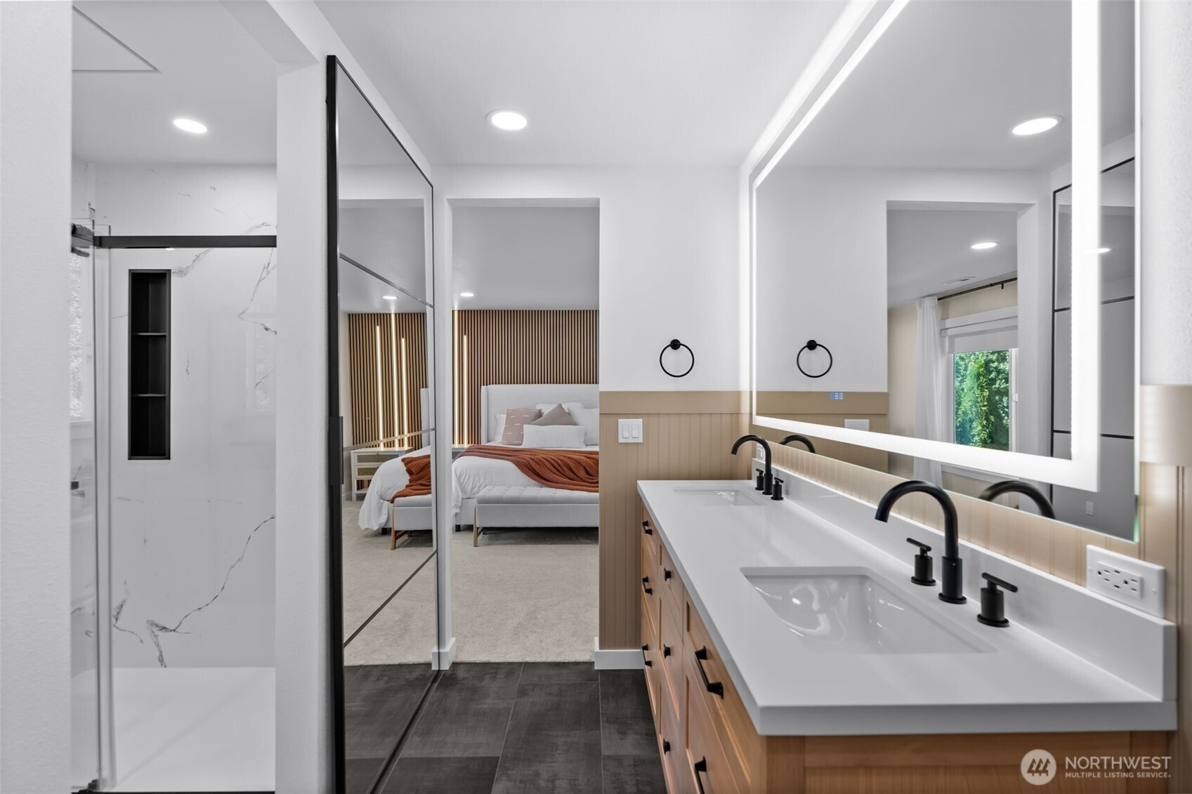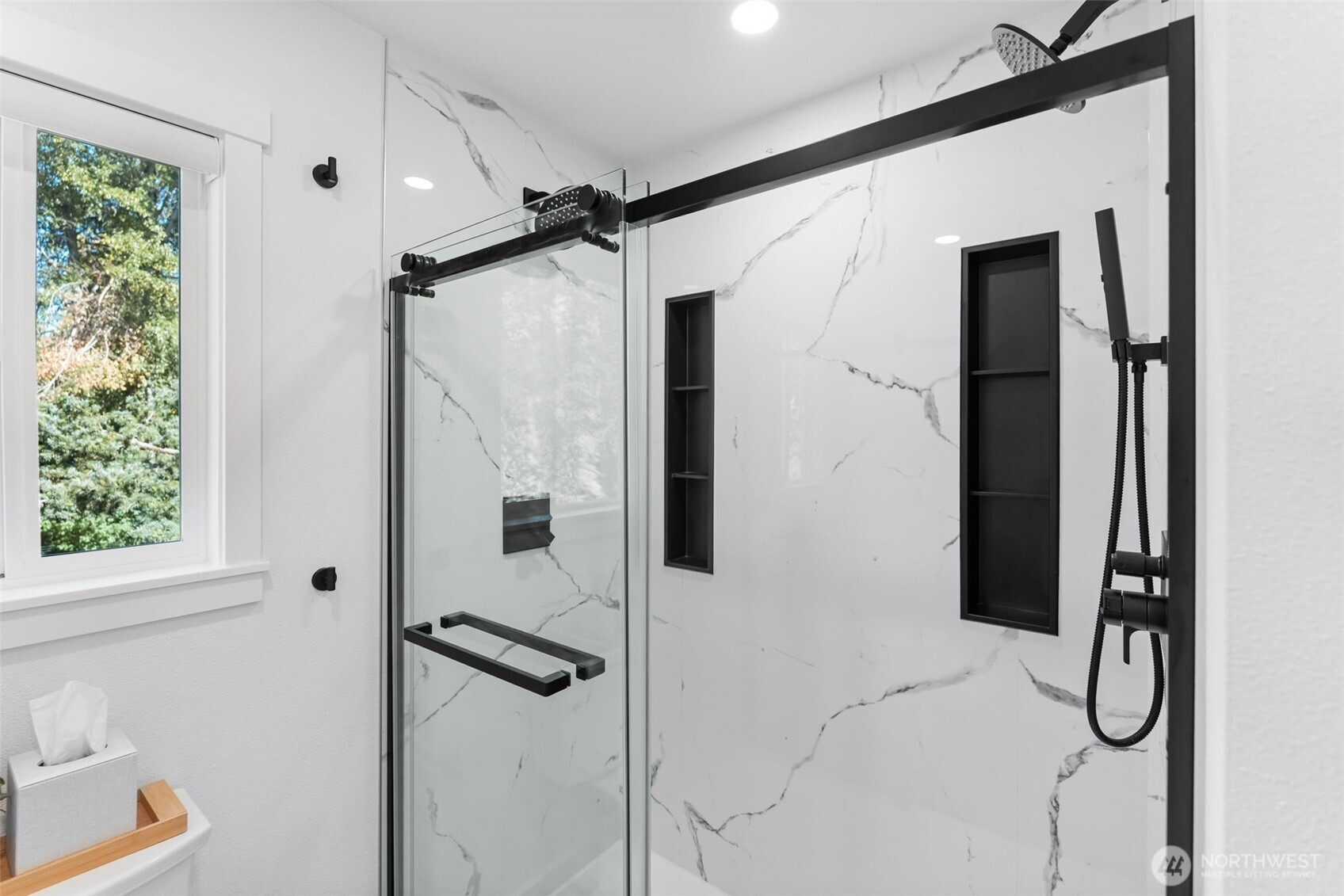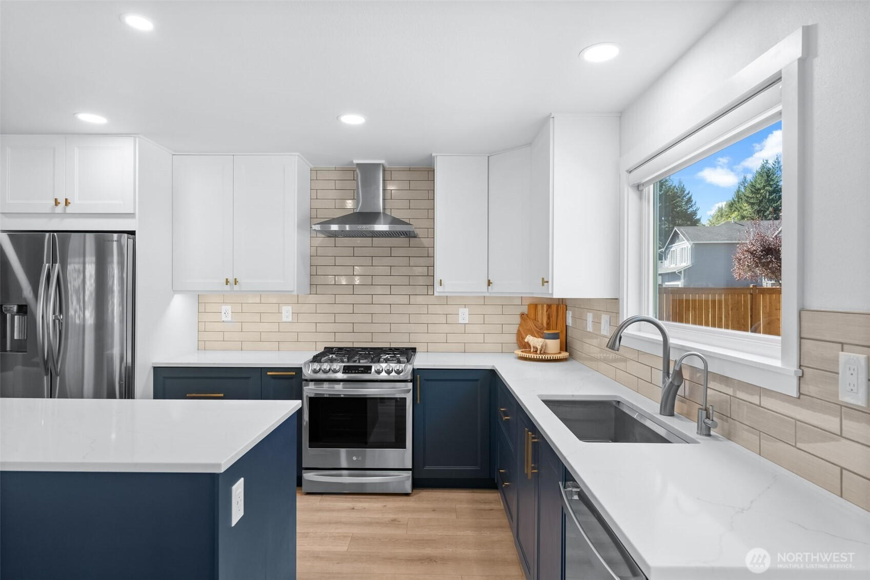 Meticulously renovated home where luxury meets functionality. Reimagined open floor plan showcases designer touches throughout—from the custom white oak staircase to the Gourmet kitchen w/ quartz countertops, waterfall island & stainless appliances. Comfortable living awaits in the primary suite w/ elegant lighting, designer wall treatment, & sophisticated en-suite bathroom. Secondary bedrooms boast custom finishes & organized closet systems. New carpet & luxury vinyl plank flooring throughout. This recently updated designer home boasts deluxe storage solutions that maximize every inch. The expansive Trex deck and glass railing is an entertainers dream. New roof, heat pump & fully-fenced yard make this a one-of-a-kind turnkey offering!