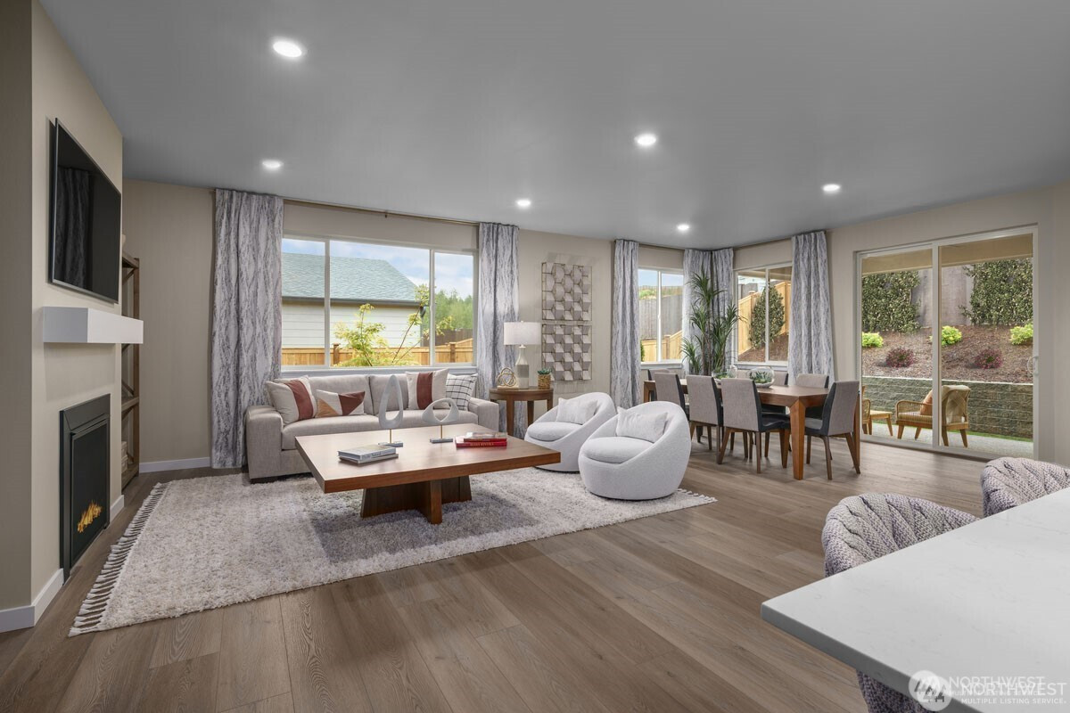 This model home has extensive upgrades! The exceptional design and craftsmanship in this rambler features the highly desired 1990 floor plan with 3 bedrooms, 2 baths, a large great room, and a versatile den, home office or 4th bedroom. The impressive 9-foot ceilings and wide entry lead to a spacious great room filled with natural light. A gourmet kitchen with generous island & walk-in pantry, open to the dining and living areas—ideal for entertaining. The covered patio invites relaxation and outdoor gatherings. The primary suite is thoughtfully designed with a large linen closet and elegant bath. Nestled in Liberty Ridge phase 1, this home offers scenic views and convenient proximity to shopping, dining, and Sunrise Community Park.