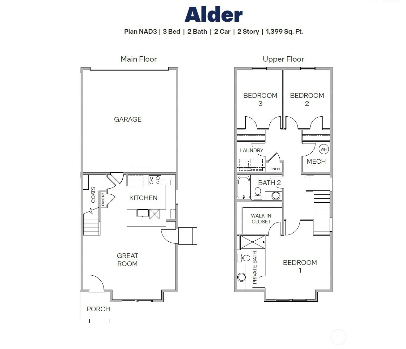 Discover the Alder at Glacier Pointe—1,399 sq ft of smart design featuring an alley-load 2-car garage that opens to a sun-filled great room, dining space and quartz-topped kitchen. Upstairs, a handy laundry, two secondary bedrooms and full bath face a private primary suite with walk-in closet. Live minutes from Bonney Lake schools and Tehaleh’s 40+ miles of trails, parks, dog park and Mount Rainier views. Built by America’s Home Builder with Smart Home technology and a 10-yr limited warranty. Buyer must register their broker on 1st visit including open houses.