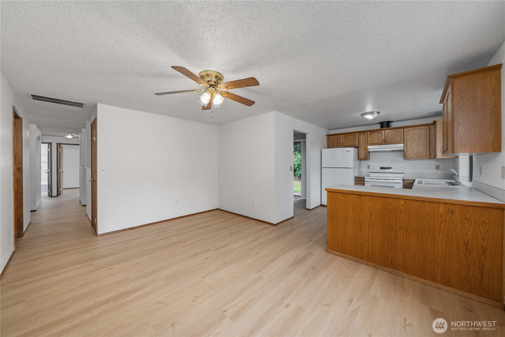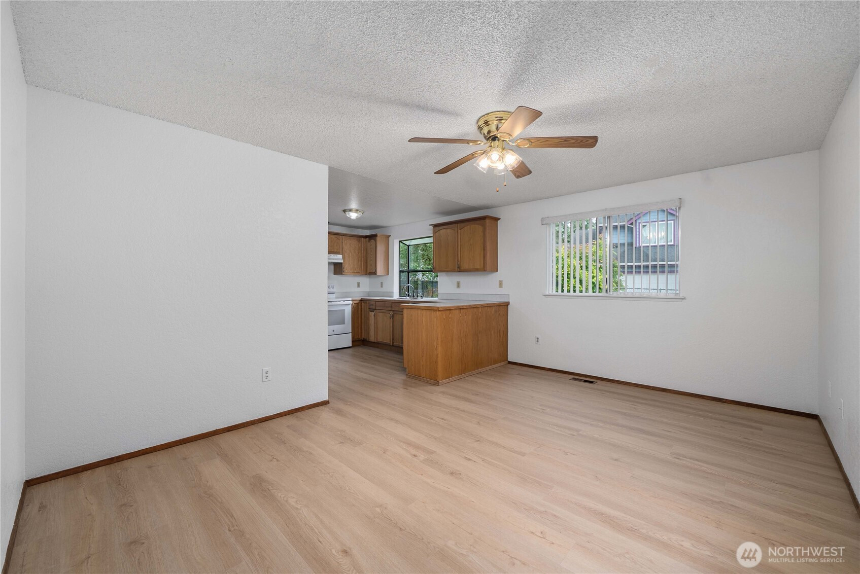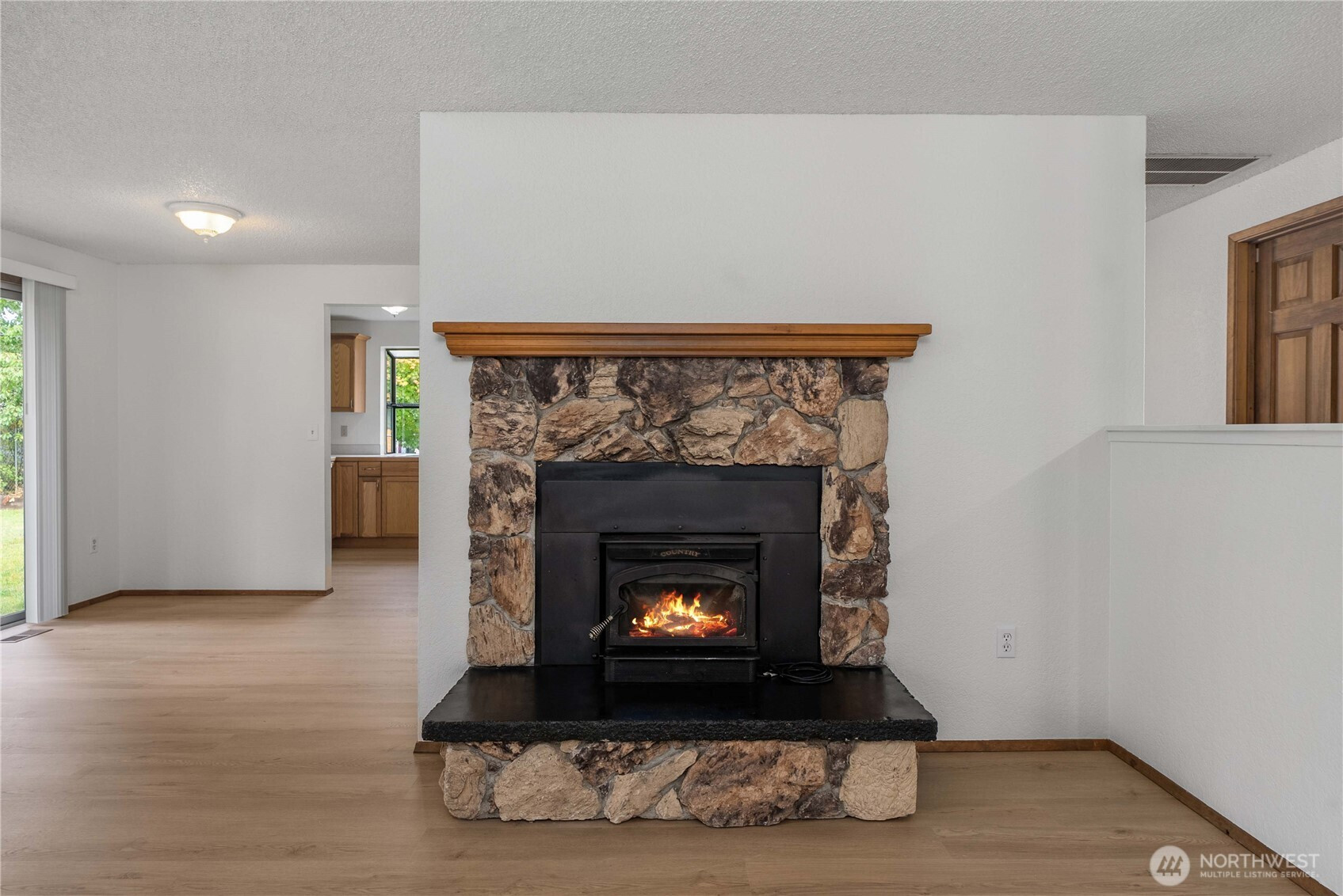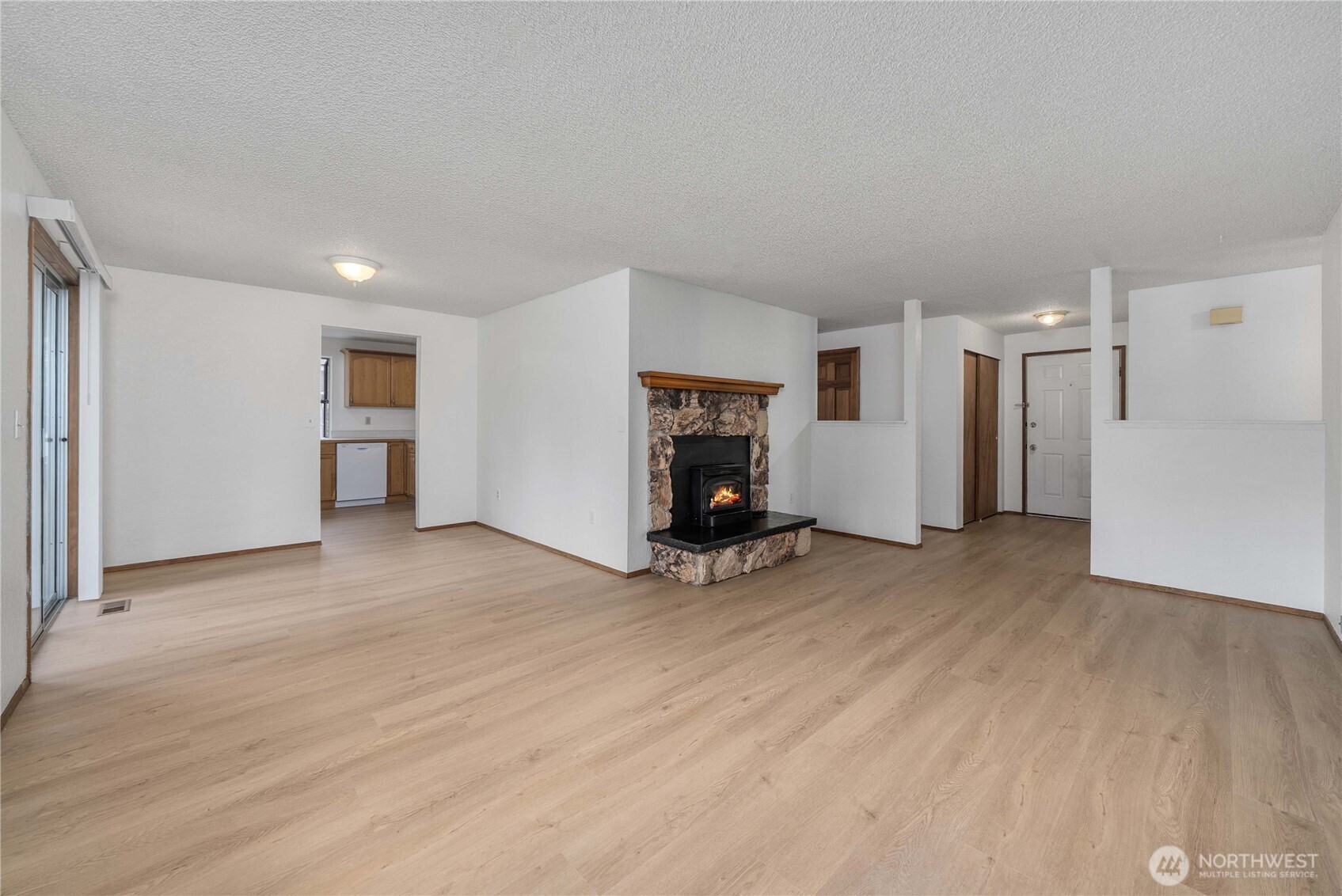 Charming 3 bed, 1.75 bath rambler in Spanaway! Enjoy the amenities of fresh interior paint, new LVP flooring, and new kitchen appliances (all stay) and an open floor plan. Bask in the spacious .26-acre cul-de-sac lot with shed, fully fenced yard, and oversized 2-car garage. Feel welcomed as you enter the home to the formal living area with a cozy wood stove fireplace. Updated main bath with new tub surround & tons of natural lighting through the skylight. No HOA! Close to shopping, dining, and quick JBLM access. A move-in ready gem with room to grow!